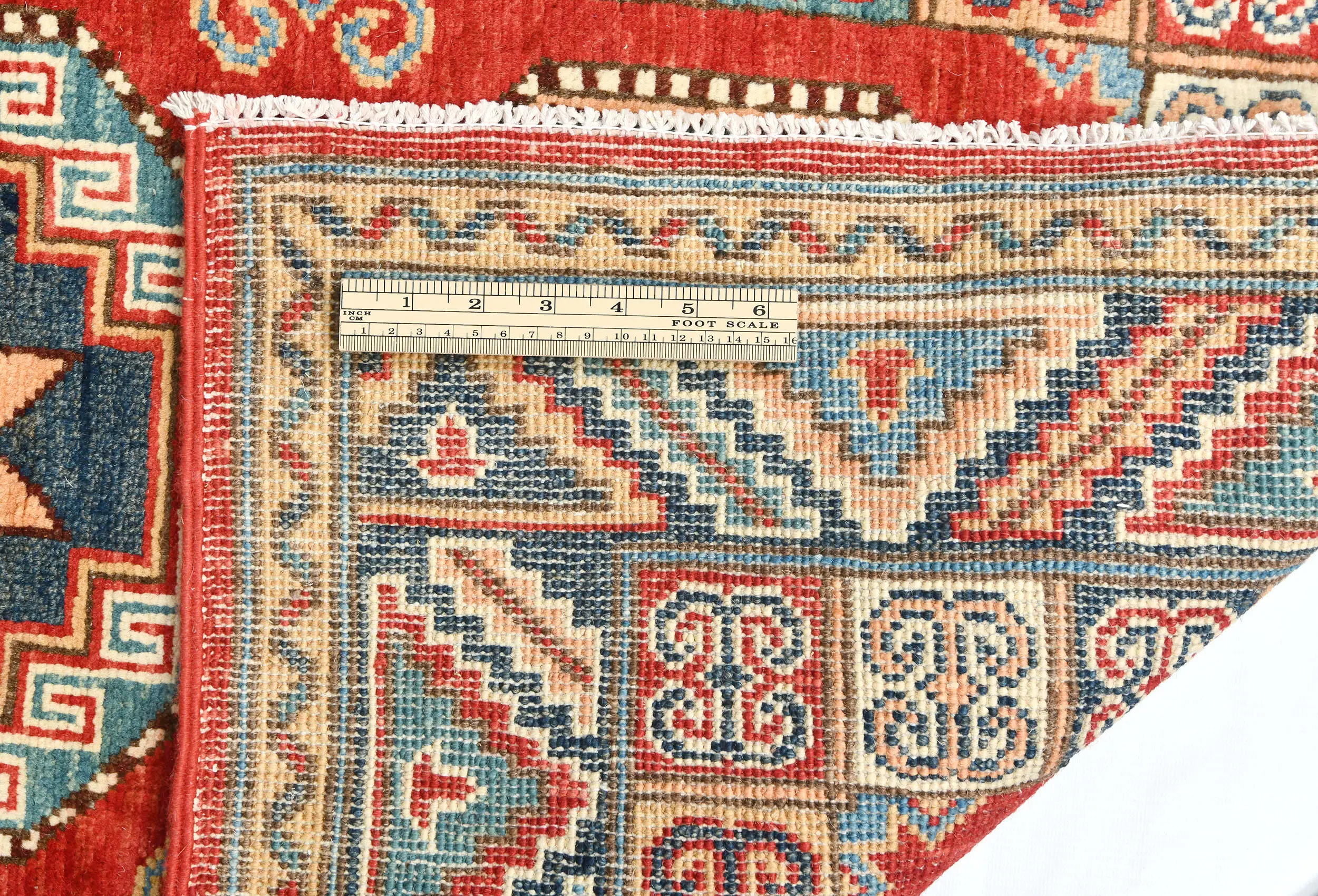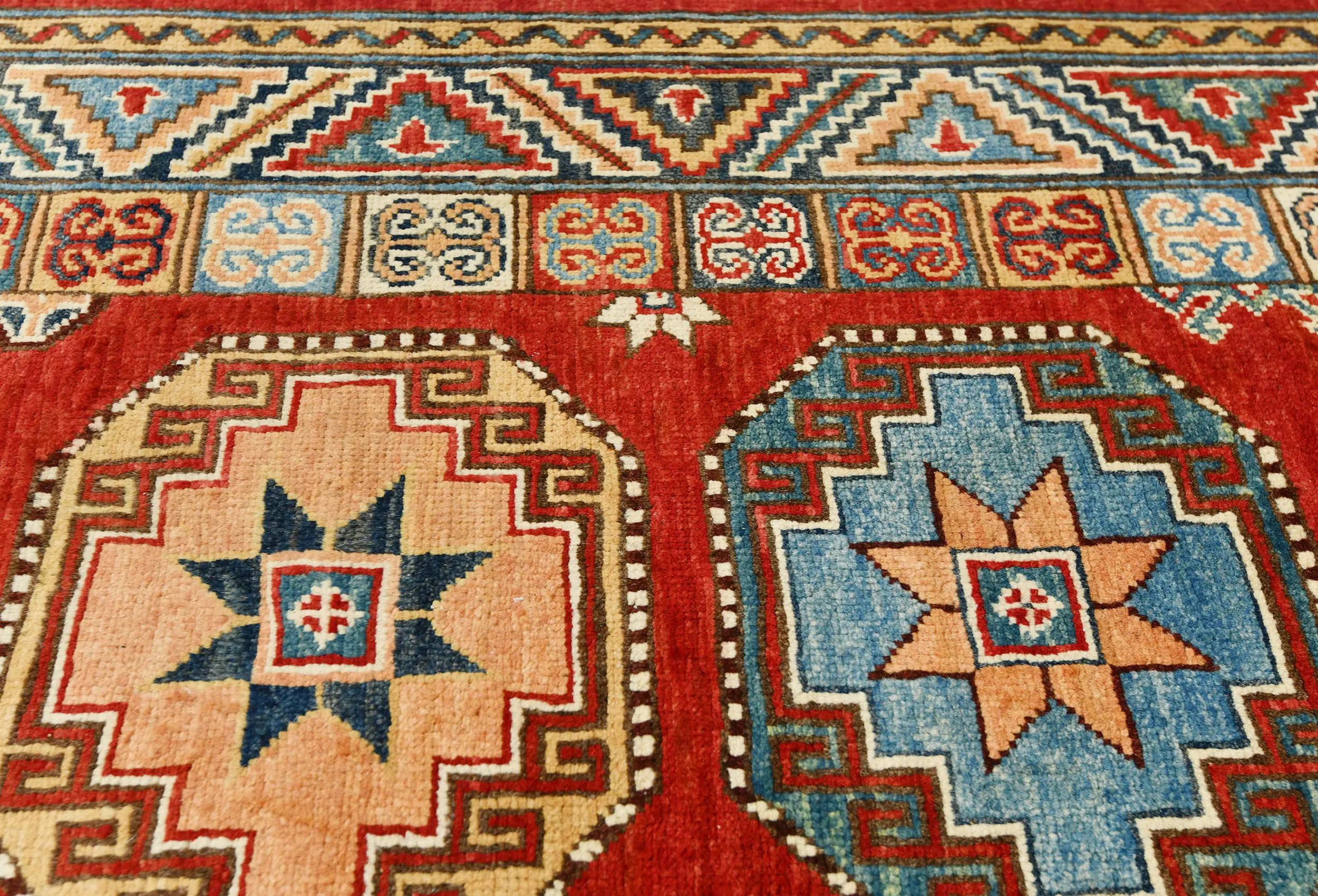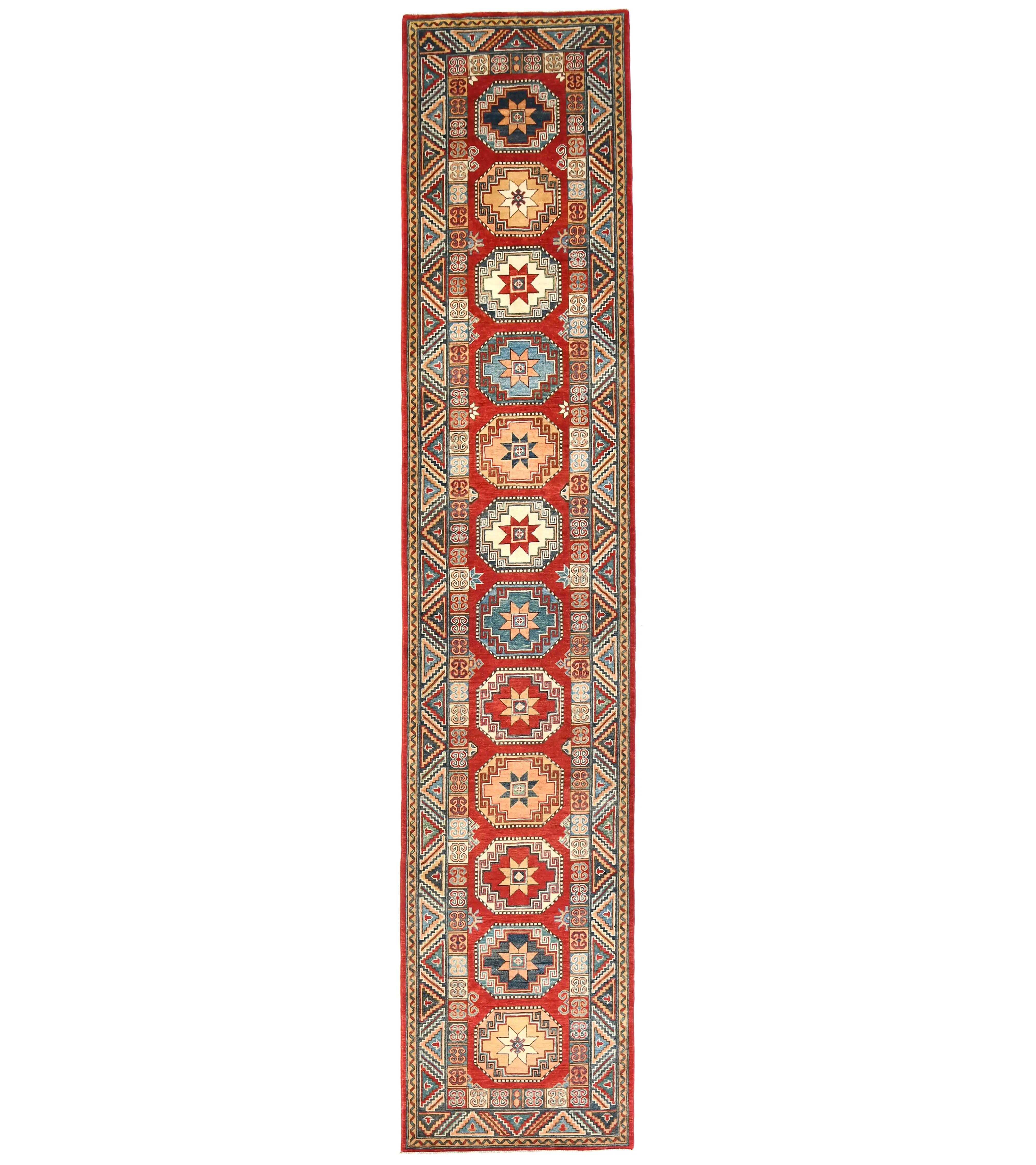 Red Geometric 2'8X13'5 Kazak Oriental Runner Rug