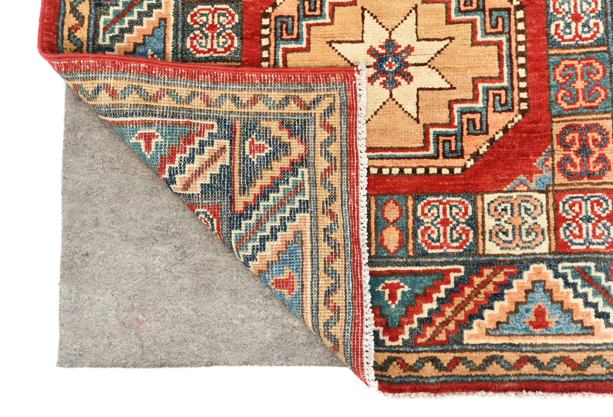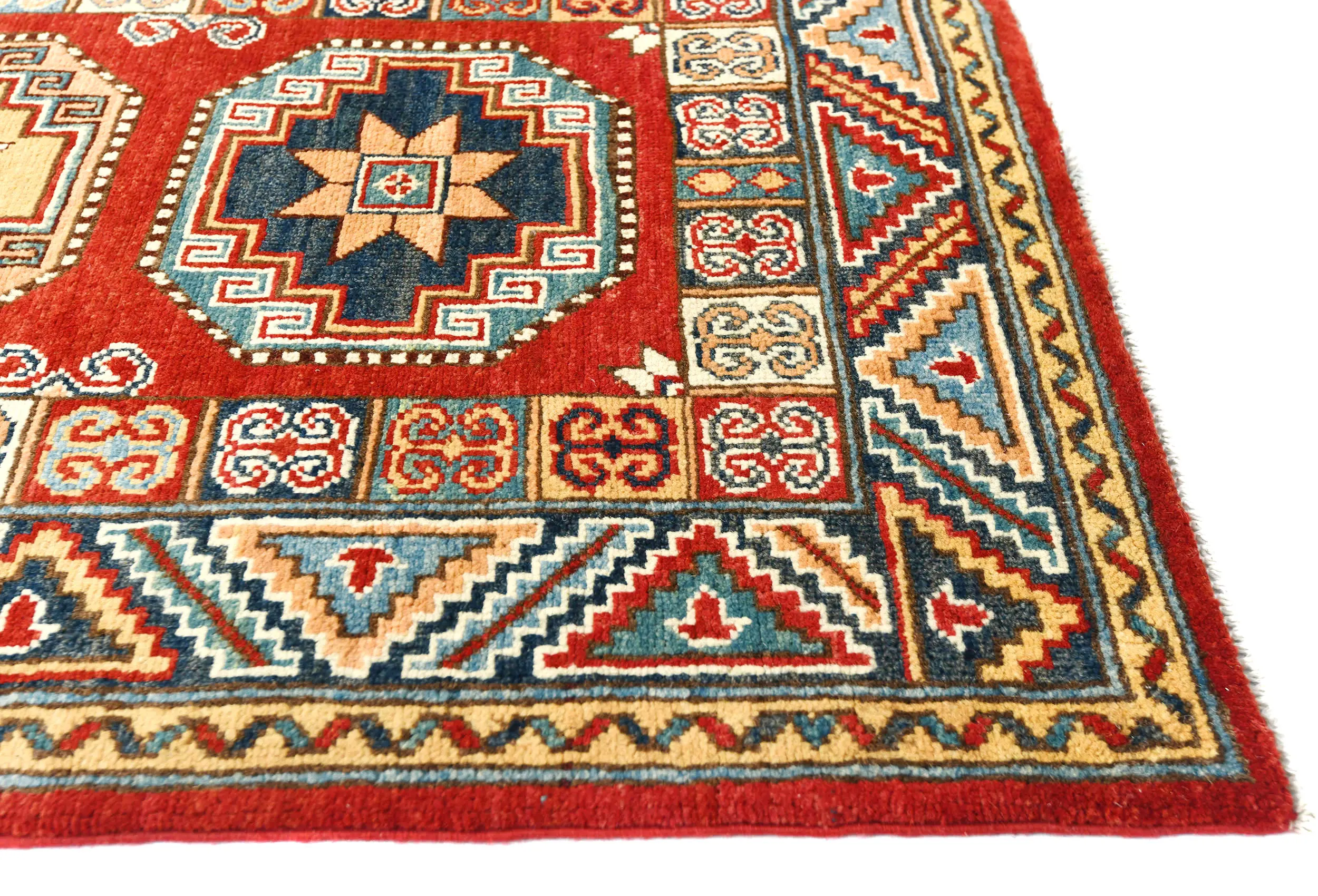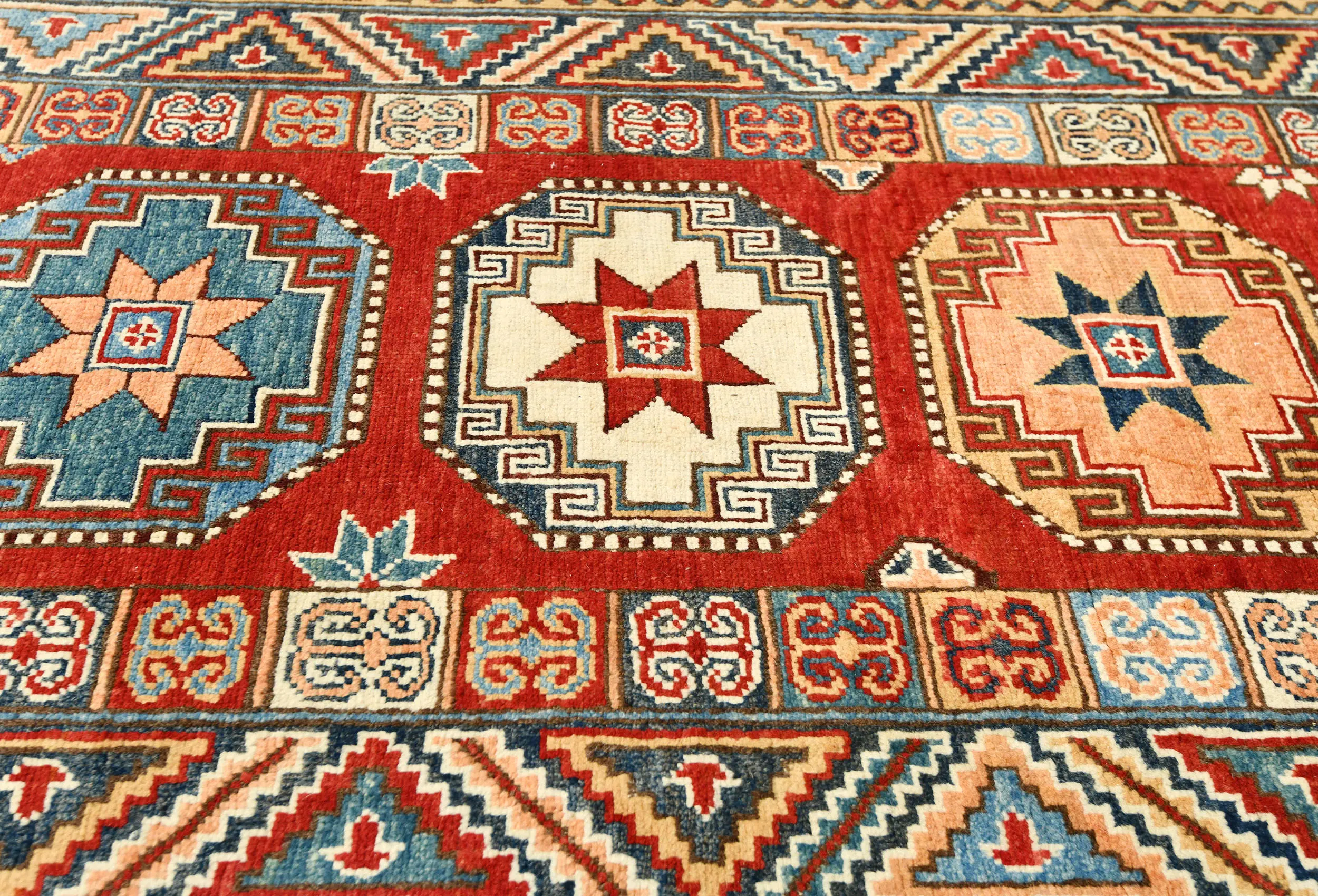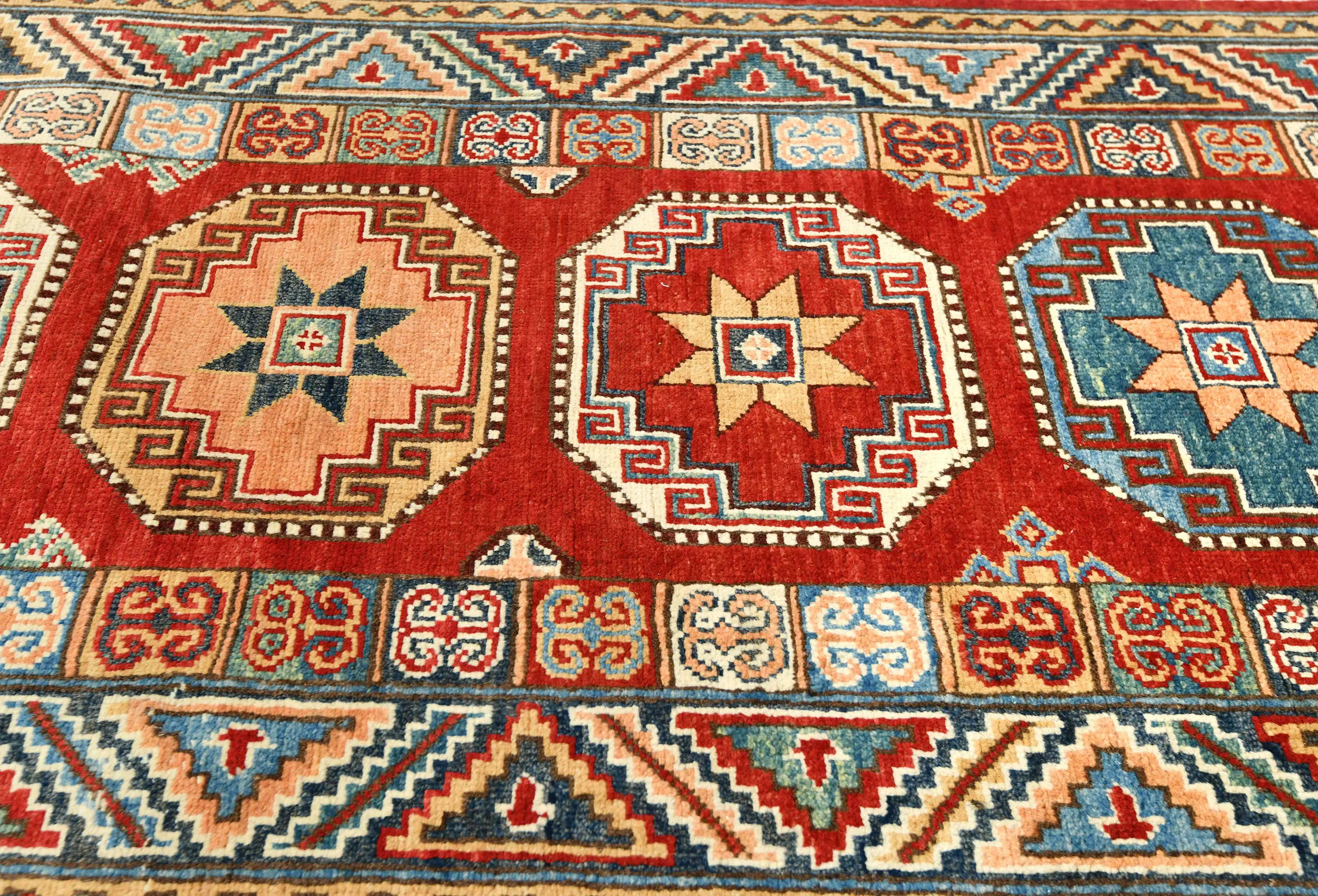 Red Geometric 2'8X13'5 Kazak Oriental Runner Rug