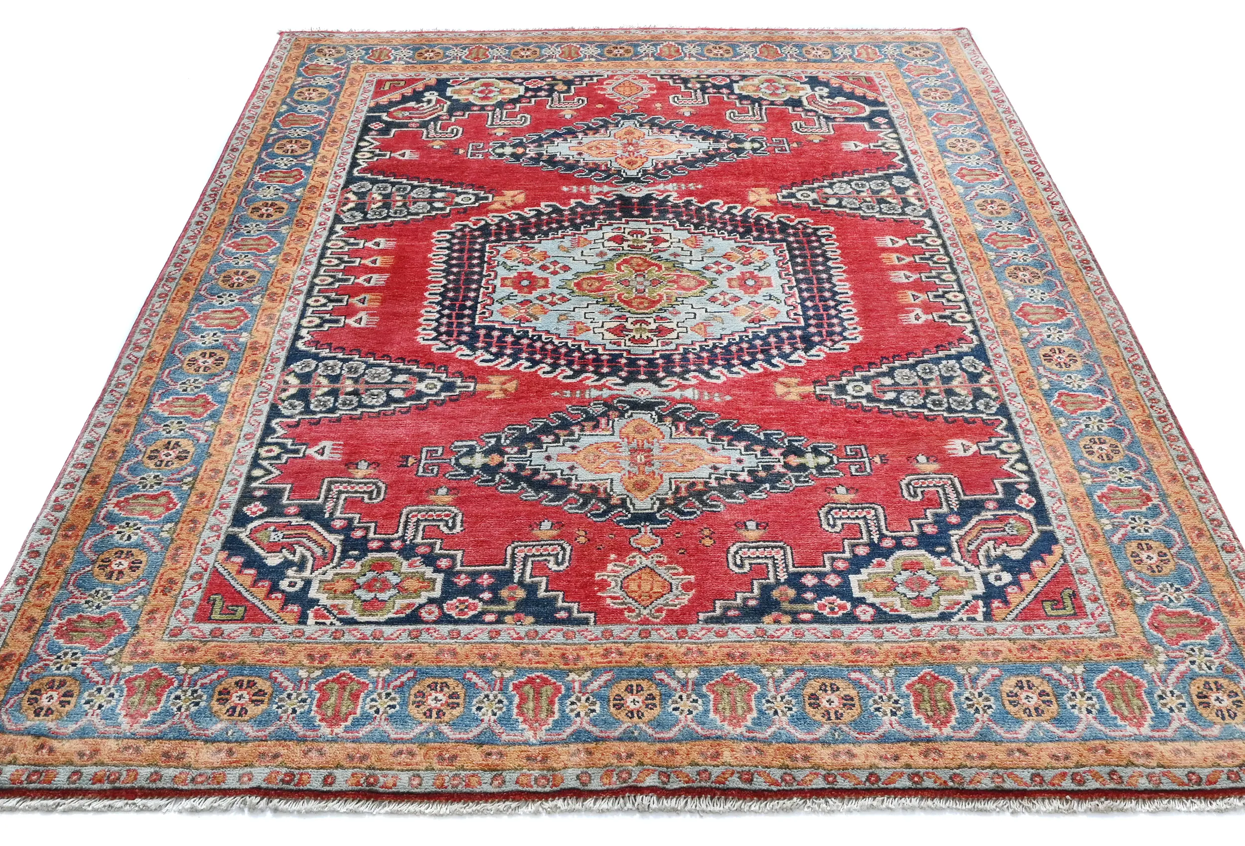 Red Geometric Modern 4'11X6'2 Kazak Pakistan Rug