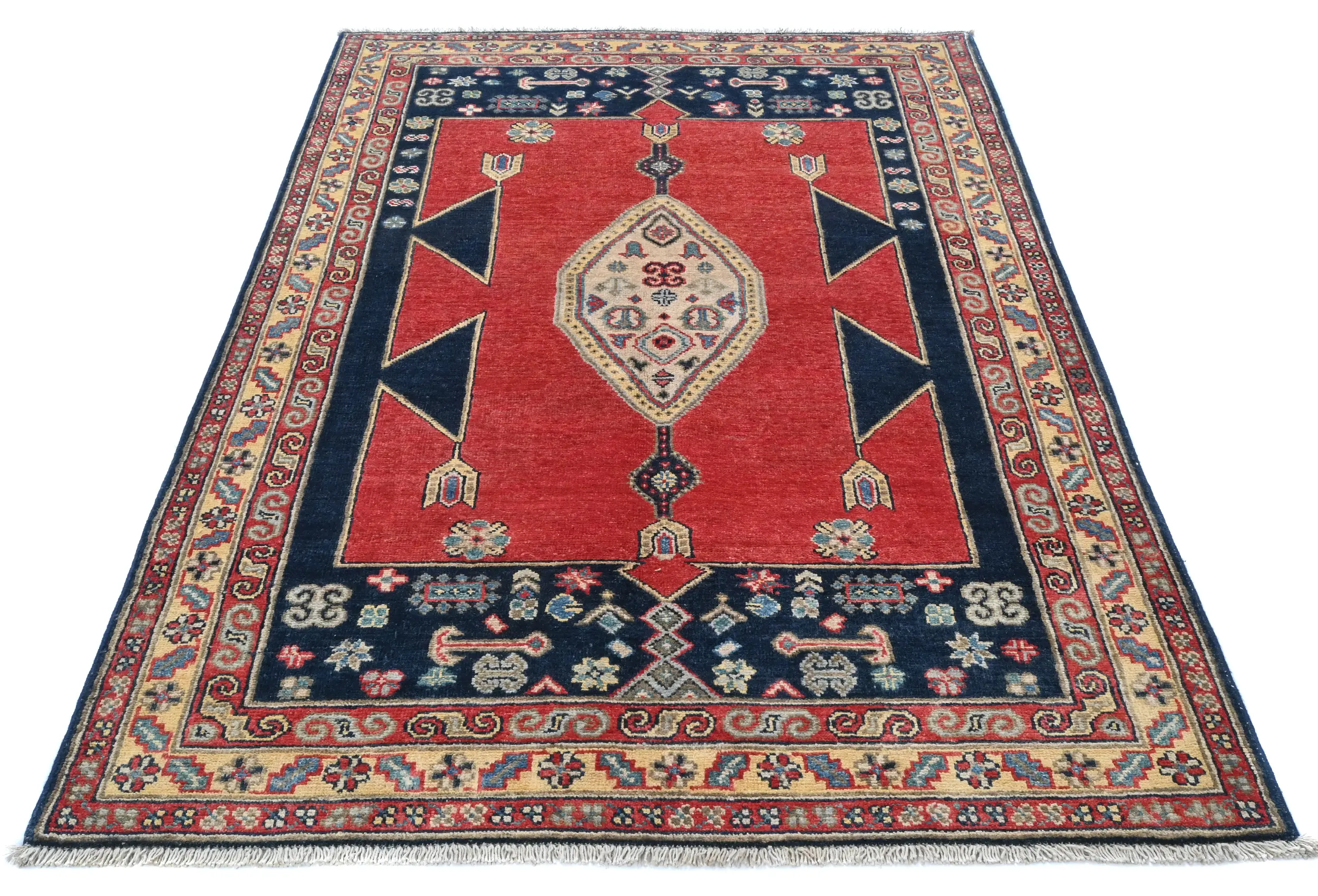 Hand Knotted 4X6 red Oriental rug made with vegetable dyes (fine wool pile and cotton foundation), exceptional knot count, and appealing ancient designs. This Oriental rug never will go out of style and would be among your most valuable treasures.