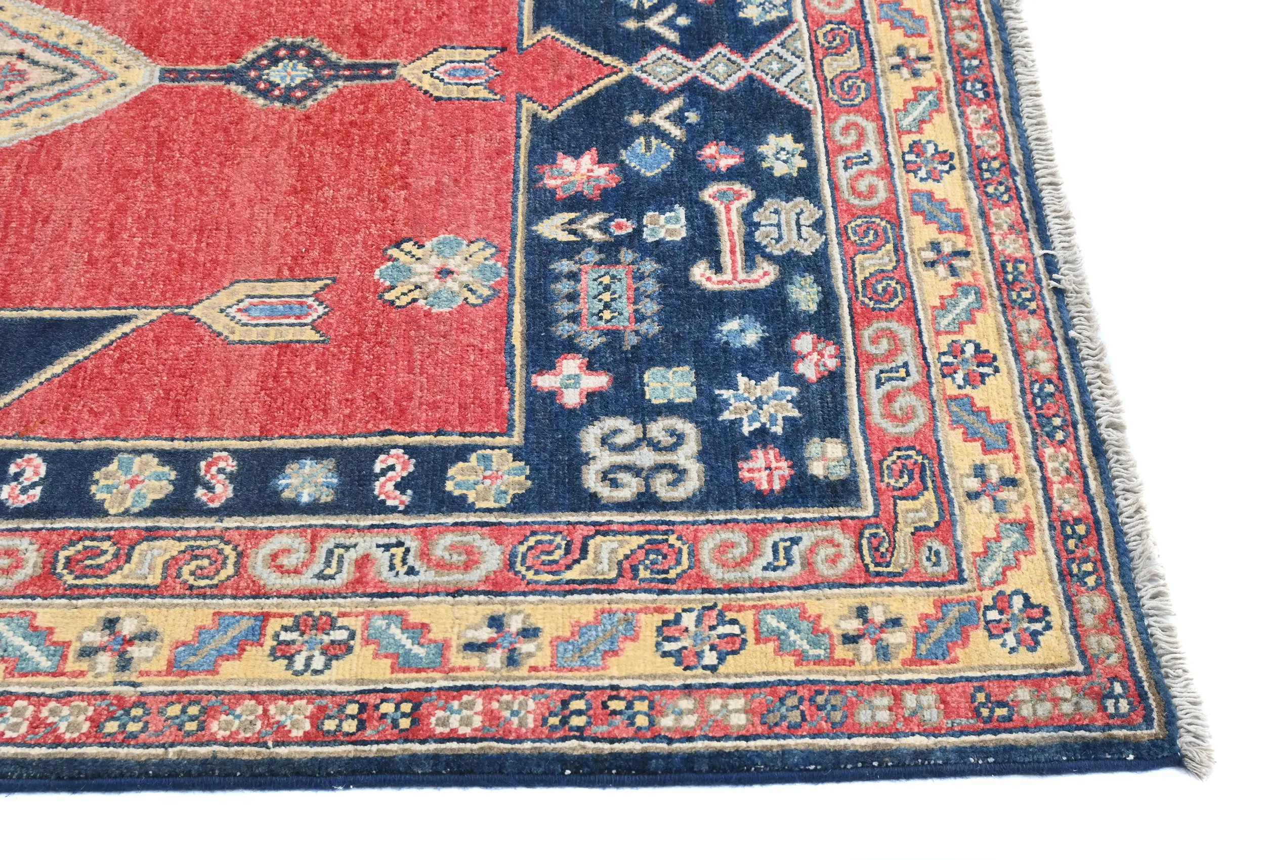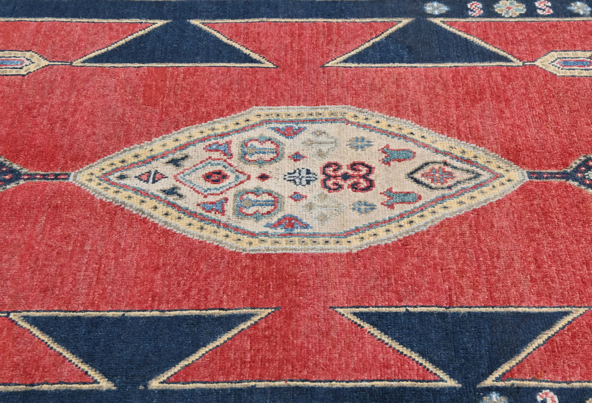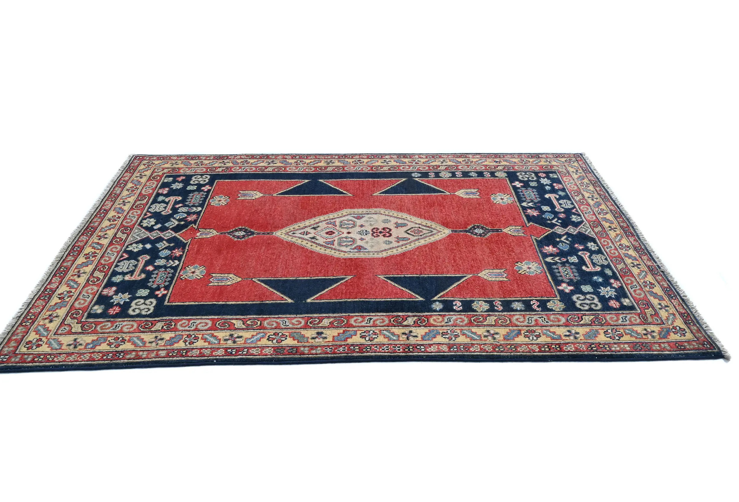 Red Geometric Modern 4X6 Kazak Oushak Pakistan Rug
