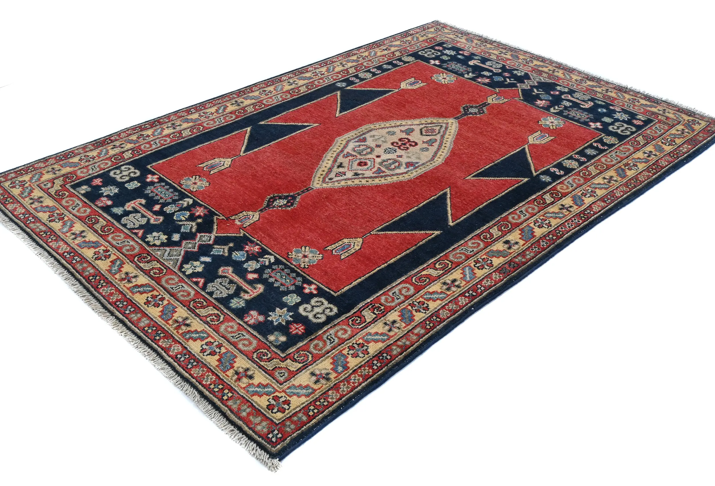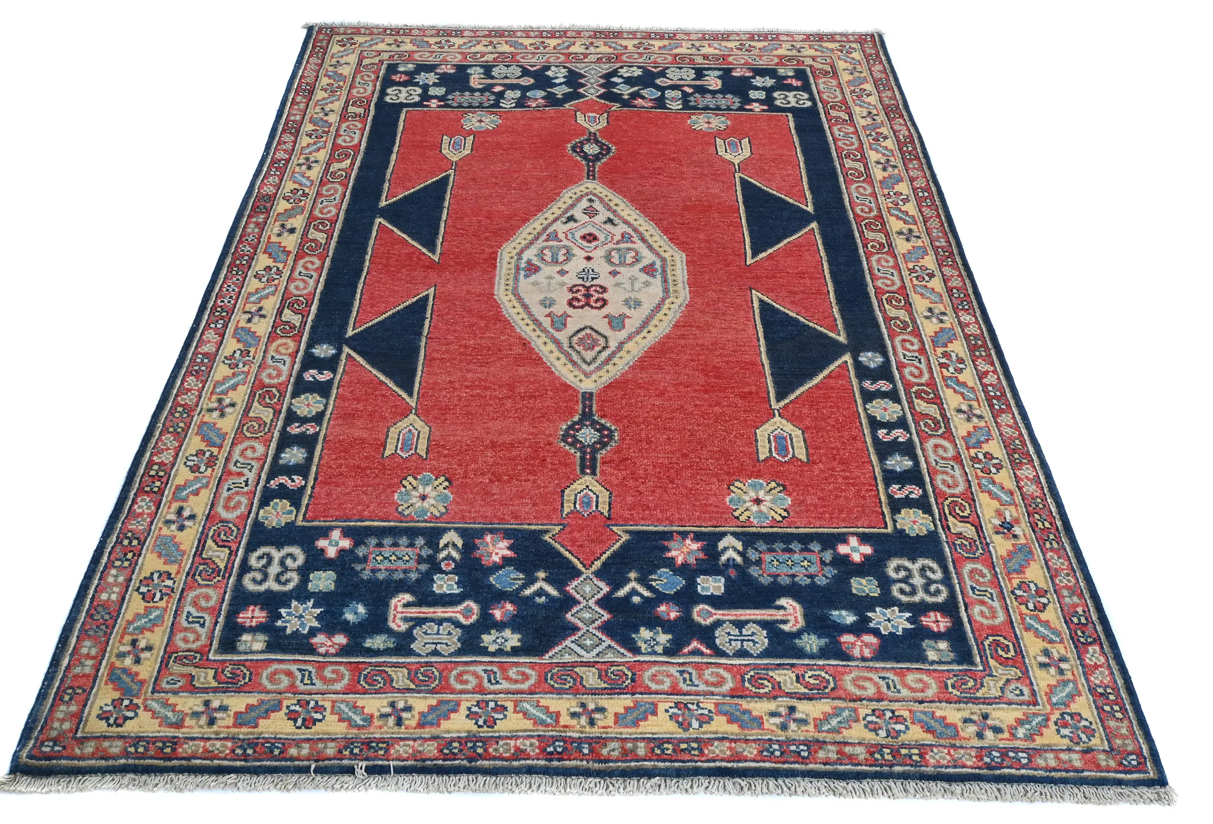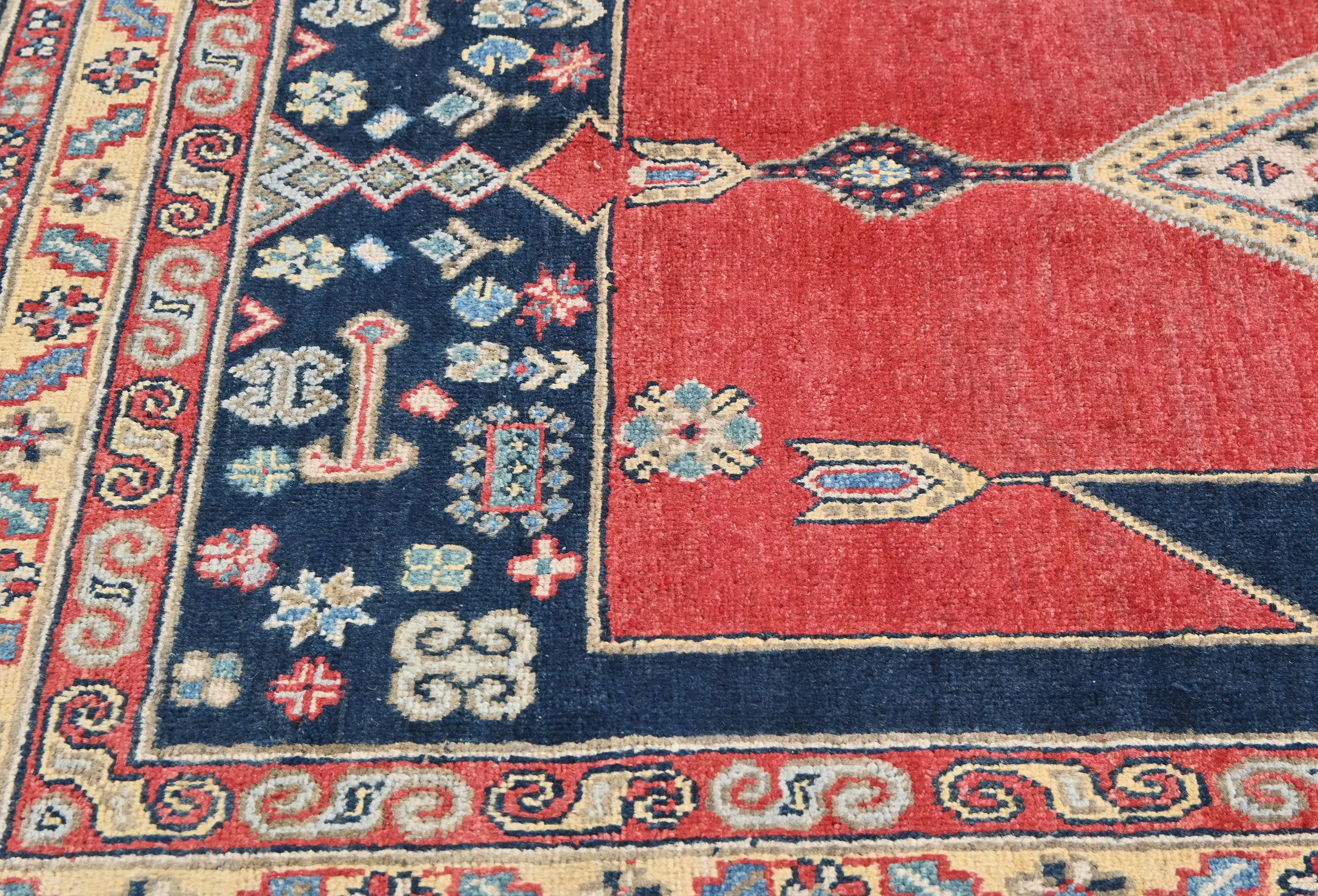 Red Geometric Modern 4X6 Kazak Oushak Pakistan Rug