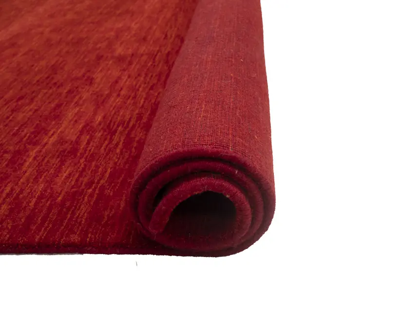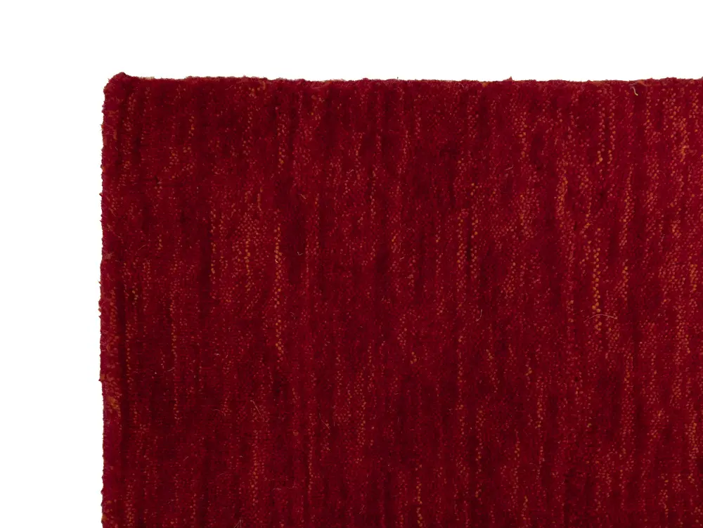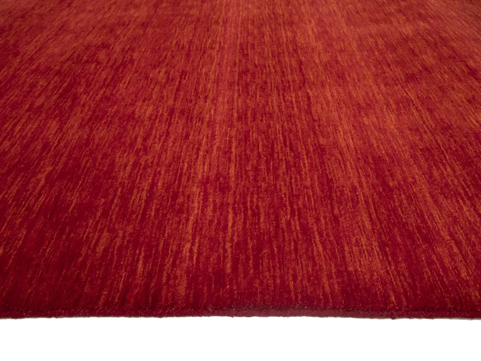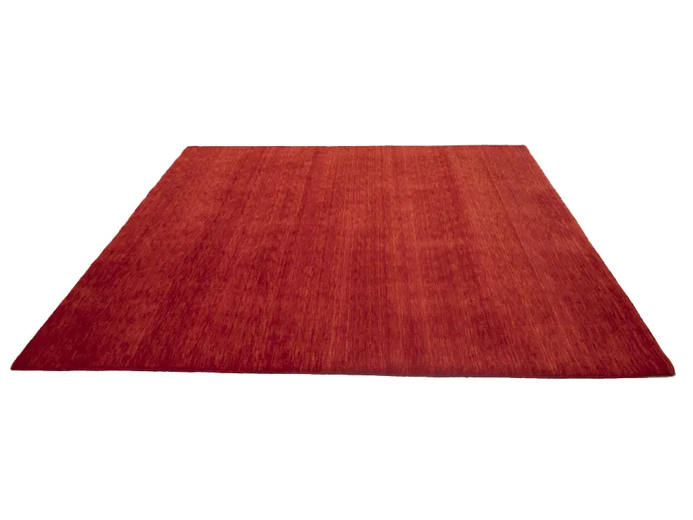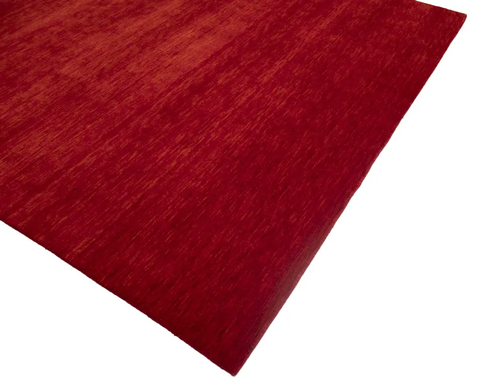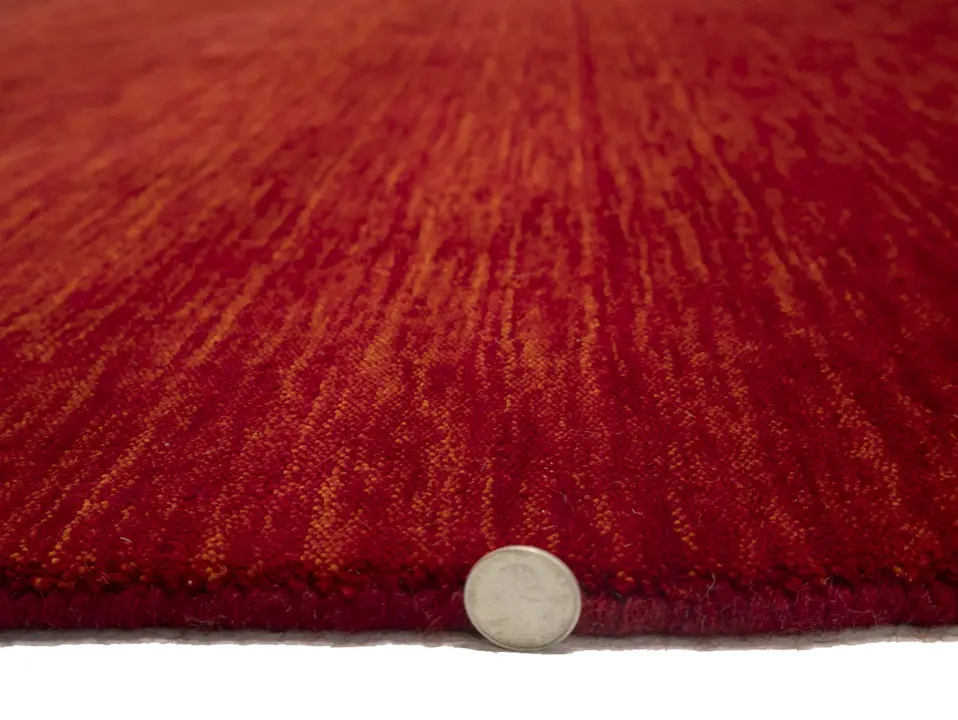 This hand-loomed 8X8 Red Oriental Square rug from India features a modern, Solid design that seamlessly integrates traditional craftsmanship with contemporary style, showcasing a striking Cherry Red primary color. It provides a luxuriant softness and durability underfoot, as it is constructed from premium wool with a cotton foundation. The rug is optimized for high-traffic areas due to its medium pile height and knot density of 100 knots per square inch, which ensures durability and comfort. This rug, which is in exceptional condition and was recently manufactured, is an ideal complement to any contemporary setting, providing both versatility and timeless elegance.