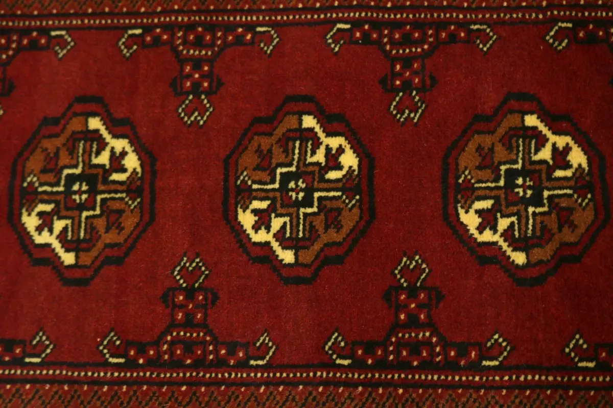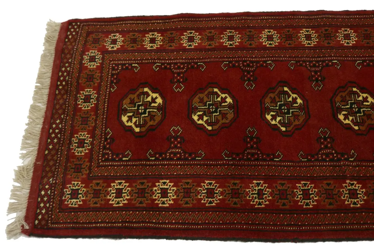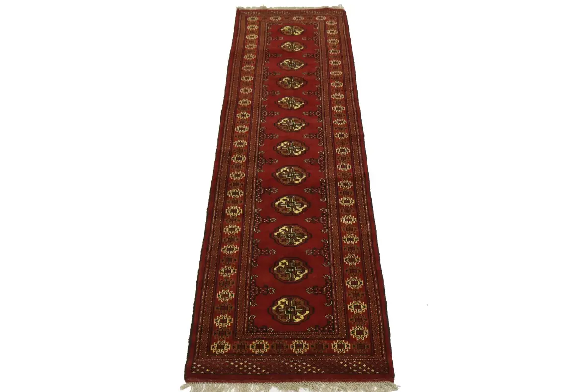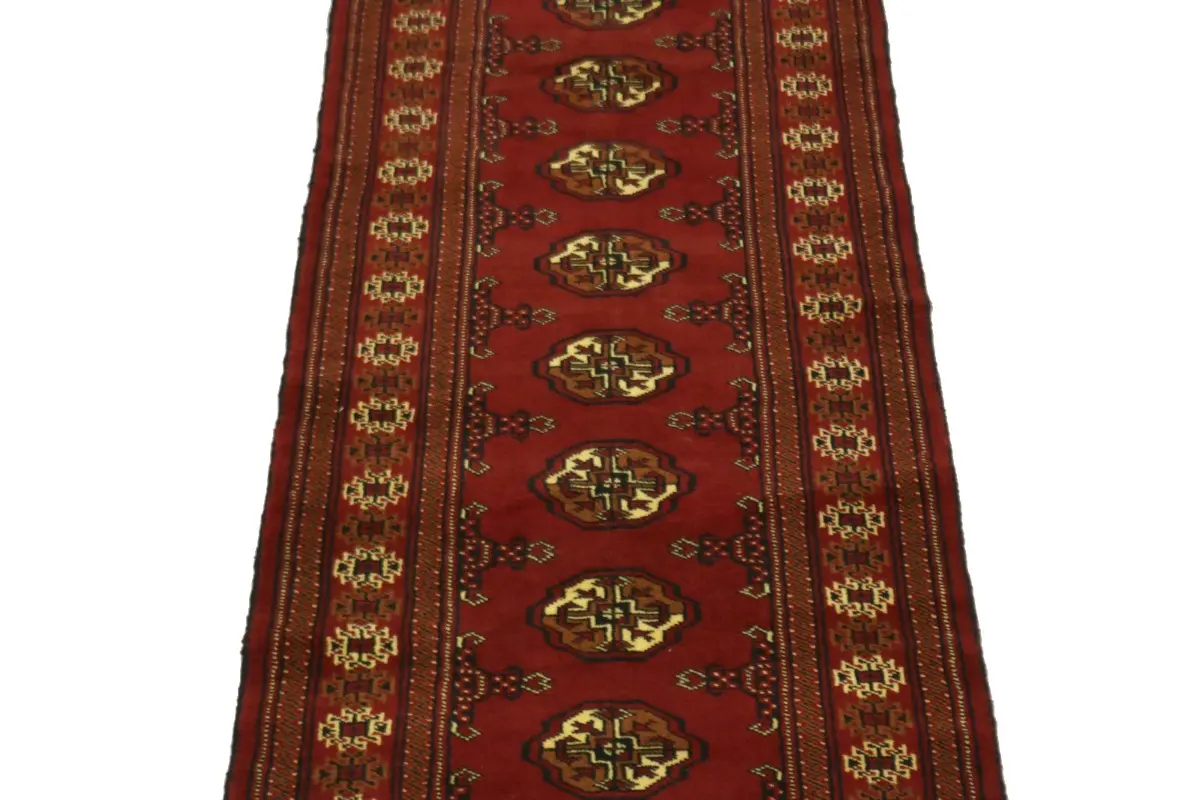 This Beautiful 2'6X10 Turkoman Narrow Hallway Runner was made by the hands of gifted weavers inspired by a variety of Dazzling artistic designs, to recreate the aged look of the original piece with a richness of color and beautifully elaborated Geometric background field. This Red Wool Persian rug will be completely cozy and inviting that never will go out of style!