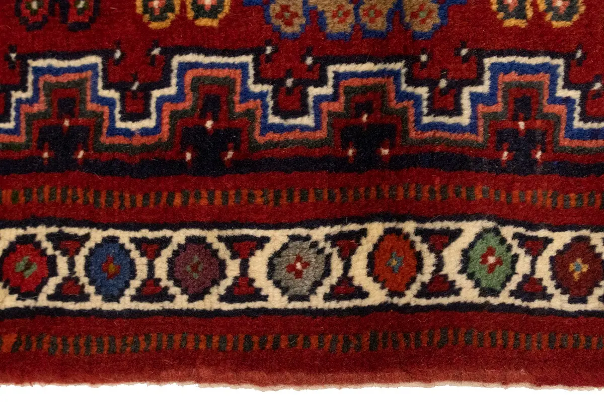 This original 3'3X4'7 red vintage Persian rug was crafted by the hands of skilled weavers enthused by a variety of lovely artistic designs, to recreate the aged look of the unique piece with a richness of color and beautifully elaborated background field. What set this tribal Oriental area rug from the others are the material and dye used (wool pile and cotton foundation), knot count, ancient designs, fantastic grades, and its regional historical connection: it has deep roots, from the story of the people who produced it to the meaning of the symbols and colors displayed across its canvas that have been praised for centuries. This home décor carpet will be completely cozy and inviting that never will go out of style! Also, this Oriental rug would be among your most valuable treasures, it is a great investment that increase in value over time, and it will last for generations because was woven with high-quality, all-natural wool; it won’t rip, tear, or shed. Environmentally friendly, opulent yet affordable; this Persian rug will give you a thorough amount of character to help define your living space with sophistication and warmth that will capture the eyes and attention of your audience (homeowners, designers, decorators, family and friends). RT-2342