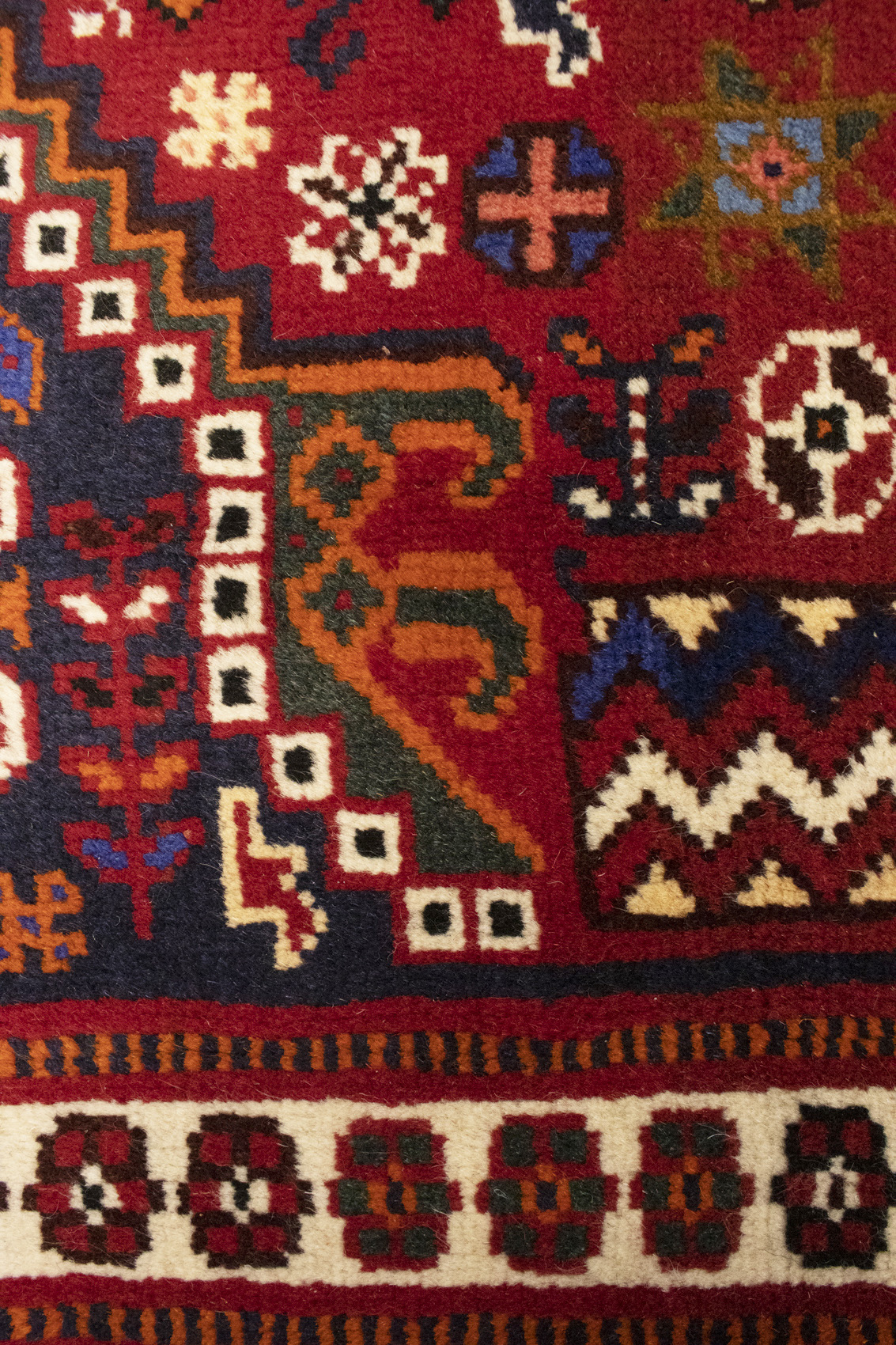 This authentic 3'4X5 red vintage Persian rug was masterly knotted by the hands of weavers inspired by a variety of wonderful artistic designs, to recreate the aged look of the original piece with a richness of color and intricate patterned background field. What set this tribal Oriental area rug from the others are the material and dye used (wool pile and cotton foundation), knot count, antique designs, fantastic grades, and its regional historical connection: it has deep roots, from the story of the people who produced it to the meaning of the symbols and colors displayed across its canvas that have been praised for centuries. This home décor carpet will be completely cozy and inviting that never will go out of style! Also, this Oriental rug would be among your most valuable treasures, it is a great investment that accrues value over time, and it will last for generations because was woven with high-quality, all-natural wool; it won’t rip, tear, or shed. Environmentally friendly, opulent yet affordable; this Persian rug will give you a thorough amount of character to help define your living space with luxury and warmth that will capture the eyes and attention of your audience (homeowners, designers, decorators, family and friends). RT-2127