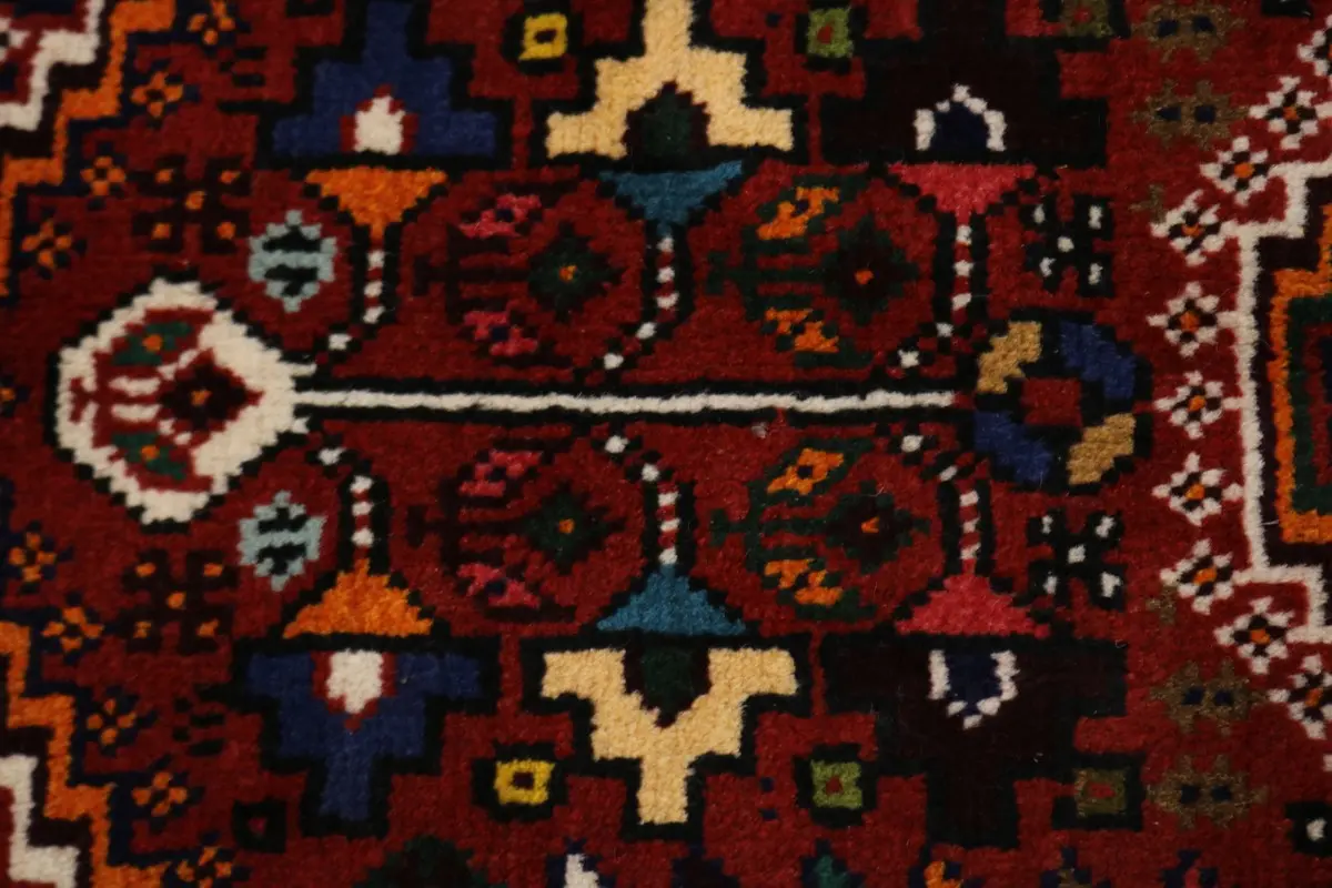 Handmade 3'5X5 red Persian rug made with natural dyes (fine wool pile and cotton foundation), superior knot count, and alluring ancient designs. This Oriental rug never will go out of style and would be among your most valuable treasures.