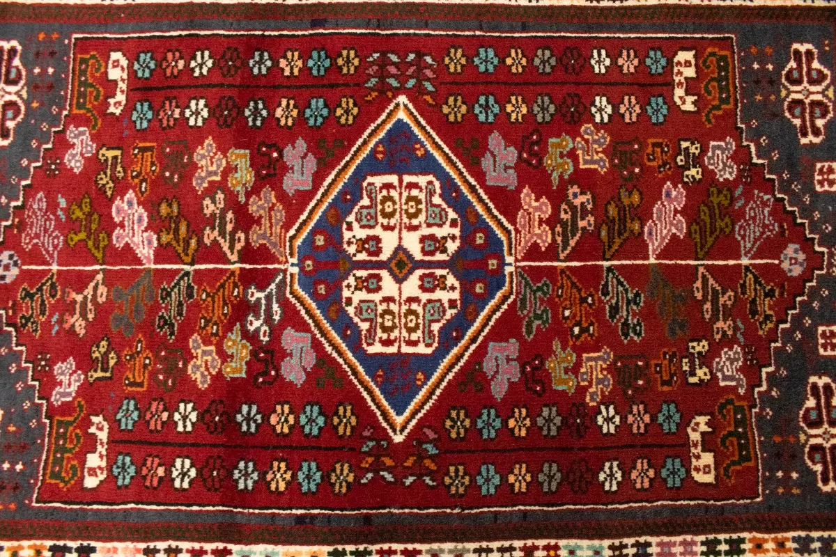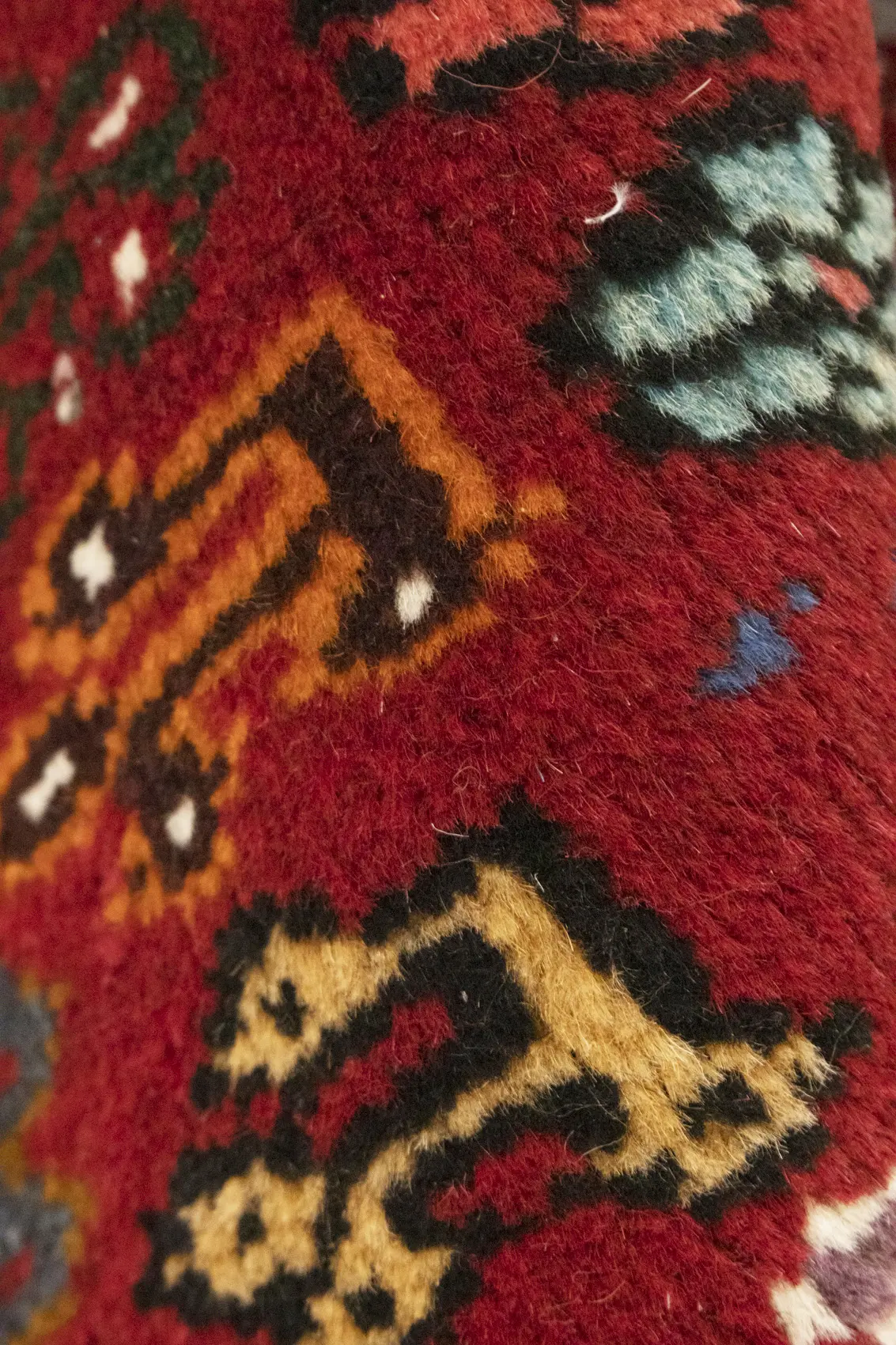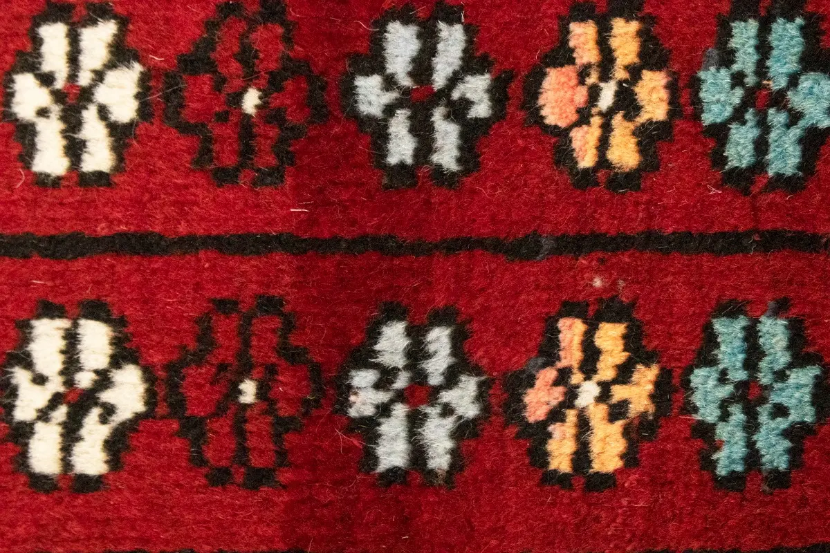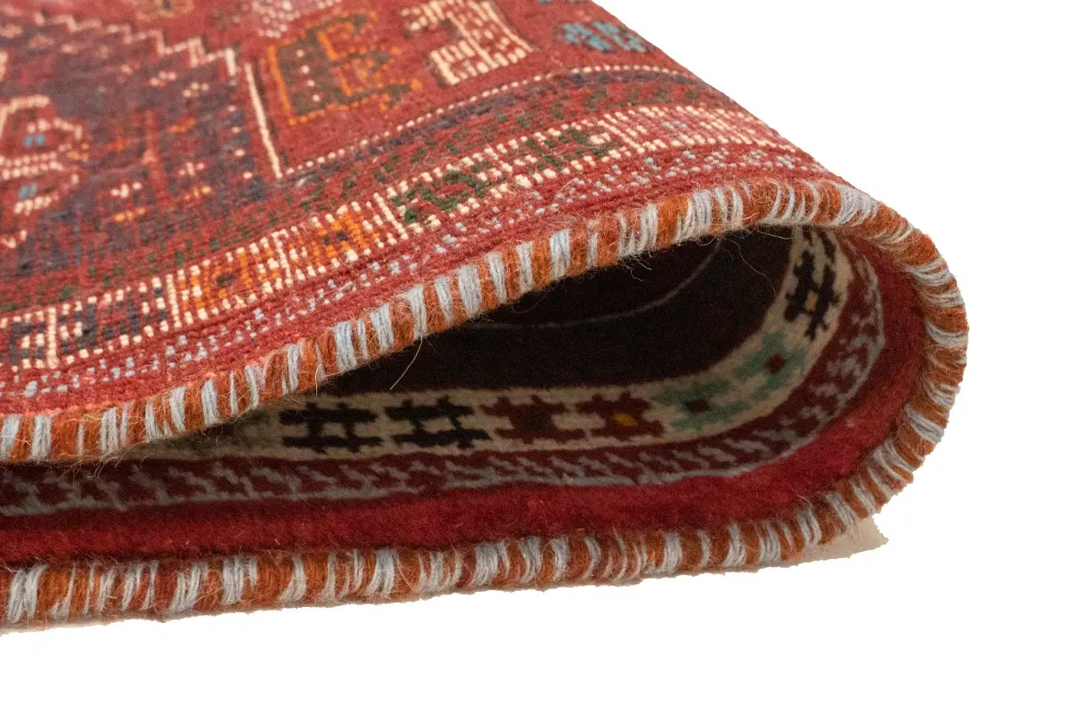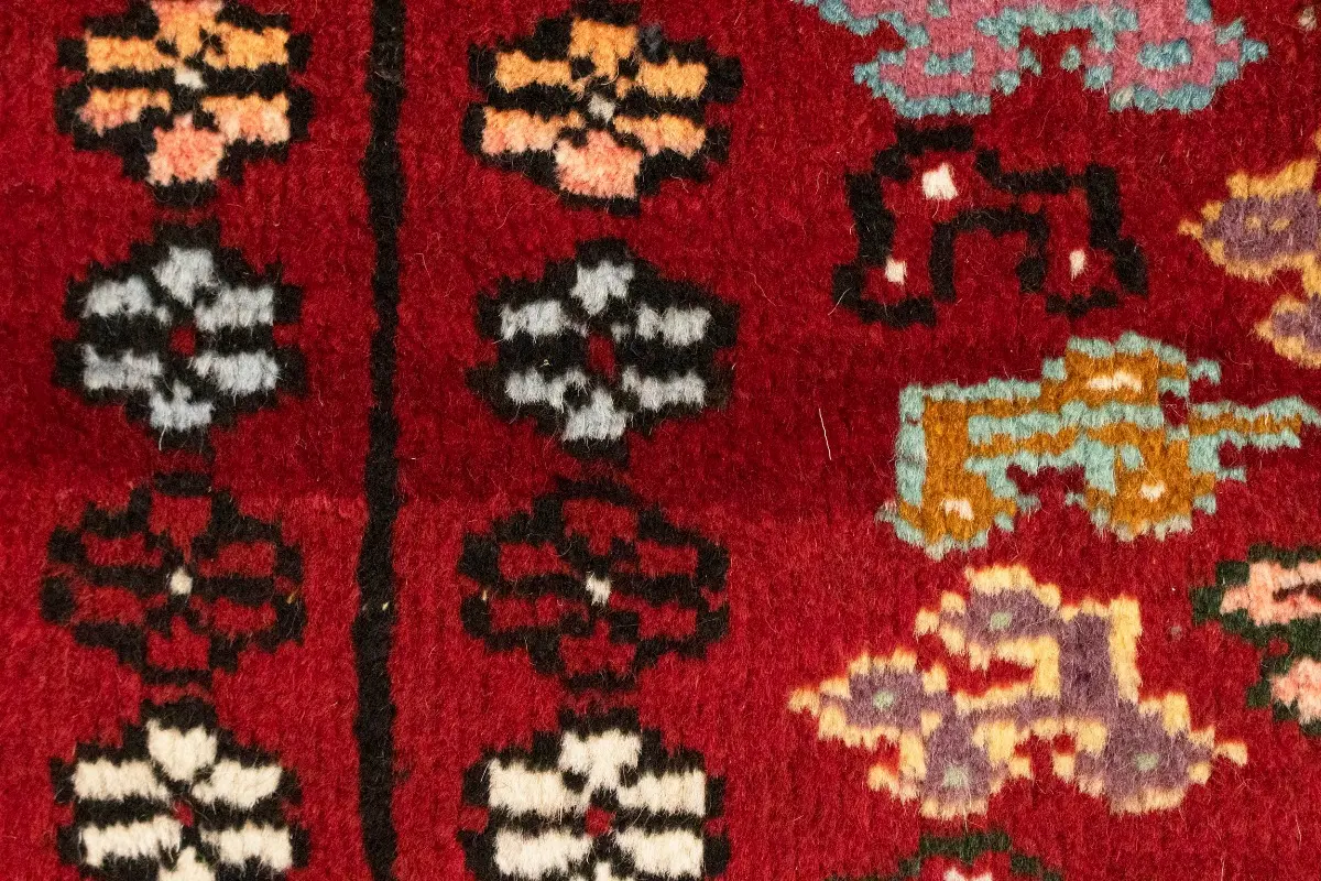 This authentic 3'5X5 red vintage Persian rug was finely knotted by the hands of weavers influenced by a variety of amazing artistic designs, to recreate the aged look of the exceptional piece with a richness of color and embellished background field. What set this tribal Oriental area rug from the others are the material and dye used (wool pile and cotton foundation), knot count, antique designs, fantastic grades, and its regional historical connection: it has deep roots, from the story of the people who produced it to the meaning of the symbols and colors displayed across its canvas that have been praised for centuries. This home décor carpet will be completely cozy and inviting that never will go out of style! Also, this Oriental rug would be among your most valuable treasures, it is a great investment that increase in value over time, and it will last a lifetime because was woven with high-quality, all-natural wool; it won’t rip, tear, or shed. Eco-friendly, opulent yet affordable; this Persian rug will give you an extra pop of character to help define your home environment with luxury and warmth that will capture the eyes and attention of your audience (homeowners, designers, decorators, family and friends). RT-2320