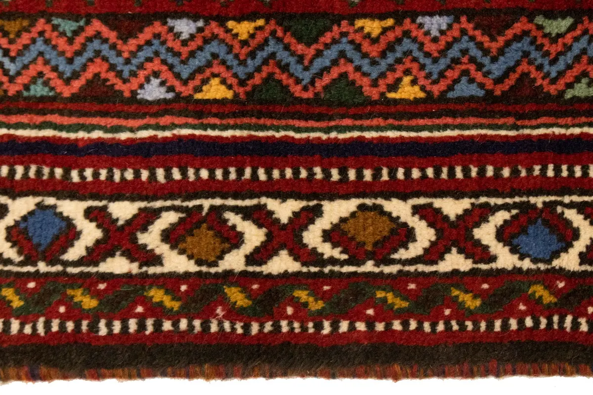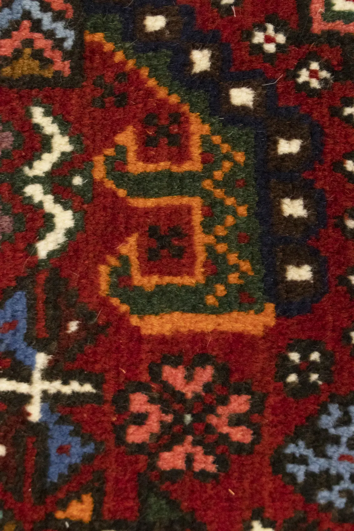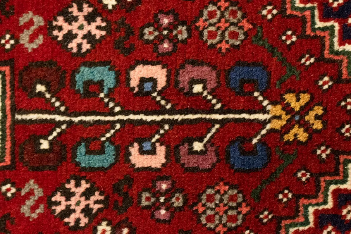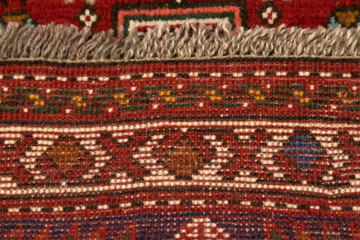 This original 3'5X5 red vintage Persian rug was crafted by the hands of skilled weavers enthused by a variety of lovely artistic designs, to recreate the aged look of the unique piece with a richness of color and beautifully elaborated background field. What set this tribal Oriental area rug from the others are the material and dye used (wool pile and cotton foundation), knot count, ancient designs, fantastic grades, and its regional historical connection: it has deep roots, from the story of the people who produced it to the meaning of the symbols and colors displayed across its canvas that have been praised for centuries. This home décor carpet will be completely cozy and inviting that never will go out of style! Also, this Oriental rug would be among your most valuable treasures, it is a great investment that increase in value over time, and it will last for generations because was woven with high-quality, all-natural wool; it won’t rip, tear, or shed. Environmentally friendly, opulent yet affordable; this Persian rug will give you a thorough amount of character to help define your living space with sophistication and warmth that will capture the eyes and attention of your audience (homeowners, designers, decorators, family and friends). RT-2321