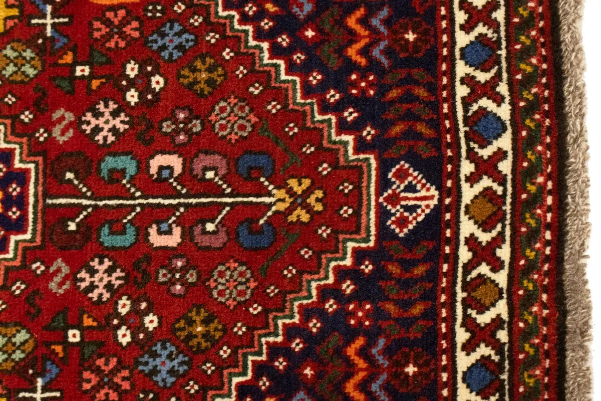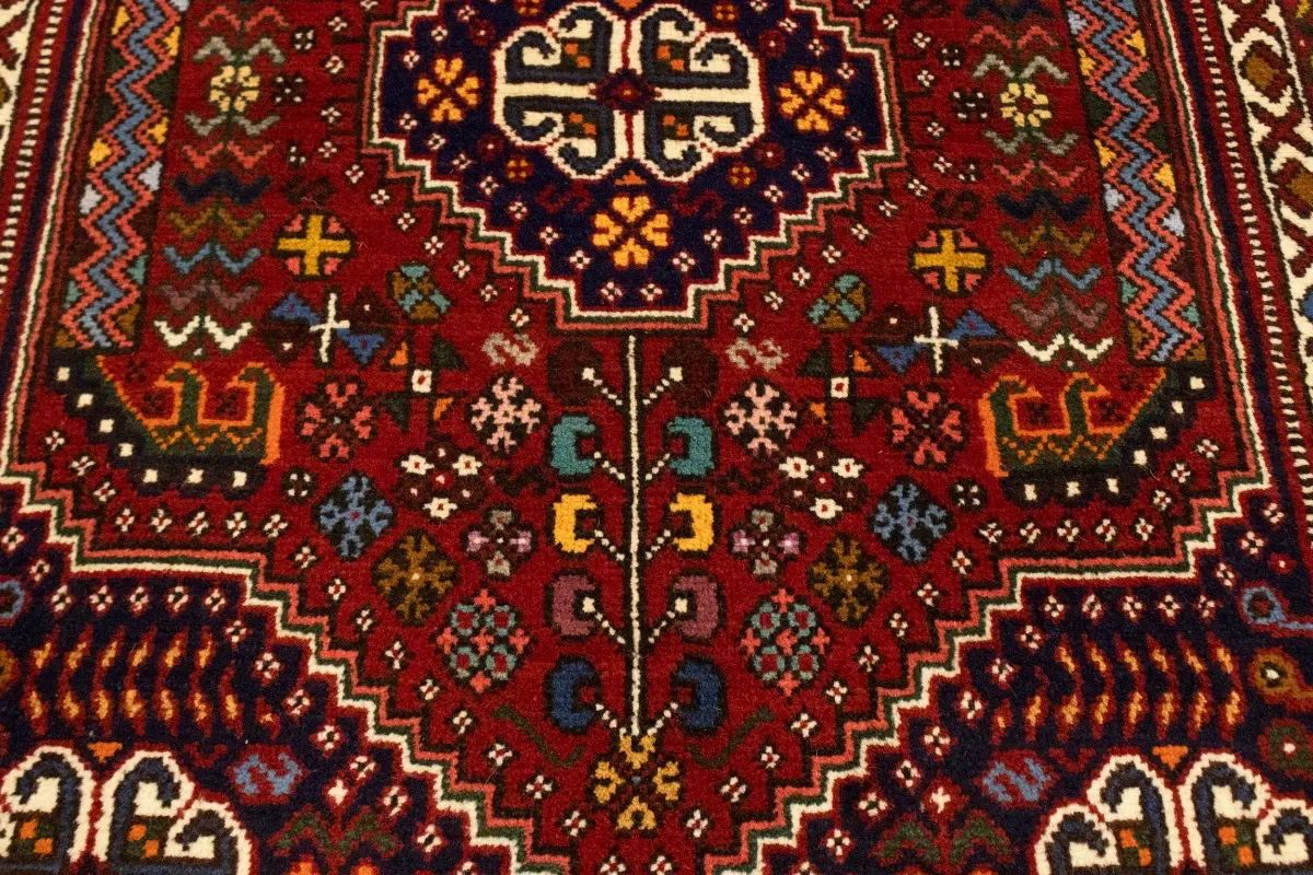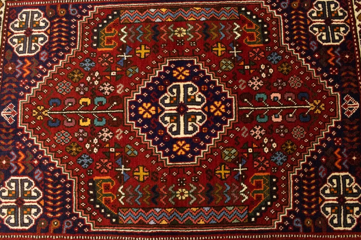 Handmade 3'5X5 red Persian rug made with vegetable dyes (fine wool pile and cotton foundation), exceptional knot count, and appealing ancient designs. This Oriental rug never will go out of style and would be among your most valuable treasures.