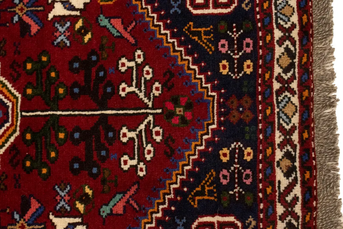 Handmade 3'5X5 red Persian rug made with natural dyes (fine wool pile and cotton foundation), superior knot count, and appealing ancient designs. This Oriental rug never will go out of style and would be among your most valuable treasures.