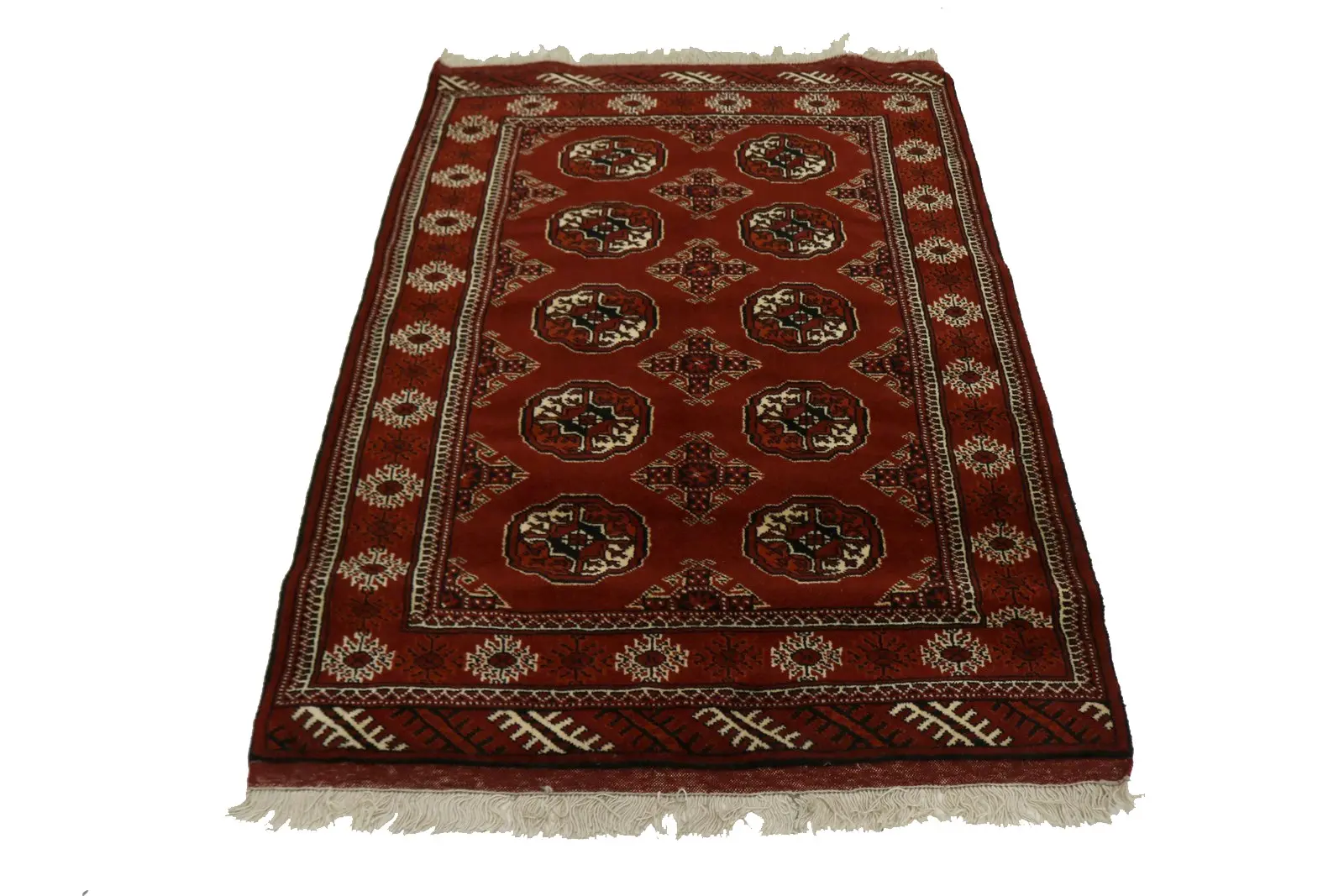This Amazing 3'5X5 Turkoman Area Rug was made by the hands of gifted weavers inspired by a variety of Fantastic artistic designs, to recreate the aged look of the original piece with a richness of color and beautifully elaborated Geometric background field. This Red Wool Persian rug will be completely cozy and inviting that never will go out of style!