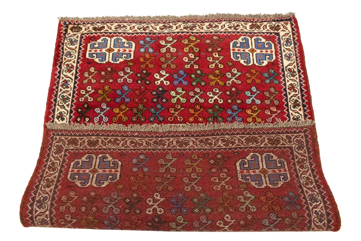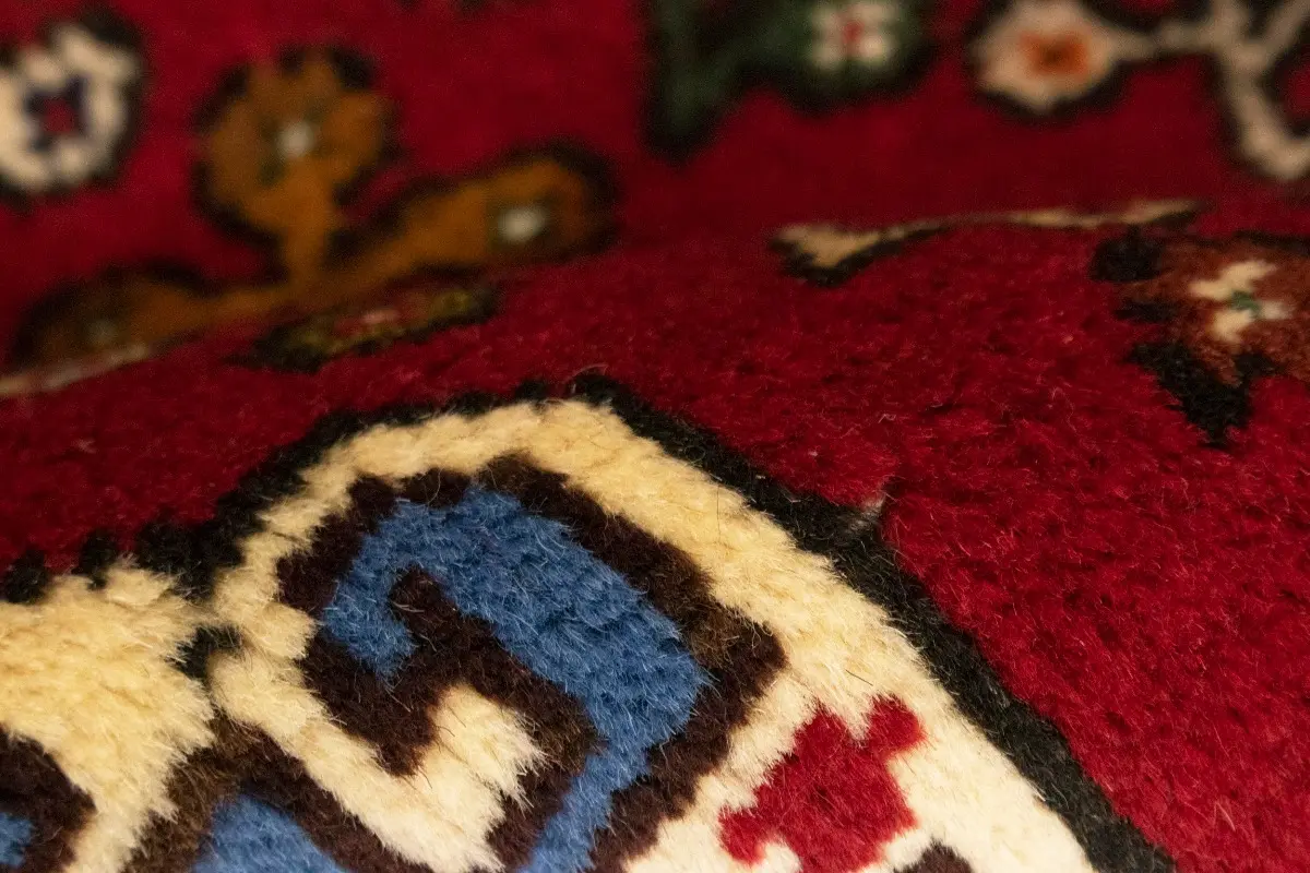 This authentic 3'6X4'3 red vintage Persian rug was masterly knotted by the hands of weavers inspired by a variety of wonderful artistic designs, to recreate the aged look of the original piece with a richness of color and intricate patterned background field. What set this tribal Oriental area rug from the others are the material and dye used (wool pile and cotton foundation), knot count, antique designs, fantastic grades, and its regional historical connection: it has deep roots, from the story of the people who produced it to the meaning of the symbols and colors displayed across its canvas that have been praised for centuries. This home décor carpet will be completely cozy and inviting that never will go out of style! Also, this Oriental rug would be among your most valuable treasures, it is a great investment that accrues value over time, and it will last for generations because was woven with high-quality, all-natural wool; it won’t rip, tear, or shed. Environmentally friendly, opulent yet affordable; this Persian rug will give you a thorough amount of character to help define your living space with luxury and warmth that will capture the eyes and attention of your audience (homeowners, designers, decorators, family and friends). RT-2326