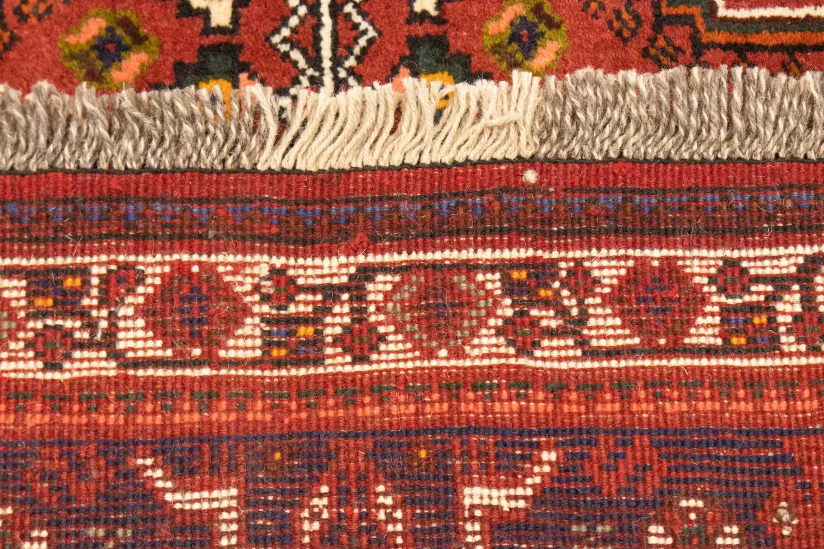 This authentic 3'6X5 red vintage Persian rug was masterly knotted by the hands of weavers inspired by a variety of wonderful artistic designs, to recreate the aged look of the original piece with a richness of color and intricate patterned background field. What set this tribal Oriental area rug from the others are the material and dye used (wool pile and cotton foundation), knot count, antique designs, fantastic grades, and its regional historical connection: it has deep roots, from the story of the people who produced it to the meaning of the symbols and colors displayed across its canvas that have been praised for centuries. This home décor carpet will be completely cozy and inviting that never will go out of style! Also, this Oriental rug would be among your most valuable treasures, it is a great investment that accrues value over time, and it will last for generations because was woven with high-quality, all-natural wool; it won’t rip, tear, or shed. Environmentally friendly, opulent yet affordable; this Persian rug will give you a thorough amount of character to help define your living space with luxury and warmth that will capture the eyes and attention of your audience (homeowners, designers, decorators, family and friends). RT-2048