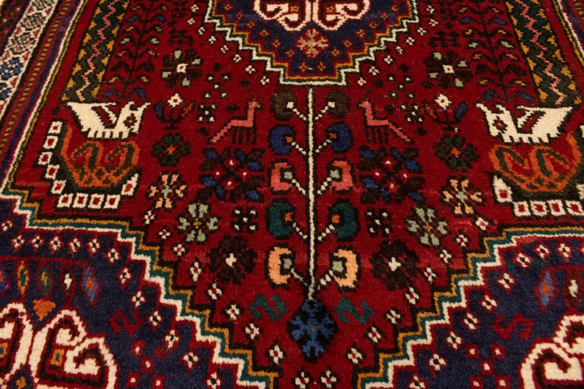 Handmade 3X5 red Persian rug made with vegetable dyes (fine wool pile and cotton foundation), exceptional knot count, and appealing ancient designs. This Oriental rug never will go out of style and would be among your most valuable treasures.