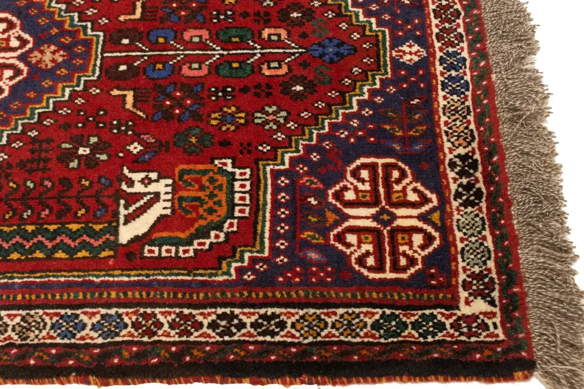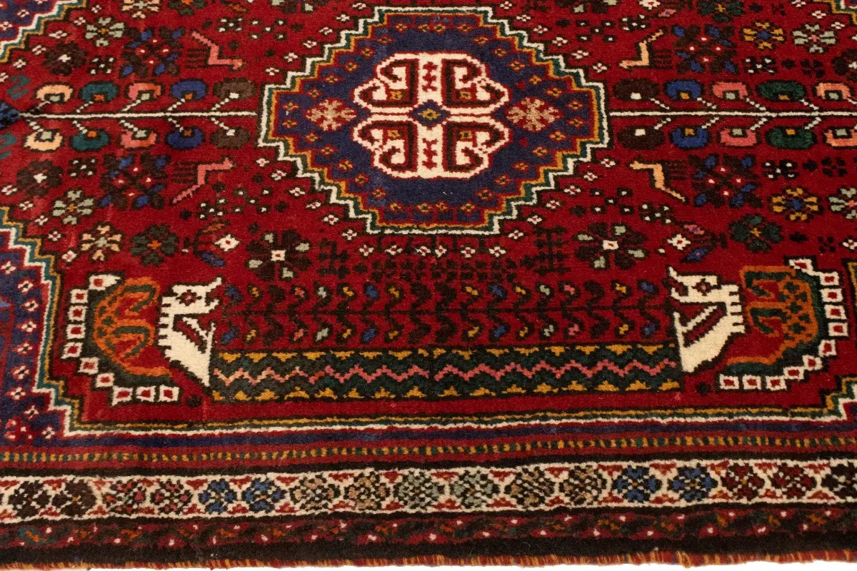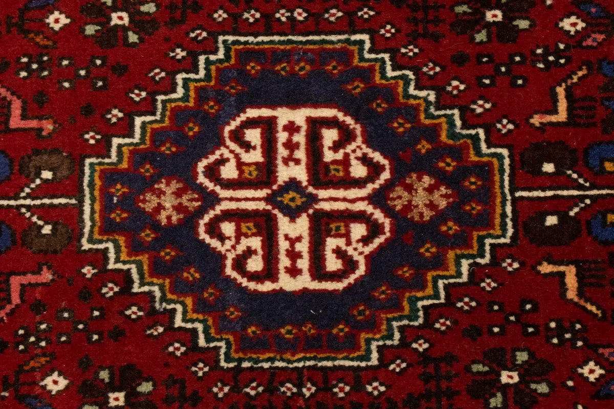 This genuine 3X5 red vintage Persian rug was made by the hands of talented weavers influenced by a variety of gorgeous symmetrical artistic designs, to recreate the aged look of the unique piece with a richness of color and very balanced background field. What set this tribal Oriental area rug from the others are the material and dye used (wool pile and cotton foundation), knot count, antique designs, fantastic grades, and its regional historical connection: it has deep roots, from the story of the people who produced it to the meaning of the symbols and colors displayed across its canvas that have been praised for centuries. This home décor carpet will be completely cozy and inviting that never will go out of style! Also, this Oriental rug would be among your most valuable treasures, it is a great investment that accrues value over time, and it will last a lifetime because was woven with high-quality, all-natural wool; it won’t rip, tear, or shed. Eco-friendly, opulent yet affordable; this Persian rug will give you an extra pop of character to help define your home environment with sophistication and warmth that will capture the eyes and attention of your audience (homeowners, designers, decorators, family and friends). RT-2156