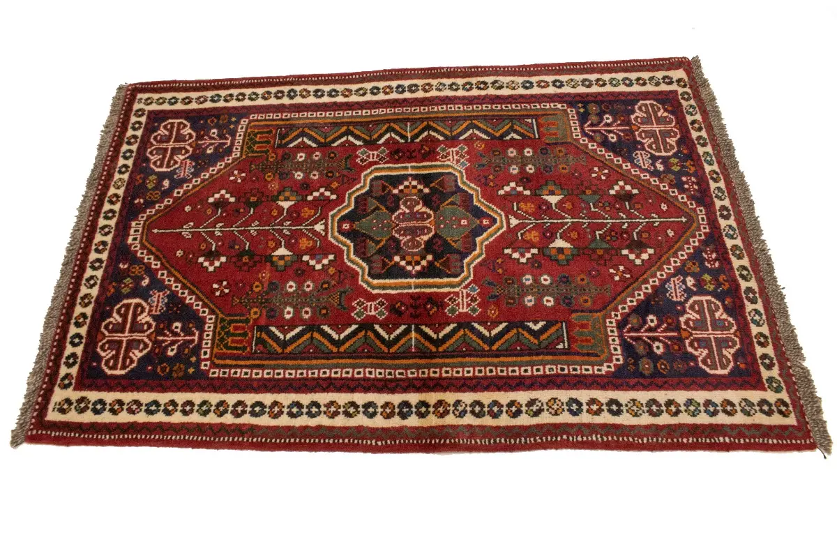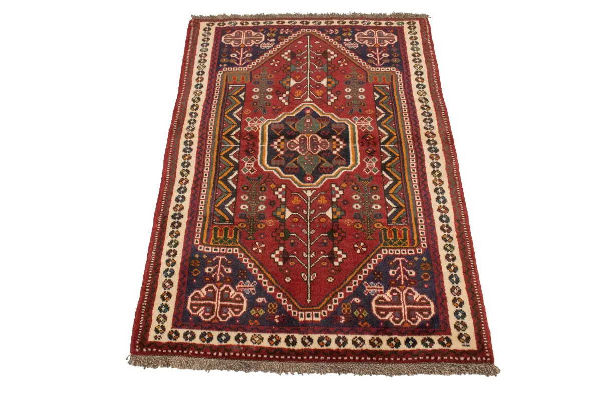 Hand Knotted 3X5 red Persian rug made with vegetable dyes (fine wool pile and cotton foundation), superior knot count, and appealing ancient designs. This Oriental rug never will go out of style and would be among your most valuable treasures.