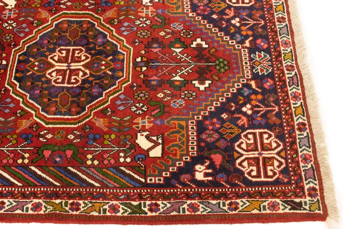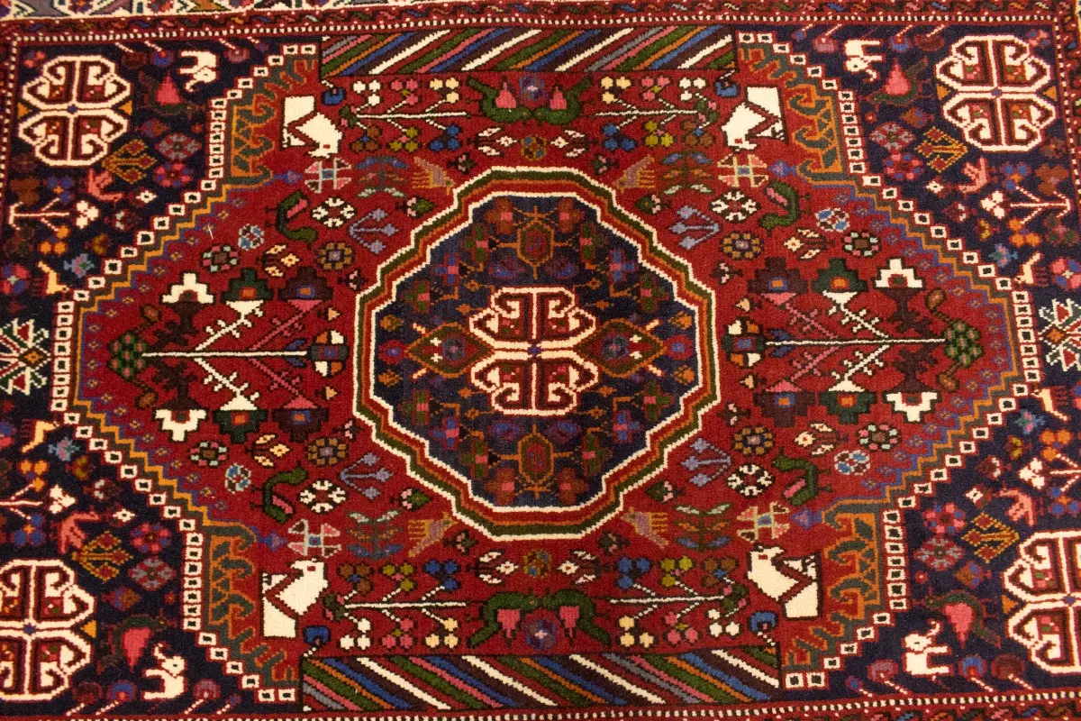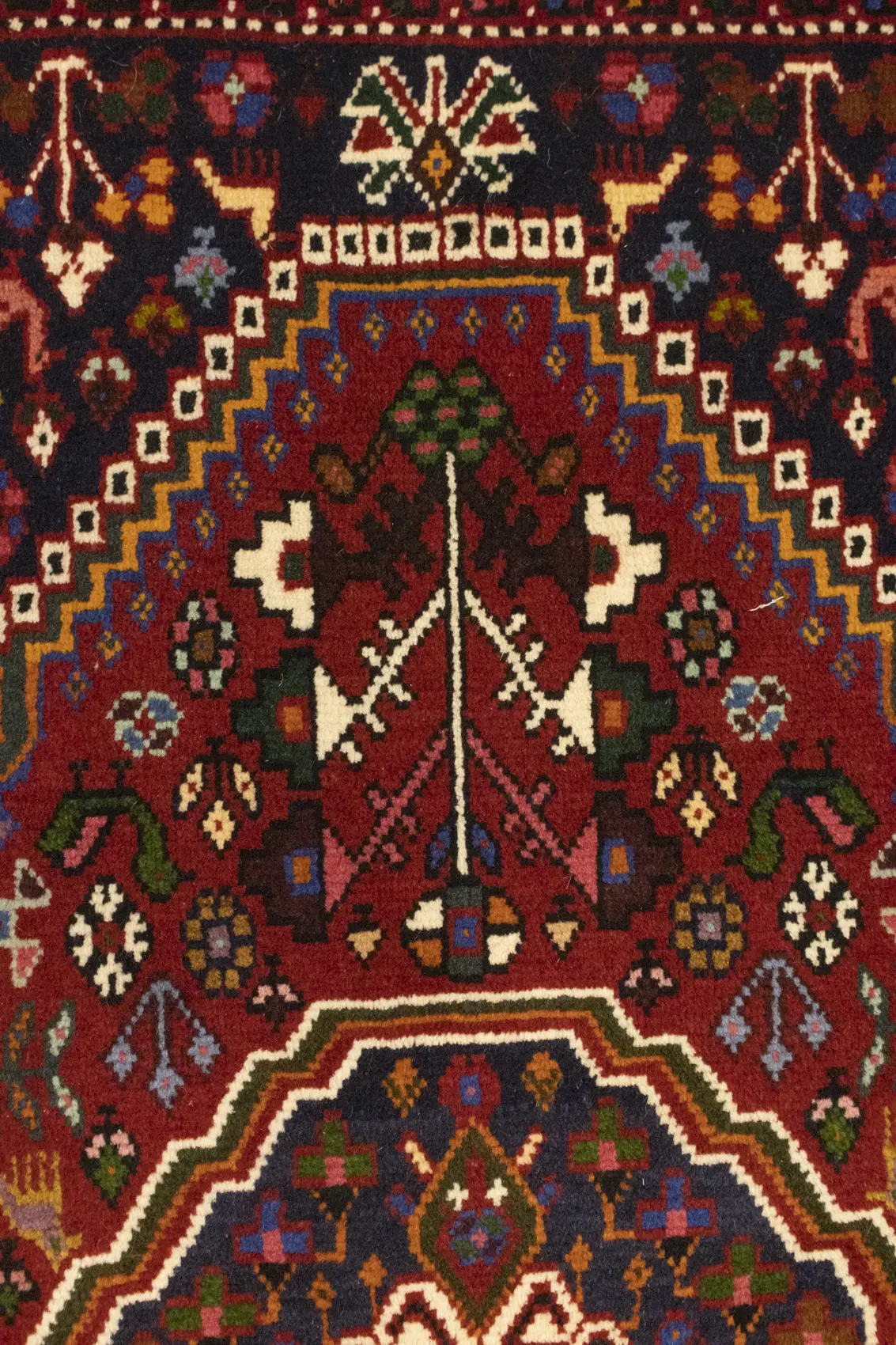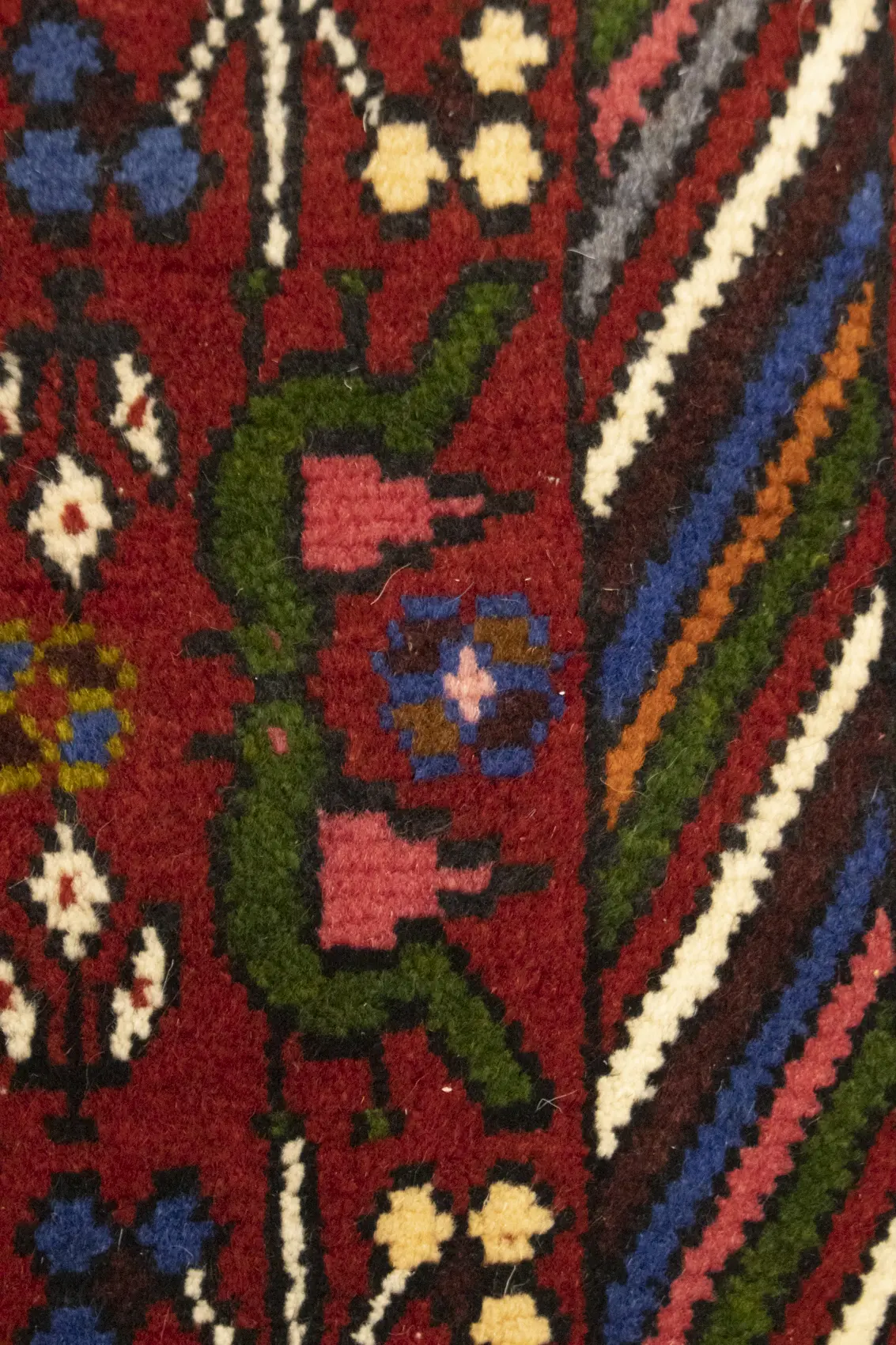 Hand Knotted 3X5 red Persian rug made with vegetable dyes (fine wool pile and cotton foundation), superior knot count, and appealing ancient designs. This Oriental rug never will go out of style and would be among your most valuable treasures.