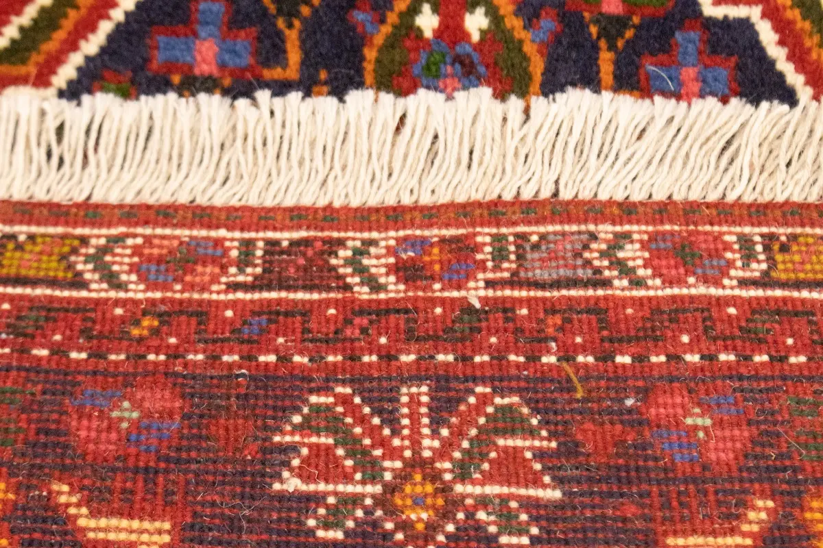 This original 3X5 red vintage Persian rug was well-constructed by the hands of master weavers motivated by a variety of stunning artistic designs, to recreate the aged look of the exceptional piece with a richness of color and developed decorative background field. What set this tribal Oriental area rug from the others are the material and dye used (wool pile and cotton foundation), knot count, ancient designs, fantastic grades, and its regional historical connection: it has deep roots, from the story of the people who produced it to the meaning of the symbols and colors displayed across its canvas that have been praised for centuries. This home décor carpet will be completely cozy and inviting that never will go out of style! Also, this Oriental rug would be among your most valuable treasures, it is a great investment that increase in value over time, and it will last a lifetime because was woven with high-quality, all-natural wool; it won’t rip, tear, or shed. Eco-friendly, opulent yet affordable; this Persian rug will give you an extra pop of character to help define your home environment with elegance and warmth that will capture the eyes and attention of your audience (homeowners, designers, decorators, family and friends). RT-2341