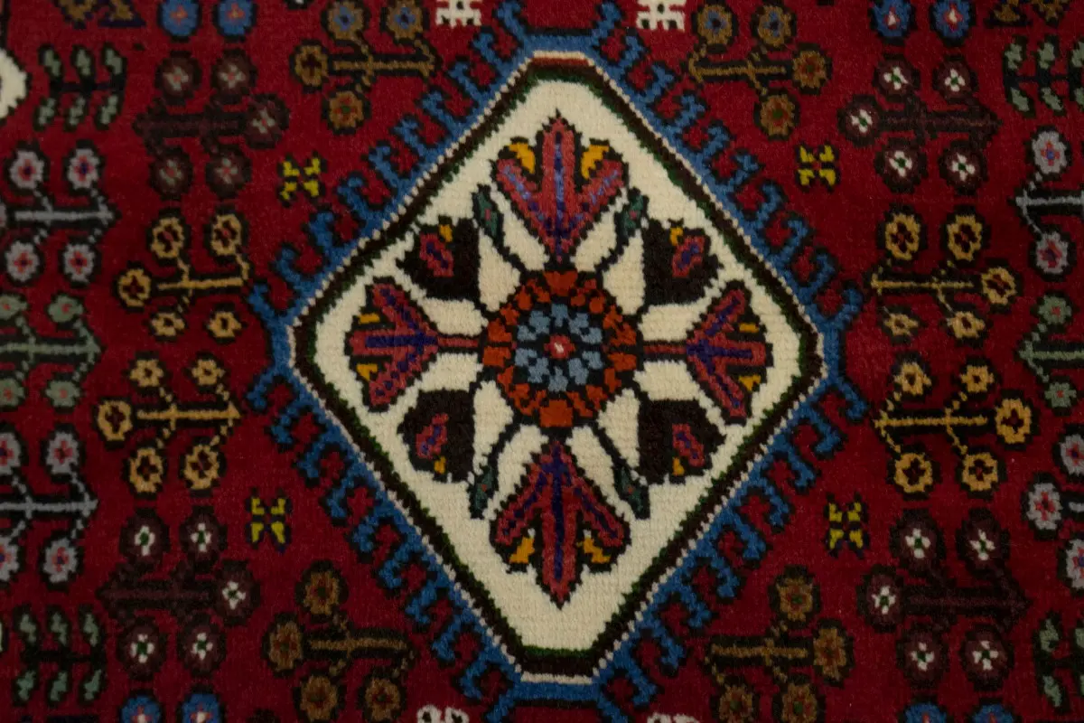 Handmade 3X5 red Persian rug made with vegetable dyes (fine wool pile and cotton foundation), superior knot count, and appealing ancient designs. This Oriental rug never will go out of style and would be among your most valuable treasures.