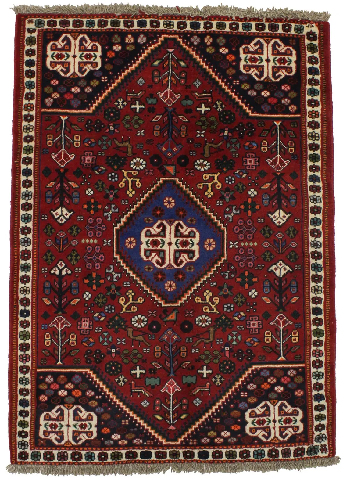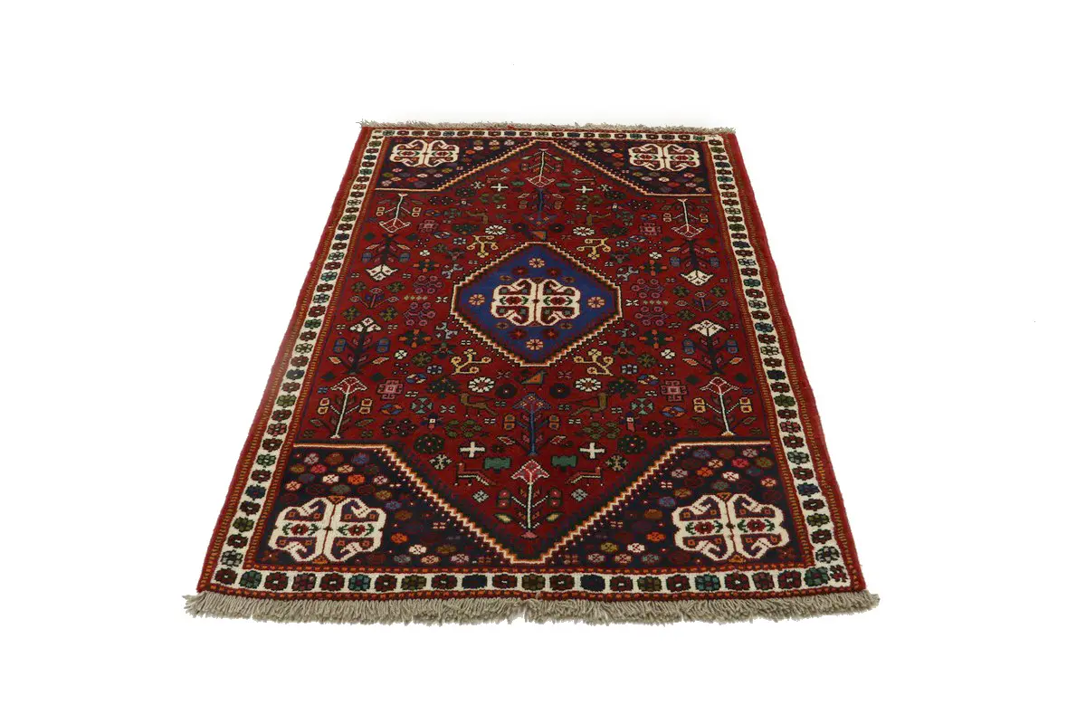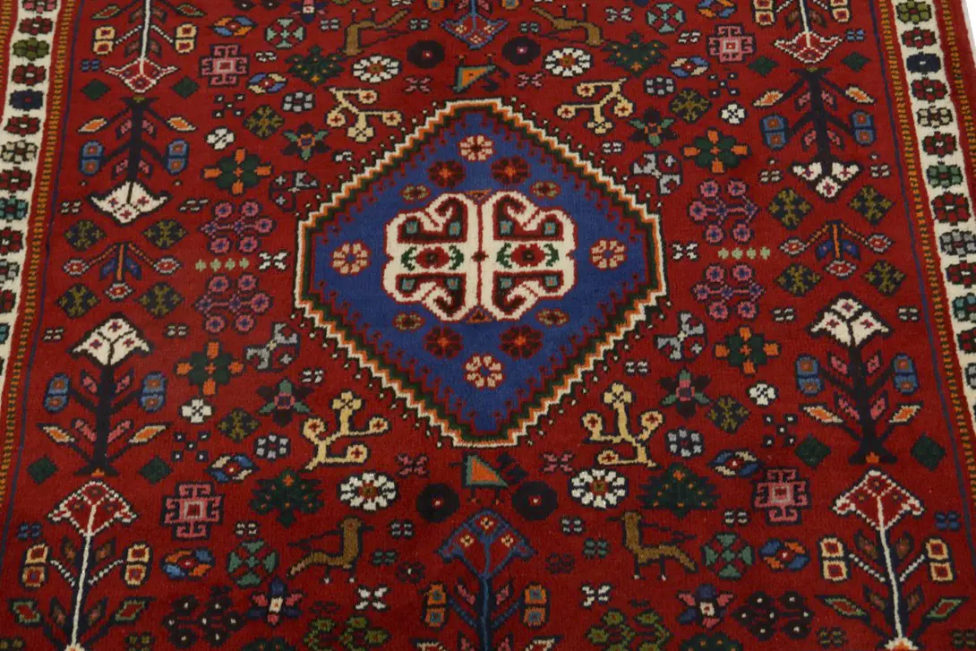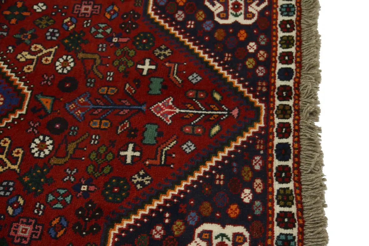 This original 4X5 Red Persian rug was crafted by the hands of skilled weavers enthused by a variety of lovely artistic designs, to recreate the aged look of the unique piece with a richness of color and beautifully elaborated background field. What set this tribal Oriental area rug from the others are the material and dye used (wool pile and cotton foundation), knot count, ancient designs, fantastic grades, and its regional historical connection: it has deep roots, from the story of the people who produced it to the meaning of the symbols and colors displayed across its canvas that have been praised for centuries. This home décor carpet will be completely cozy and inviting that never will go out of style! Also, this Oriental rug would be among your most valuable treasures, it is a great investment that increase in value over time, and it will last for generations because was woven with high-quality, all-natural wool; it won’t rip, tear, or shed. Environmentally friendly, opulent yet affordable; this Persian rug will give you a thorough amount of character to help define your living space with sophistication and warmth that will capture the eyes and attention of your audience (homeowners, designers, decorators, family and friends). RT-2582