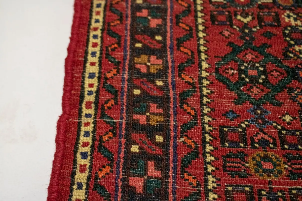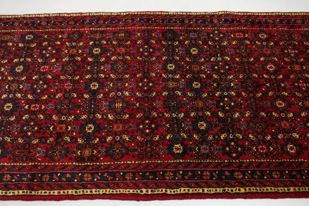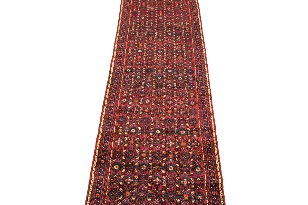 This authentic 3’6X17 red oversized Persian runner was masterly knotted by the hands of weavers inspired by a variety of wonderful artistic designs, to recreate the aged look of the original piece with a richness of color and intricate patterned background field. What set this tribal Oriental area runner from the others are the material and dye used (wool pile and cotton foundation), knot count, antique designs, fantastic grades, and its regional historical connection: it has deep roots, from the story of the people who produced it to the meaning of the symbols and colors displayed across its canvas that have been praised for centuries. This home décor carpet will be completely cozy and inviting that never will go out of style! Also, this Oriental runner would be among your most valuable treasures, it is a great investment that accrues value over time, and it will last for generations because was woven with high-quality, all-natural wool; it won’t rip, tear, or shed. Environmentally friendly, opulent yet affordable; this Persian rug will give you a thorough amount of character to help define your living space with luxury and warmth that will capture the eyes and attention of your audience (homeowners, designers, decorators, family and friends). RT-3514