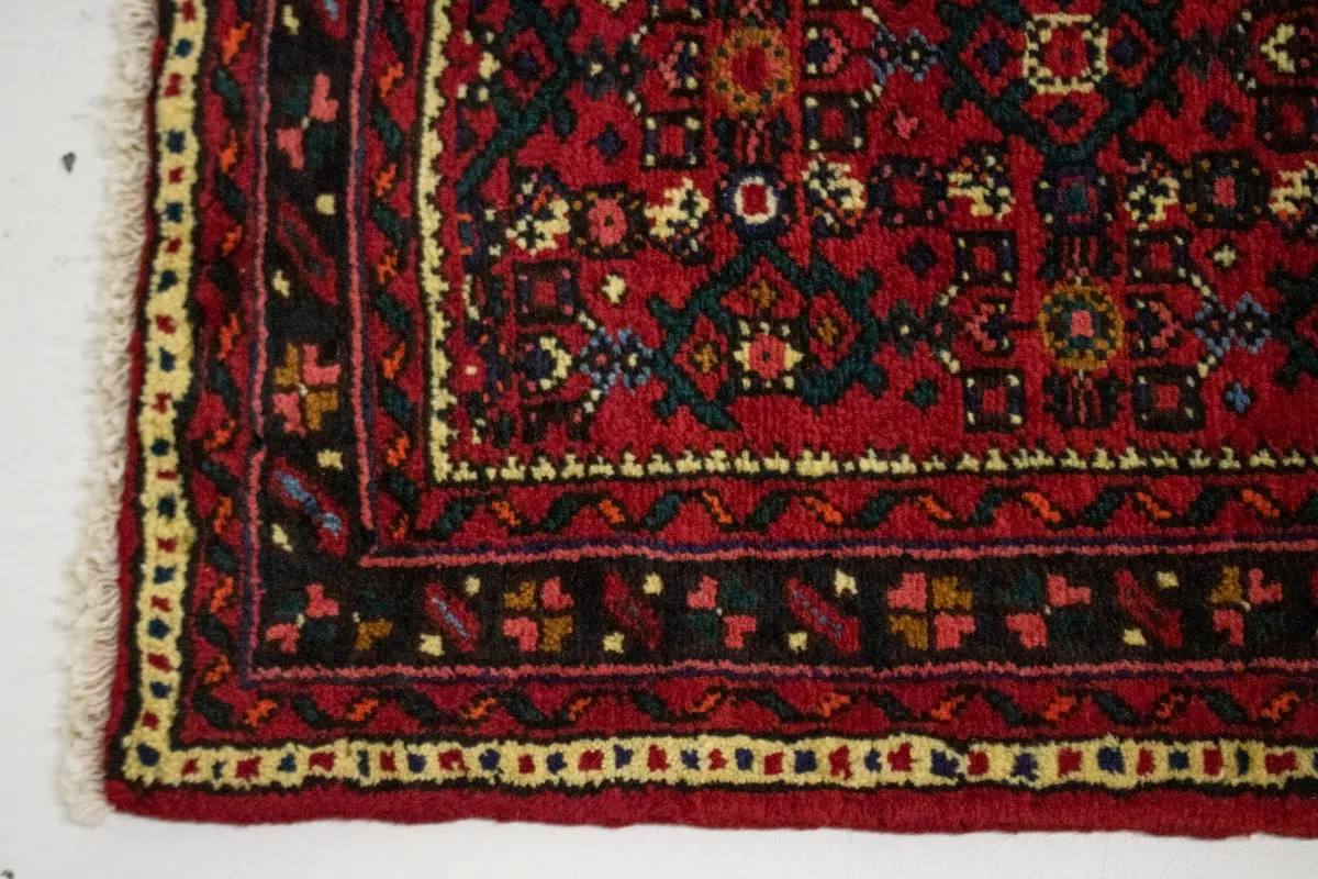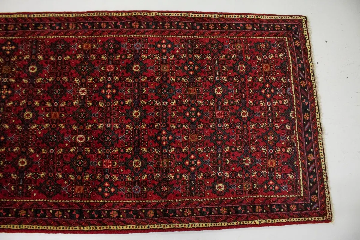 Vintage Red Tribal 4X17 Hossainabad Persian Runner Rug