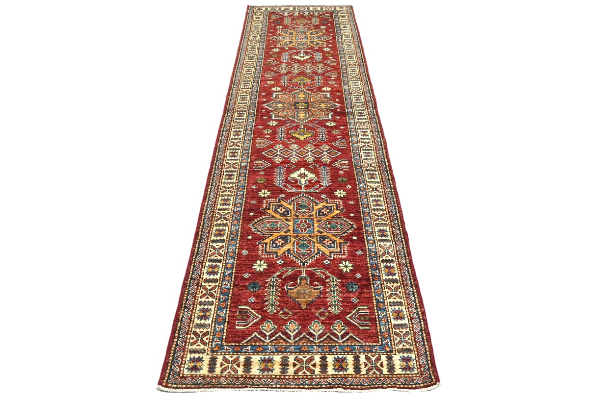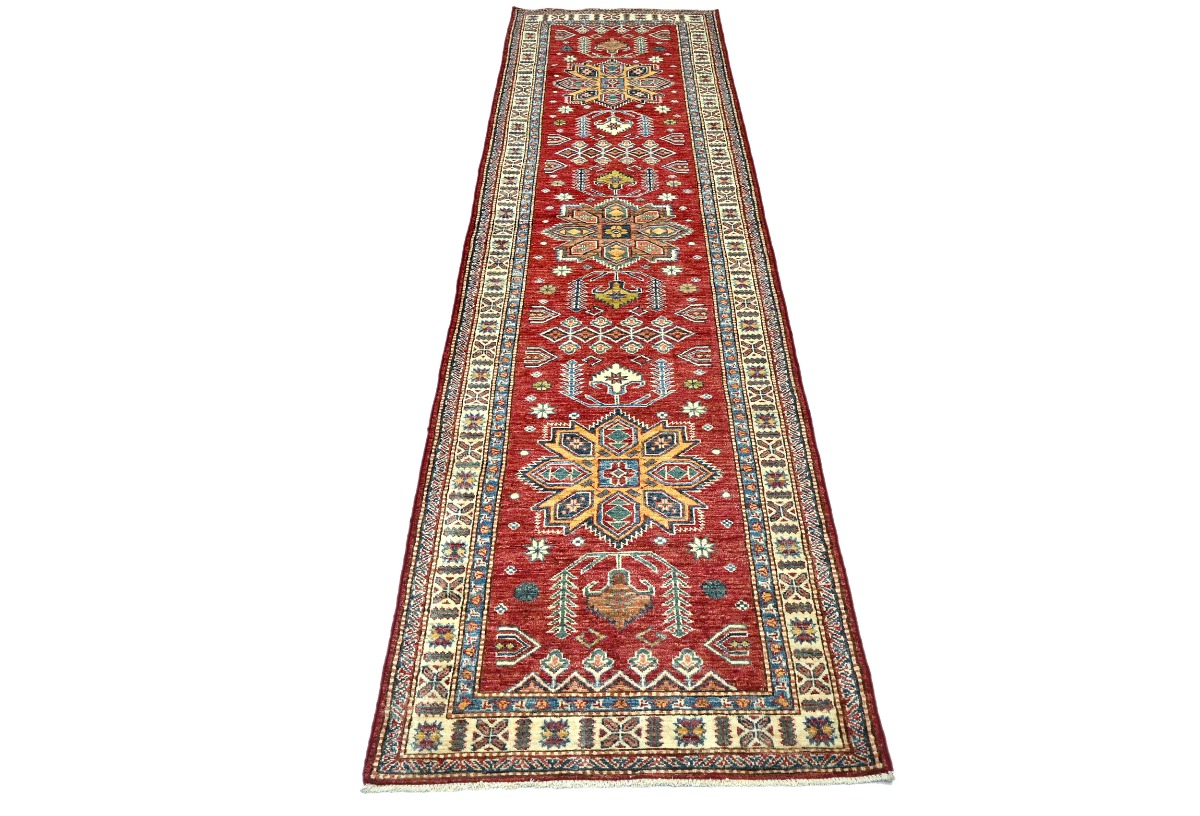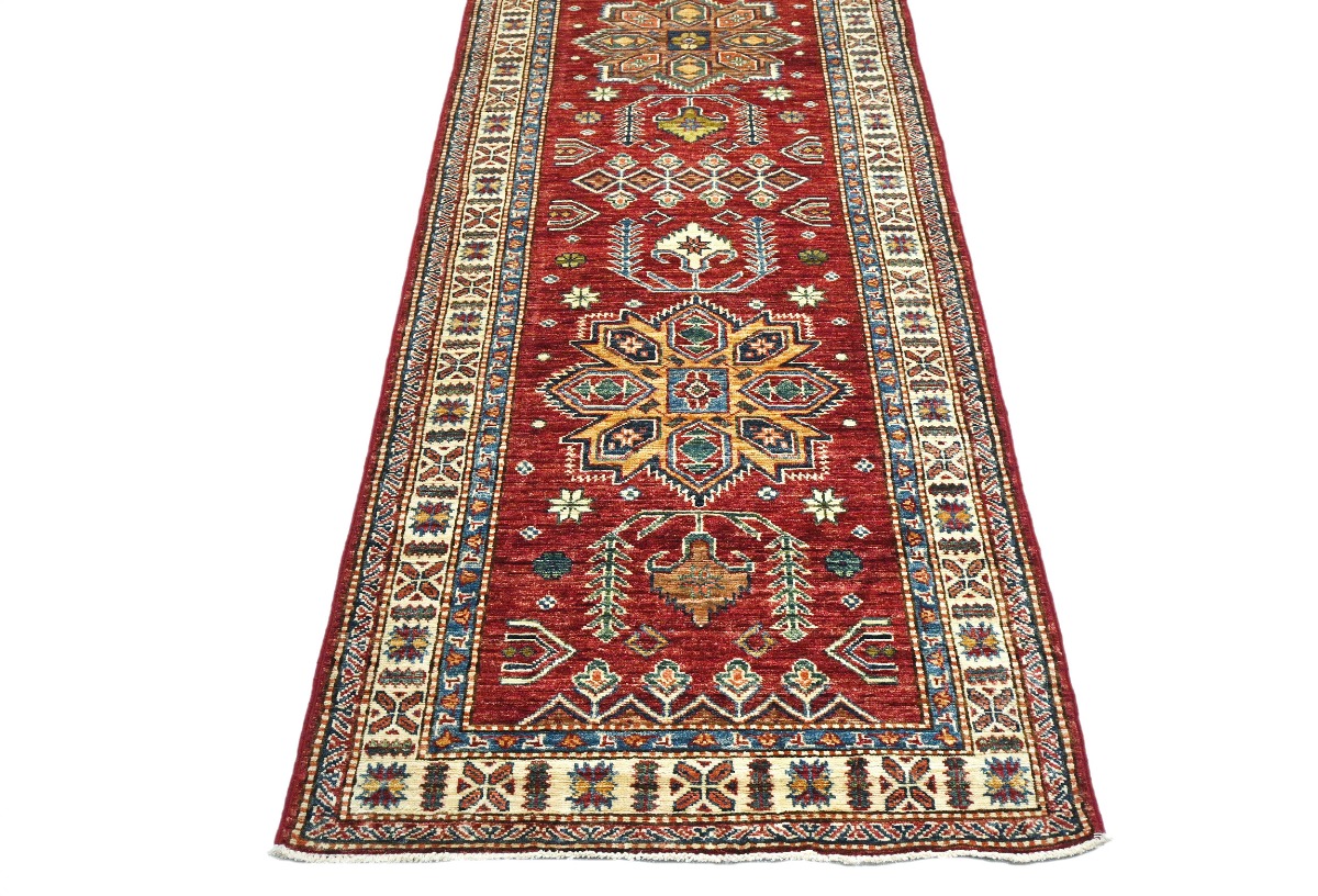 Red Tribal Geometric 3X10 Kazak Pakistan Oriental Runner Rug