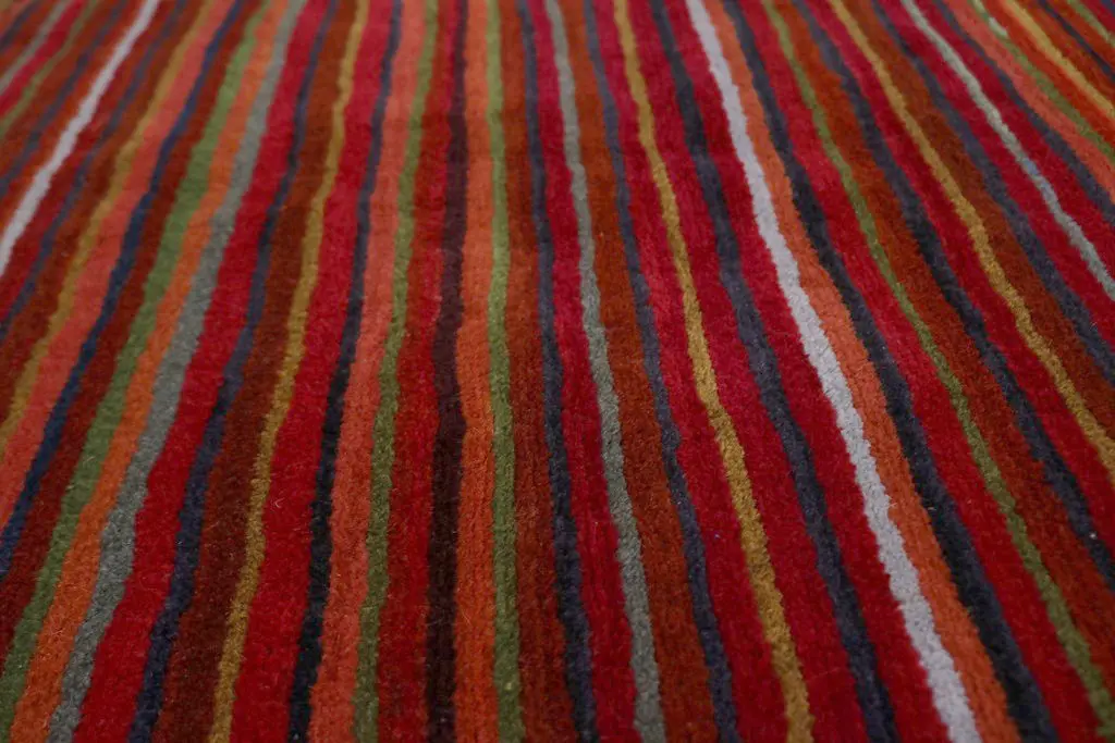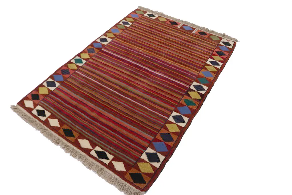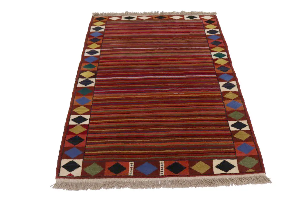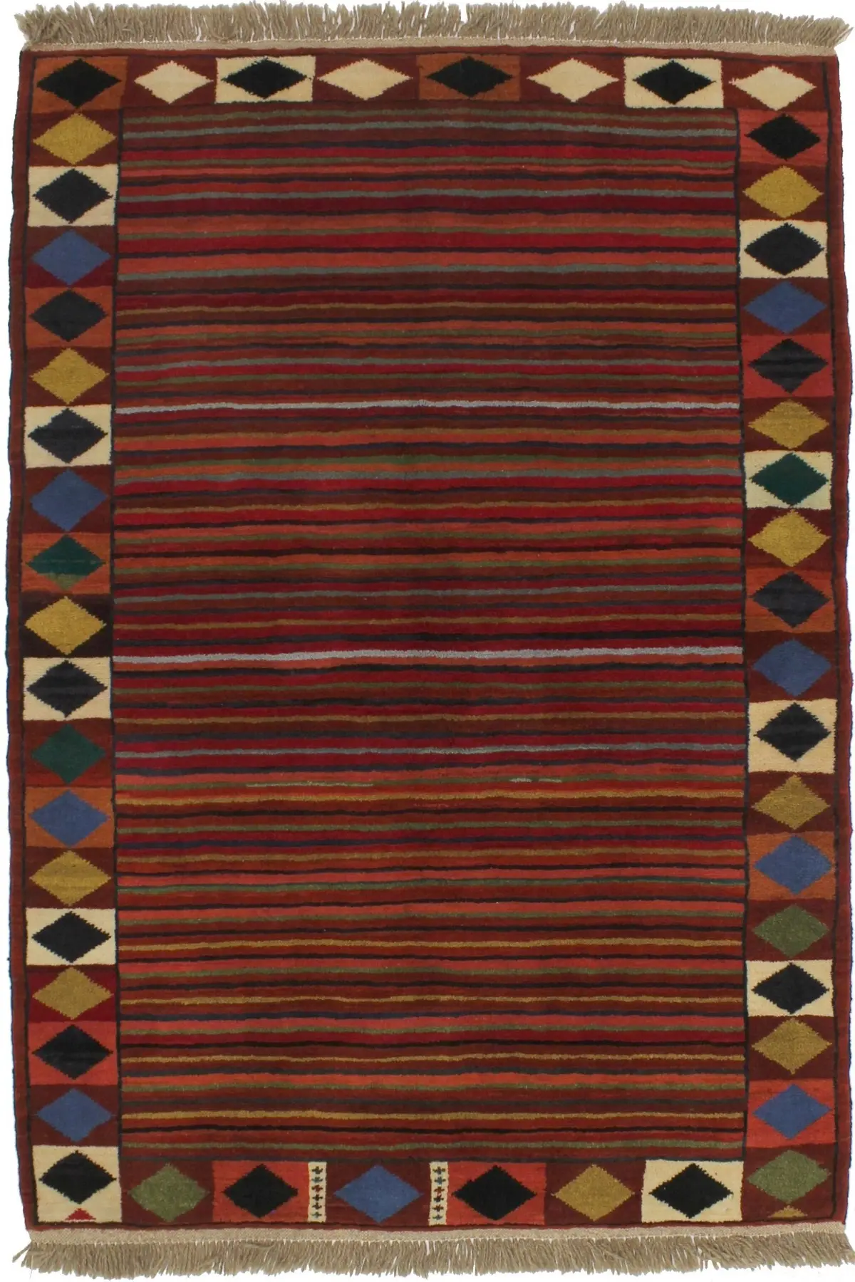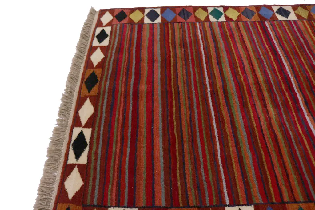 Red Tribal Stripes & Border 4X6 Gabbeh Persian Rug