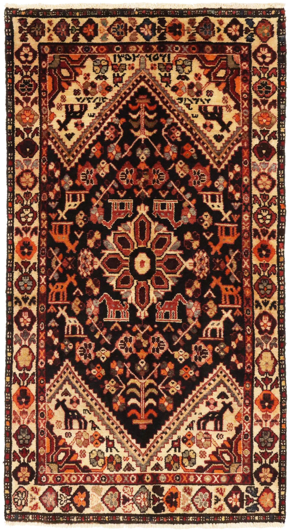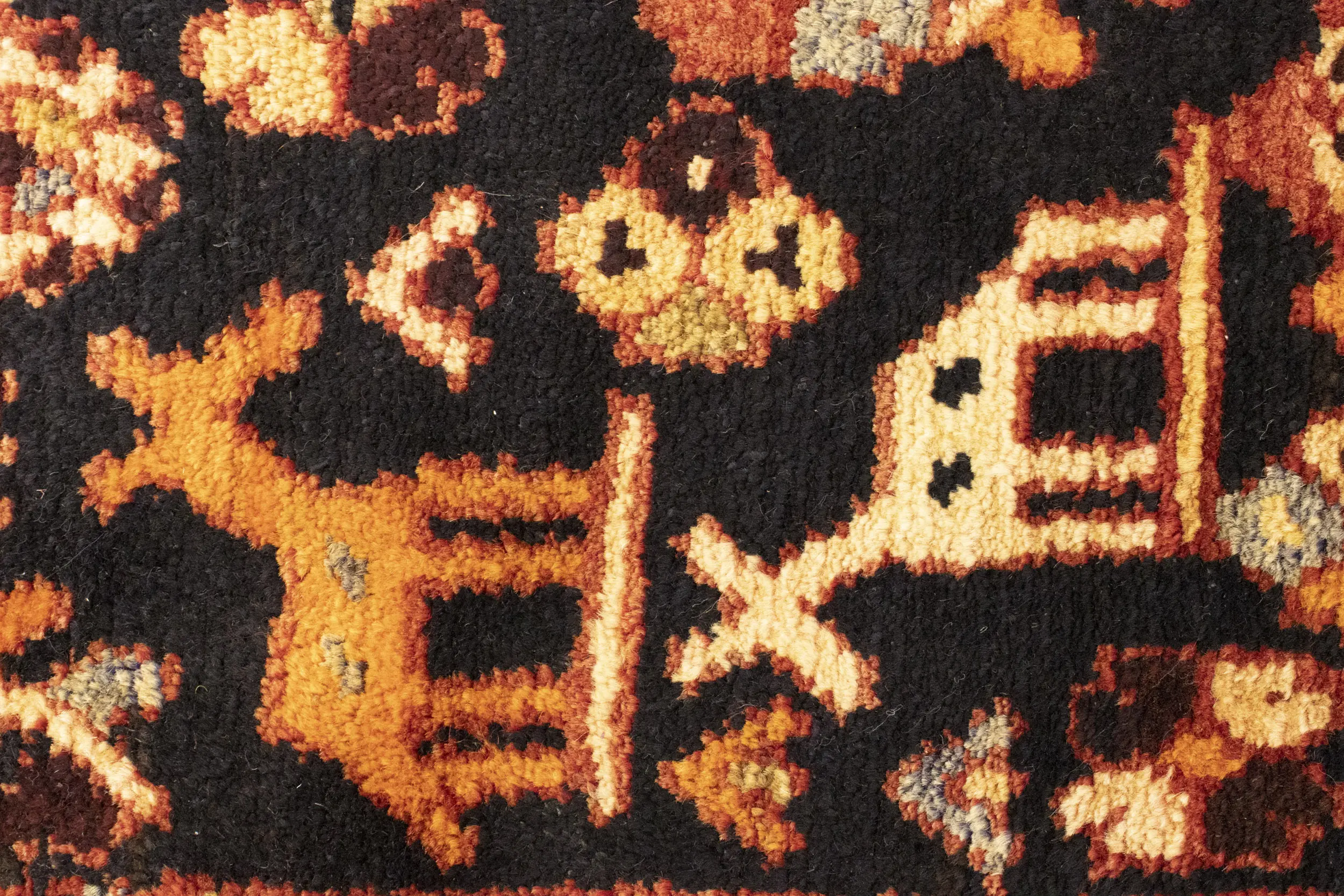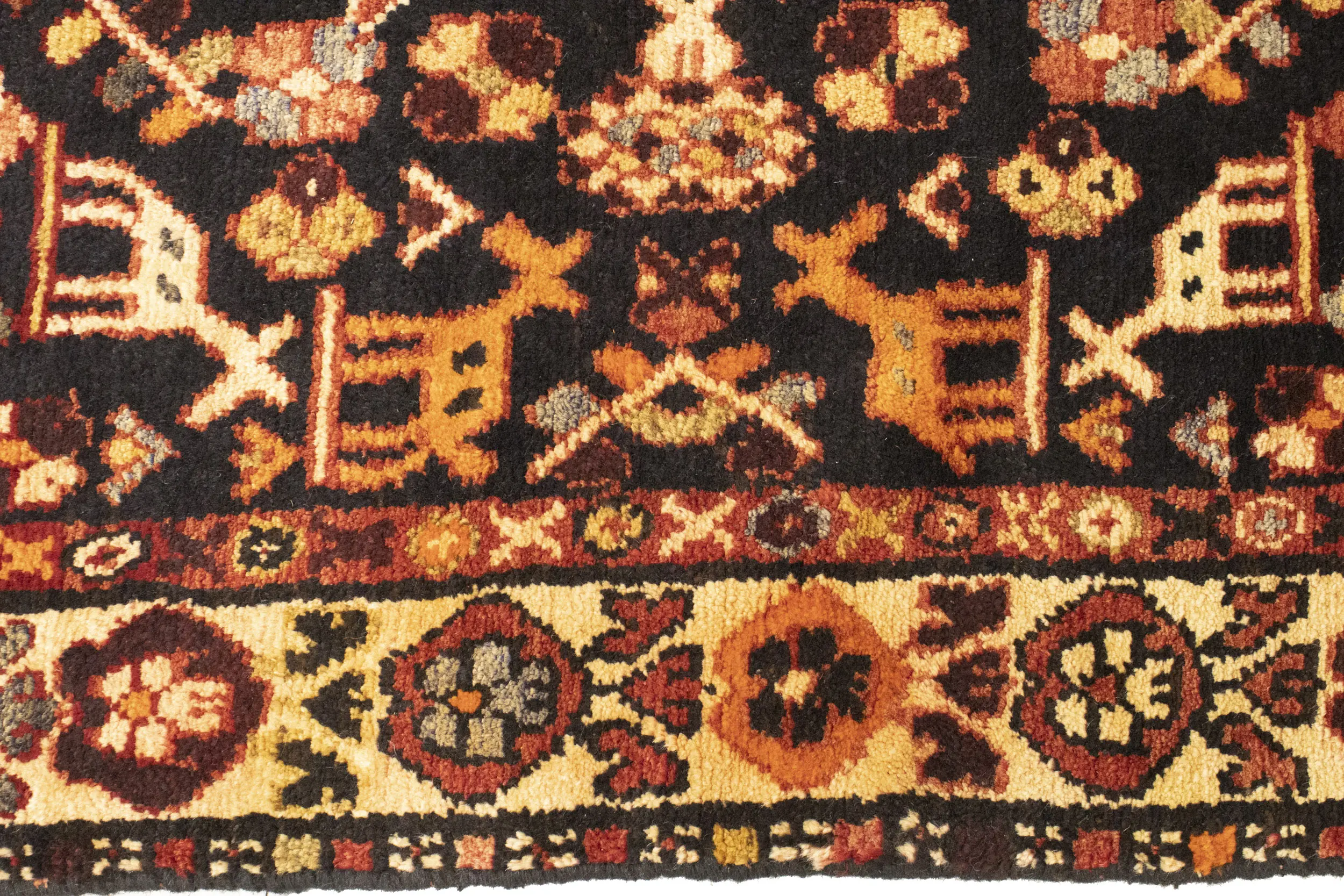 Charcoal Pictorial Tribal 3'5X6'5 Vintage Oriental Rug