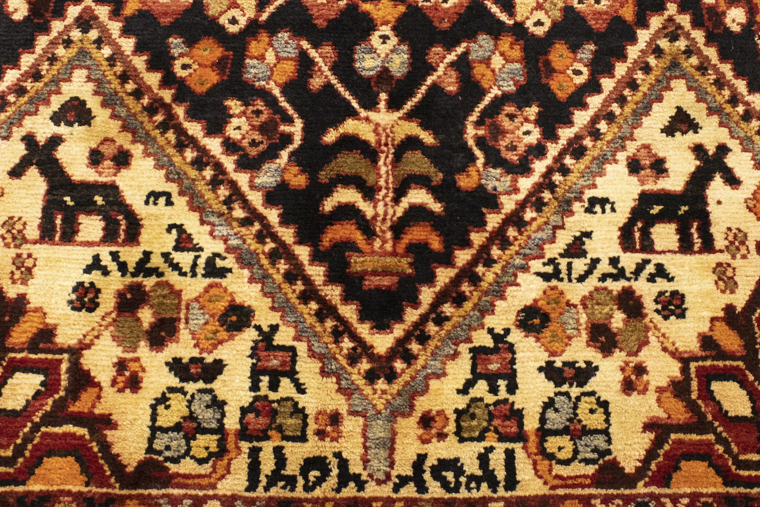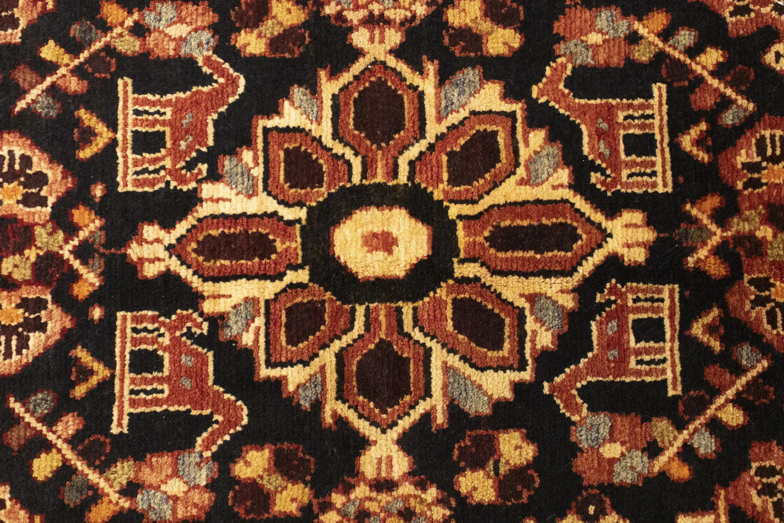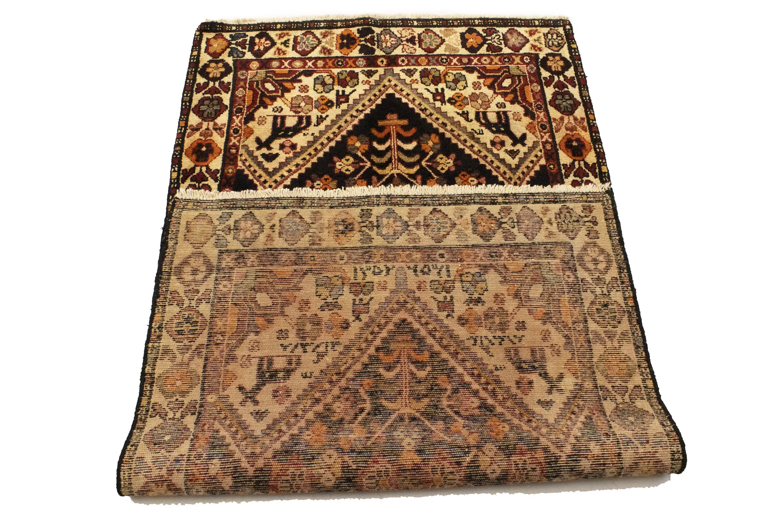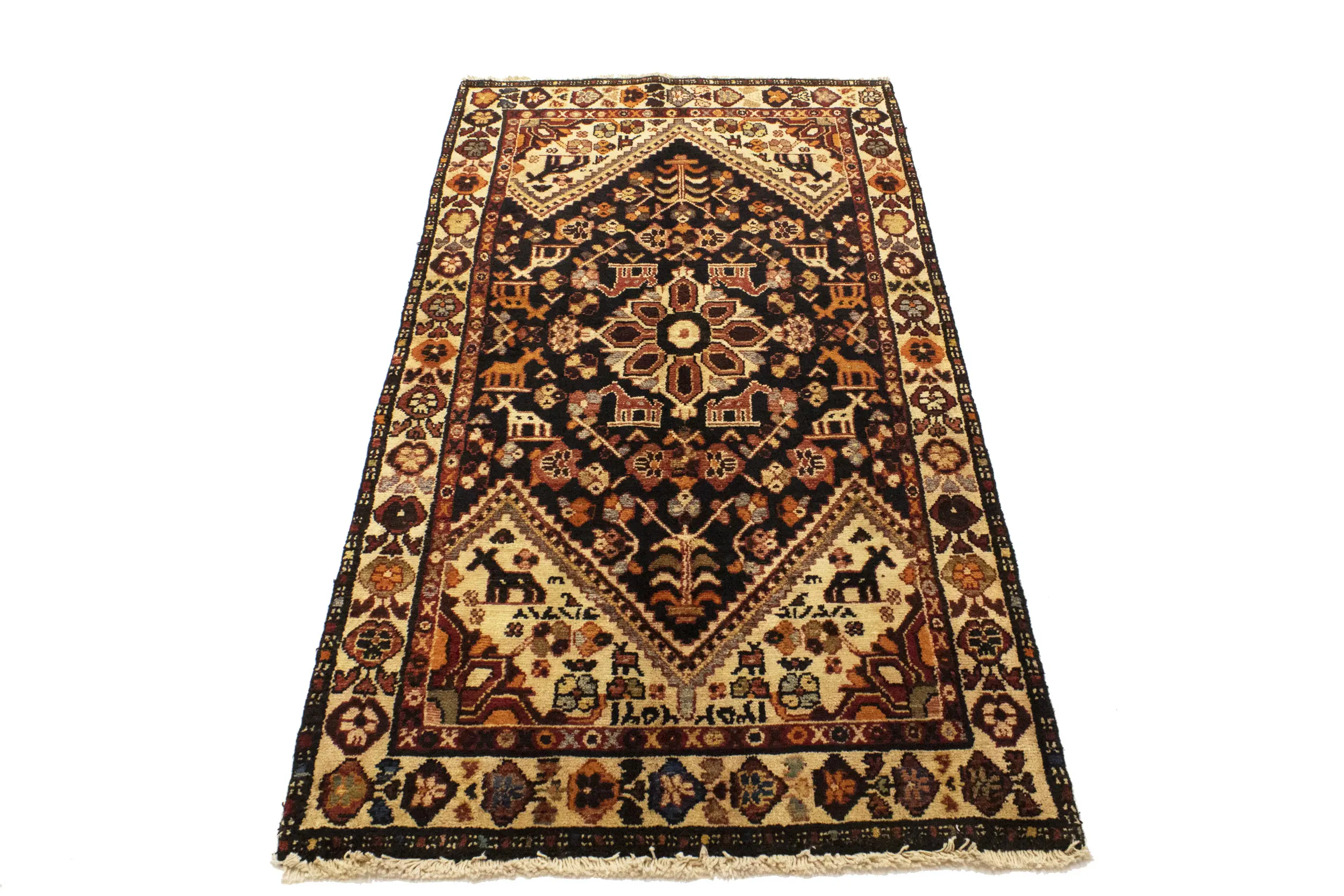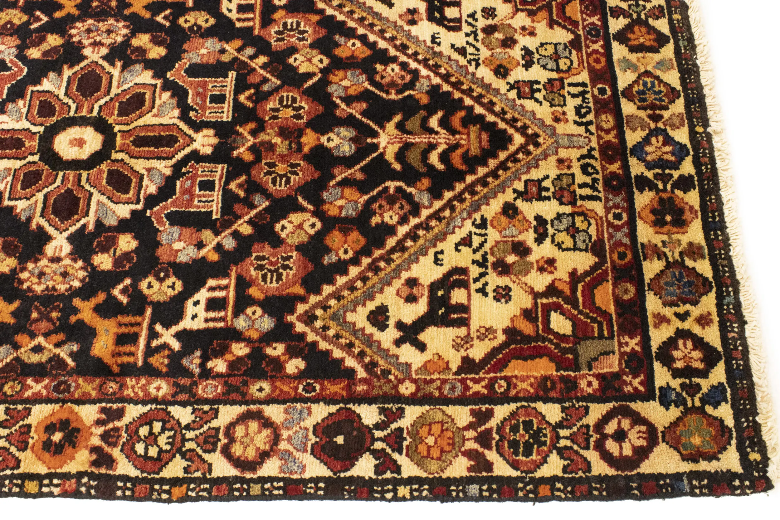 Handmade vintage 3'5X6'5 Charcoal Persian rug made with vegetable dyes (fine wool pile and cotton foundation), exceptional knot count, and alluring ancient designs. This Oriental rug never will go out of style and would be among your most valuable treasures.