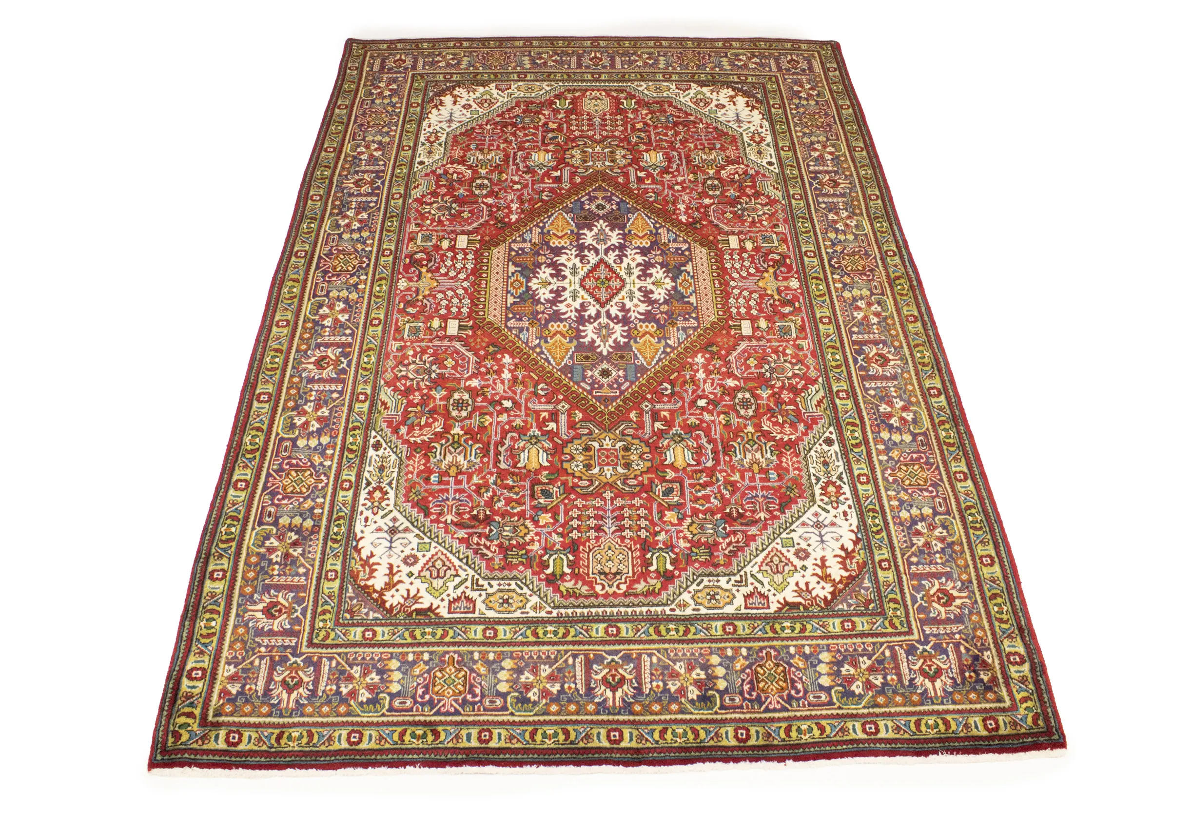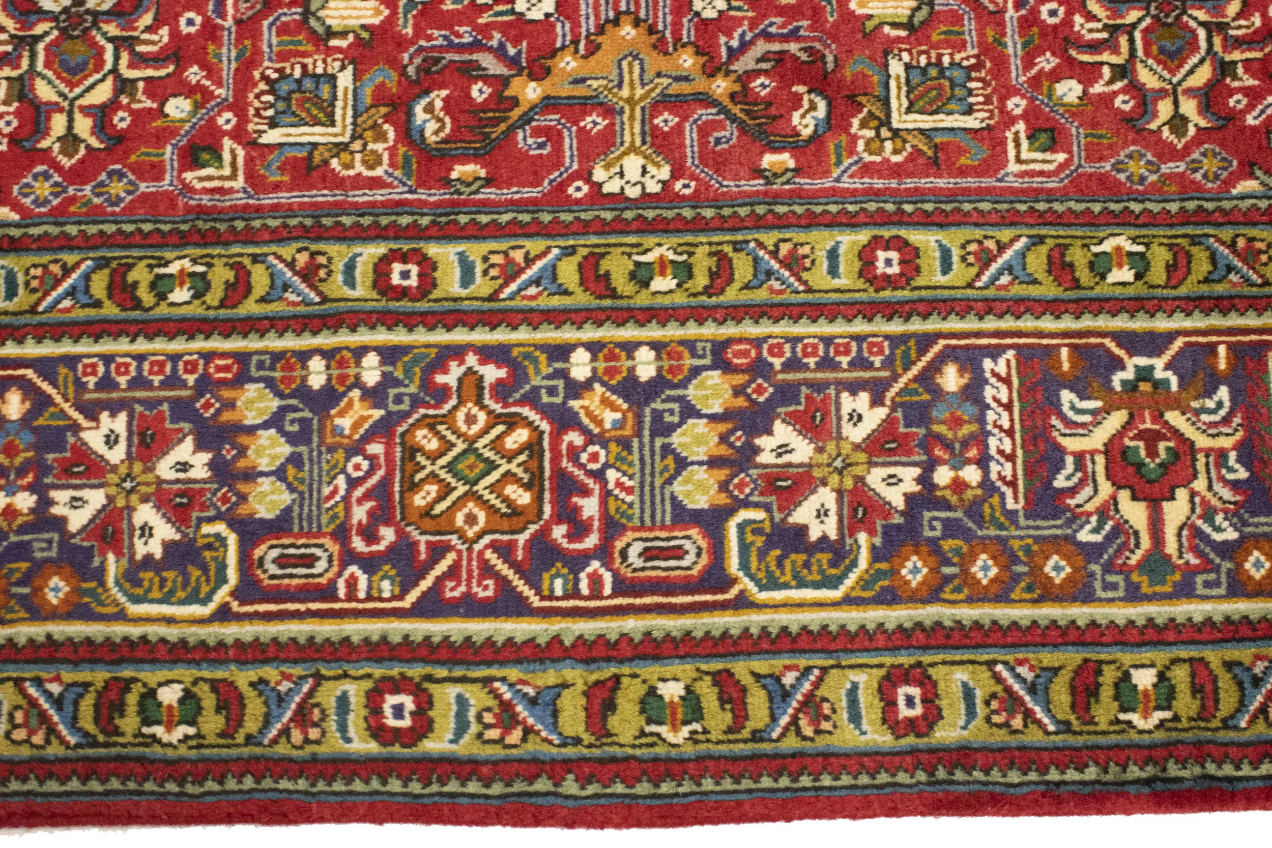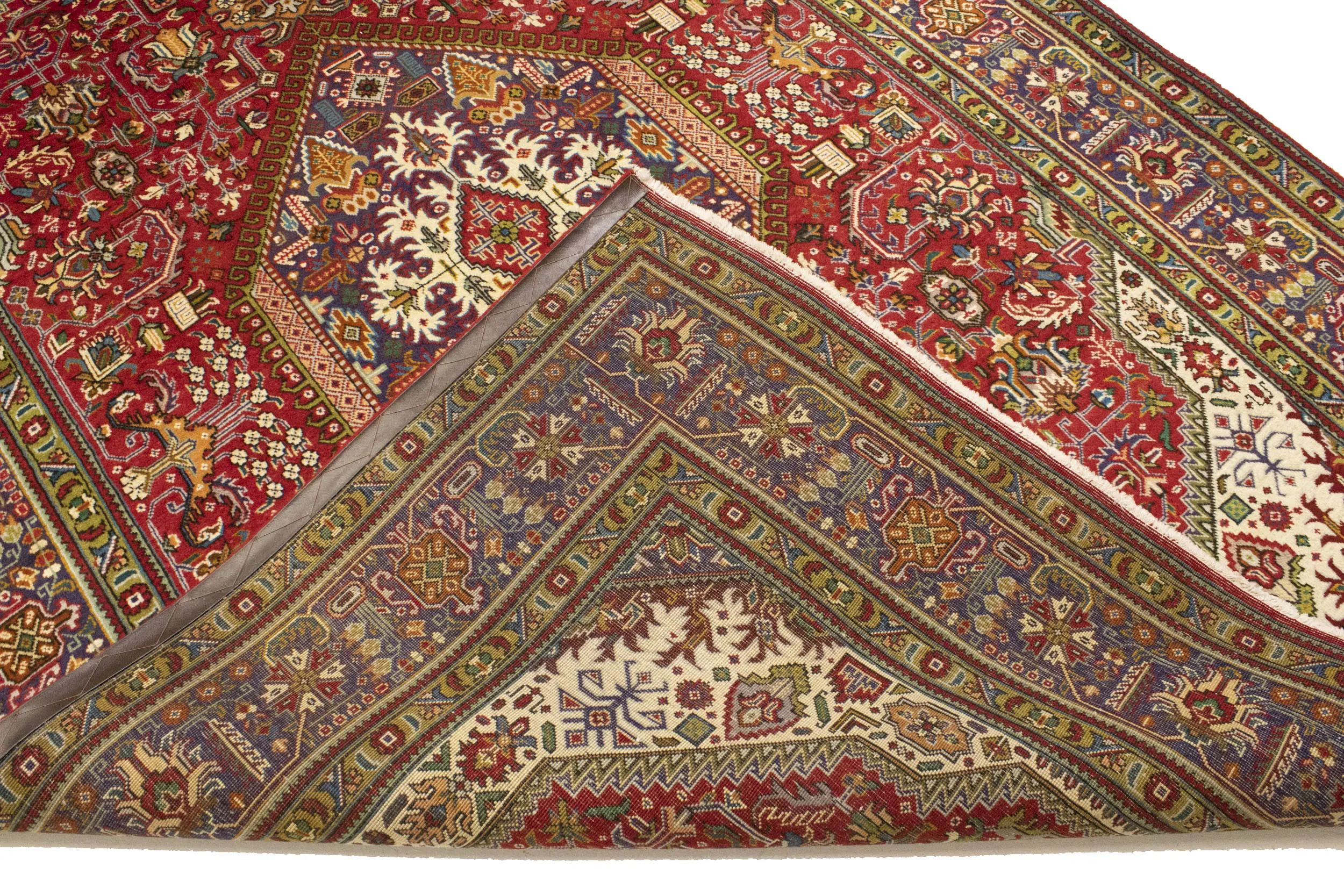Hand Knotted vintage 6'6X9'8 Red Persian rug made with vegetable dyes (fine wool pile and cotton foundation), exceptional knot count, and alluring ancient designs. This Oriental rug never will go out of style and would be among your most valuable treasures.