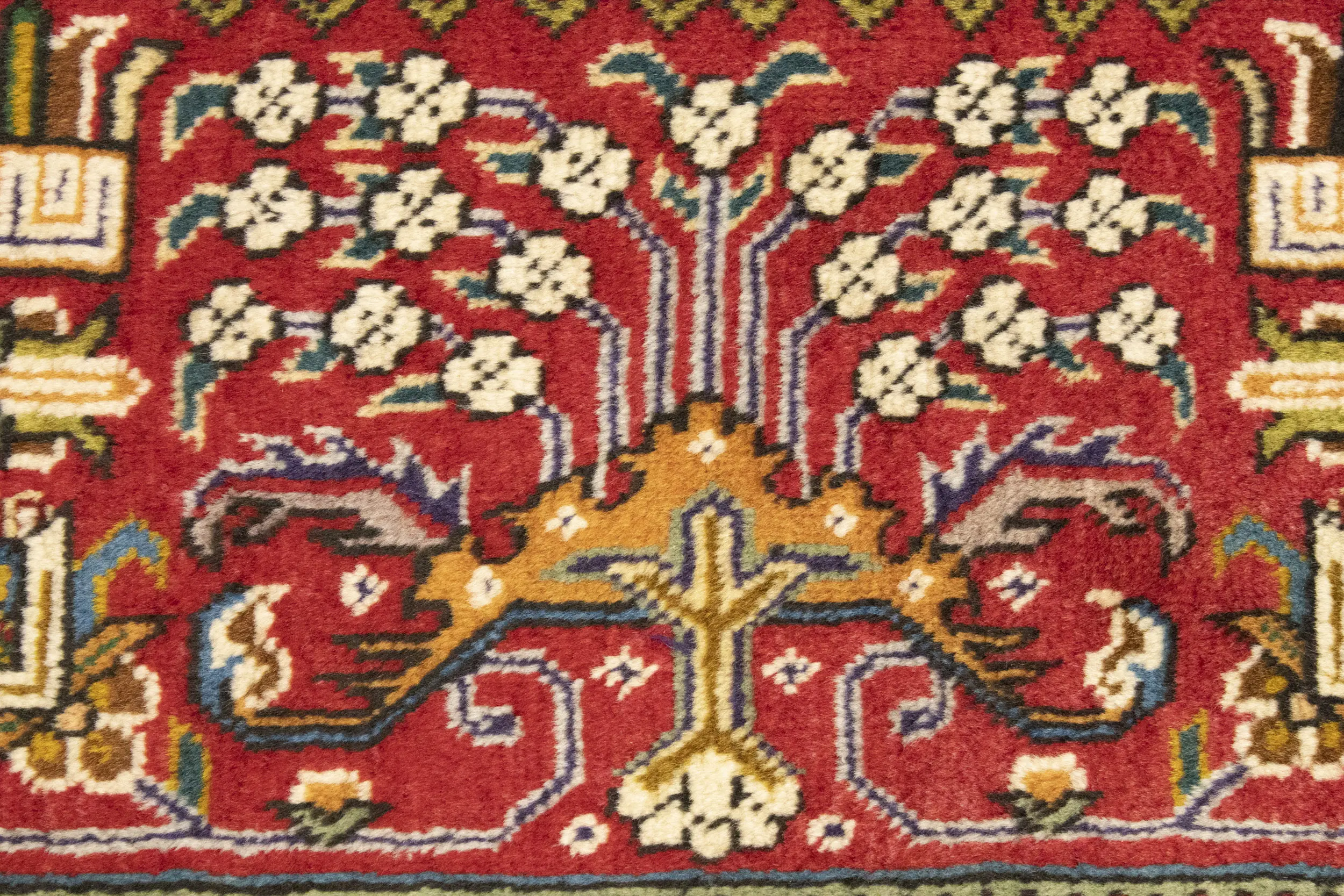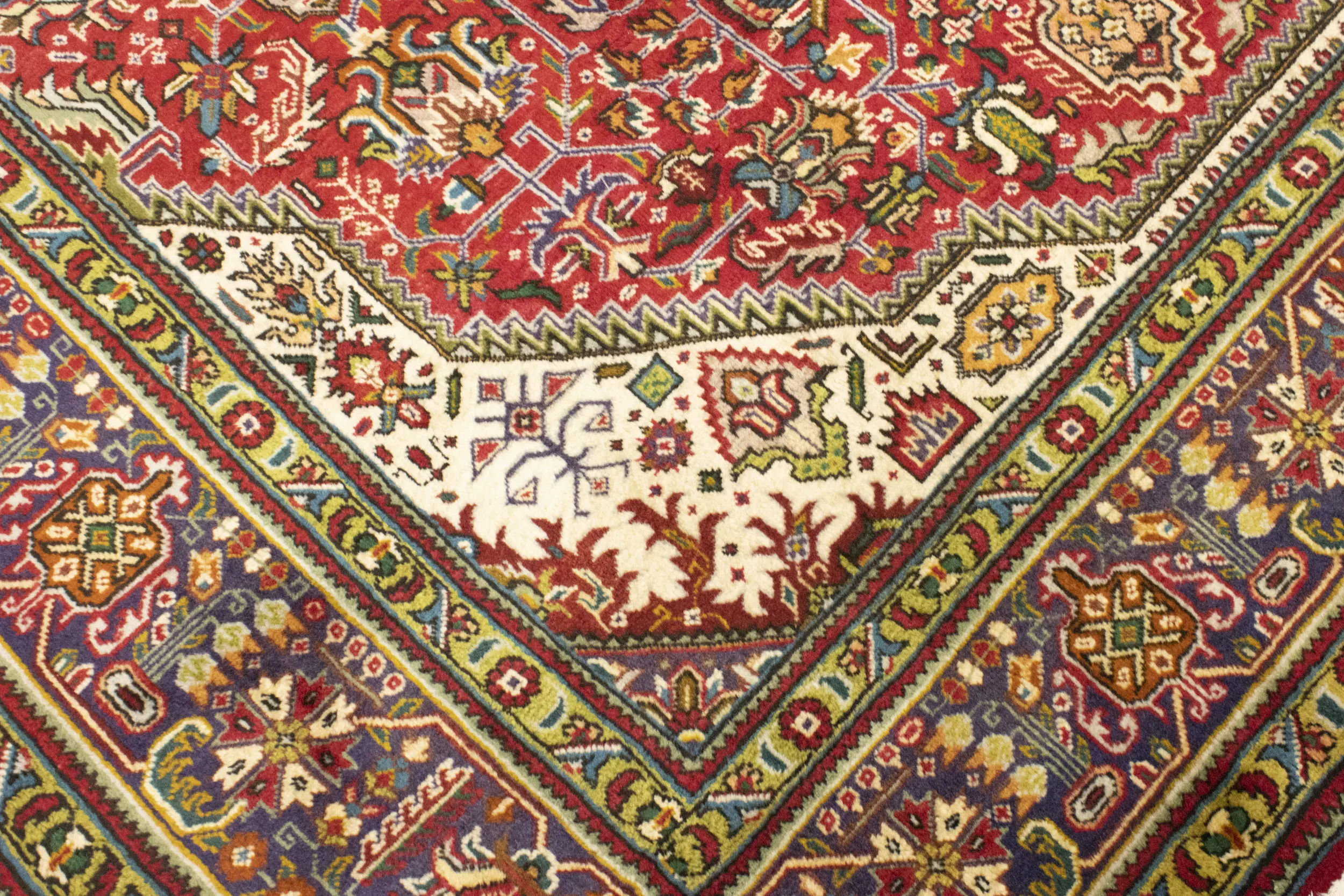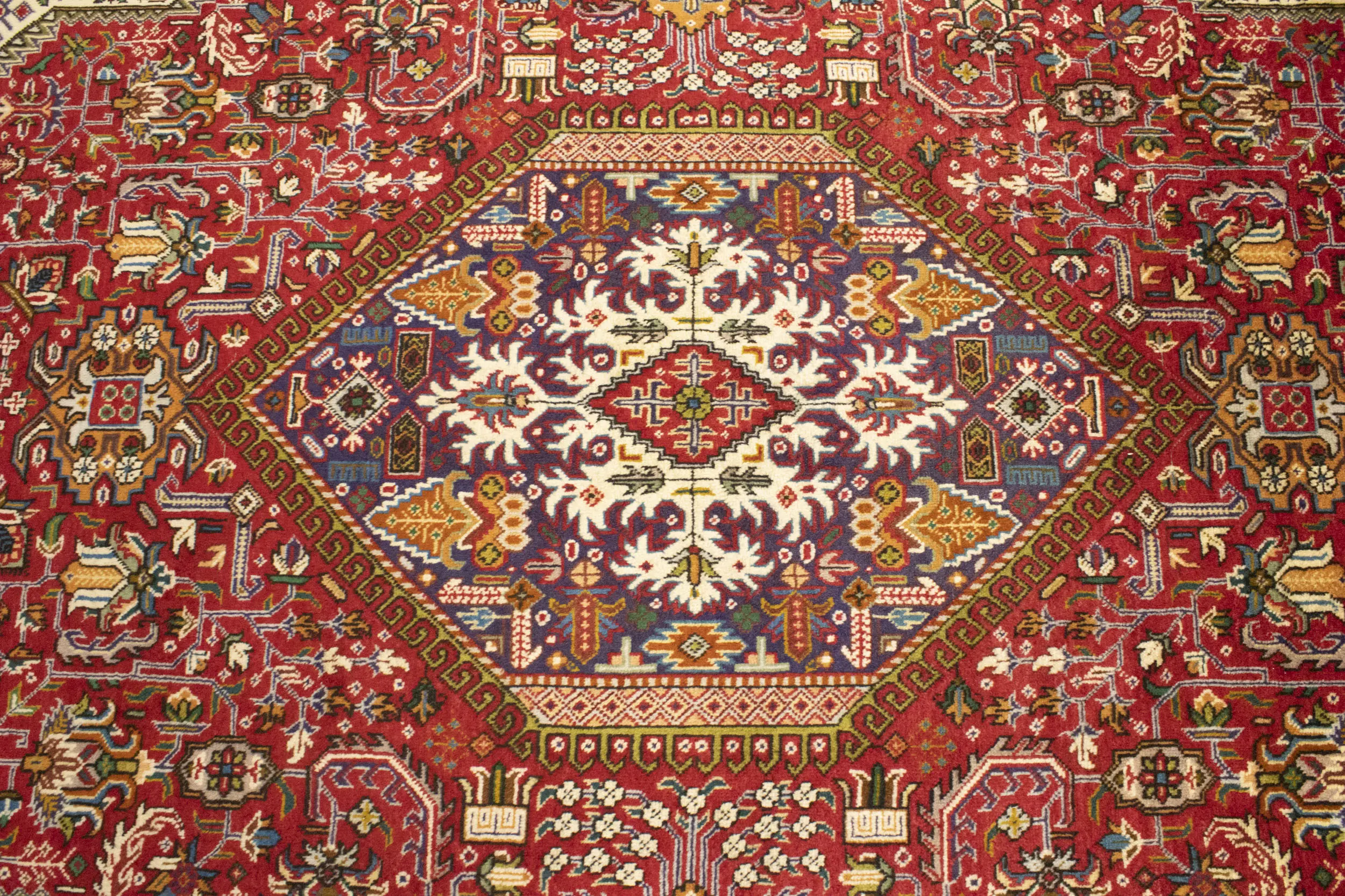 Hand Knotted vintage 6'6X9'8 Red Persian rug made with vegetable dyes (fine wool pile and cotton foundation), exceptional knot count, and alluring ancient designs. This Oriental rug never will go out of style and would be among your most valuable treasures.