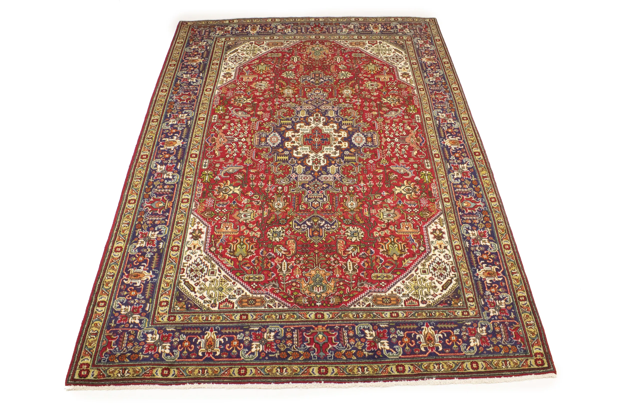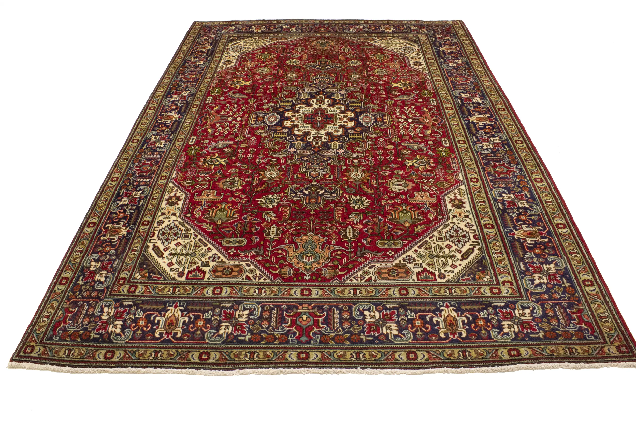 Handmade vintage 7X10 Red Persian rug made with vegetable dyes (fine wool pile and cotton foundation), superior knot count, and alluring ancient designs. This Oriental rug never will go out of style and would be among your most valuable treasures.