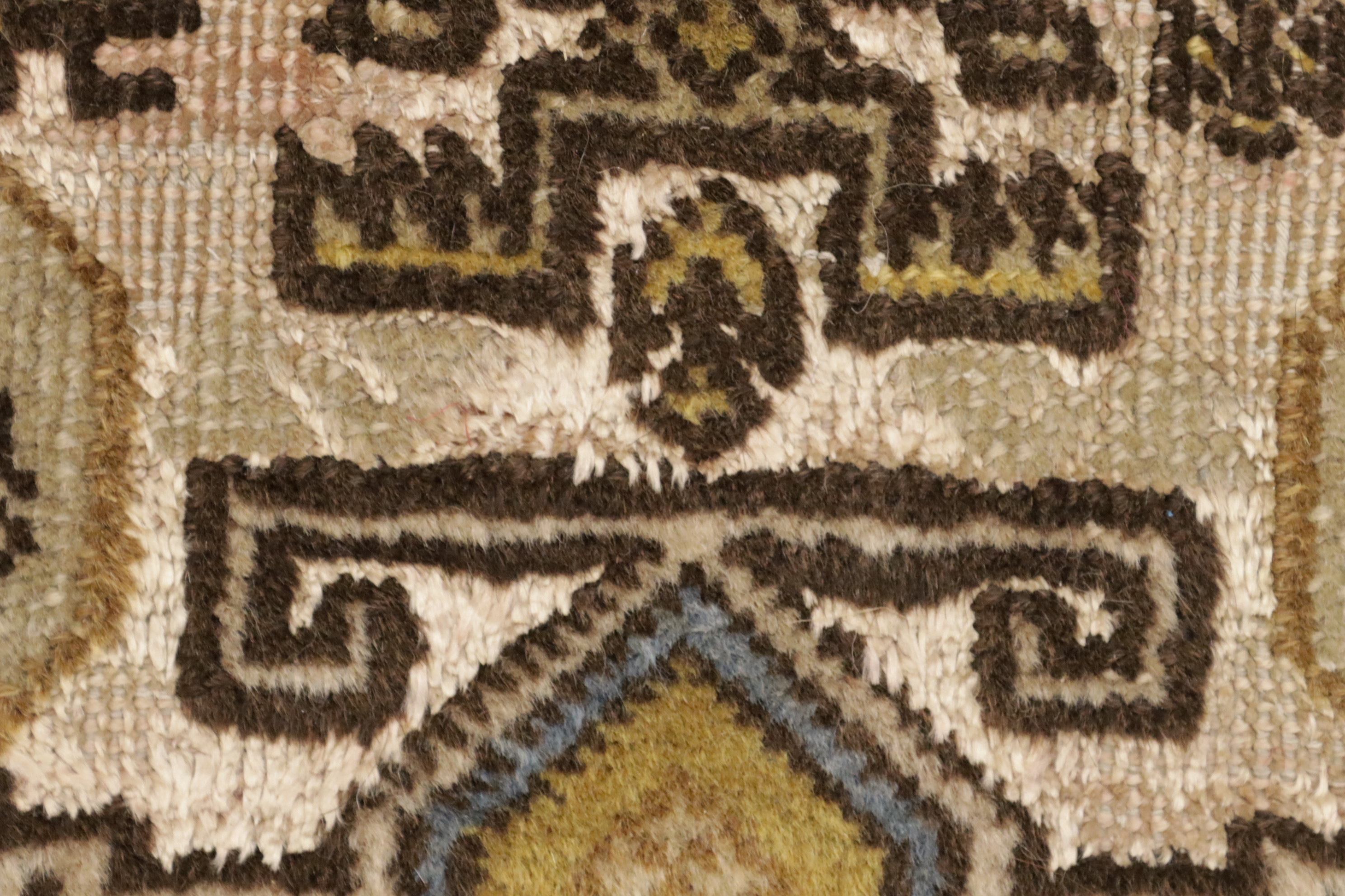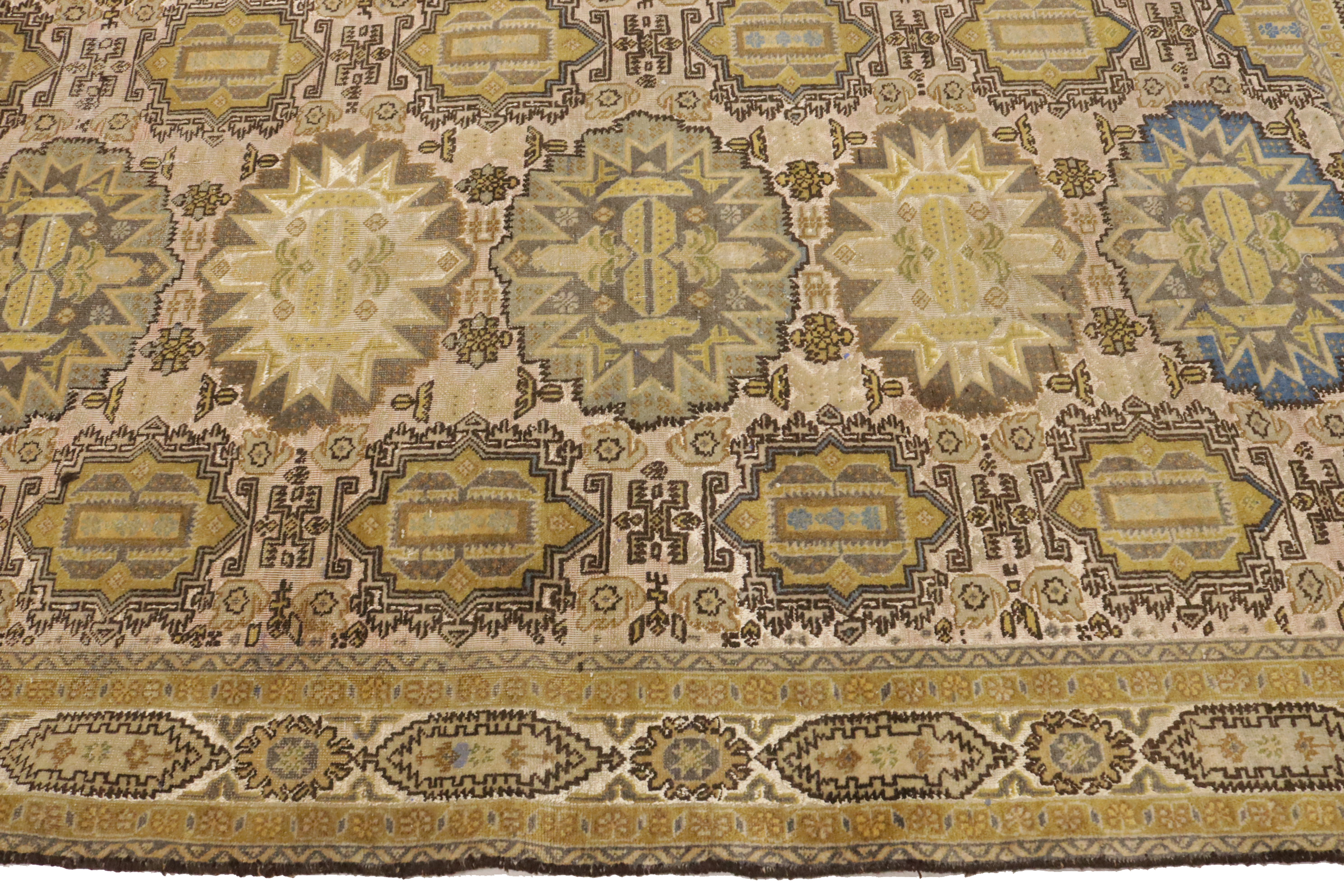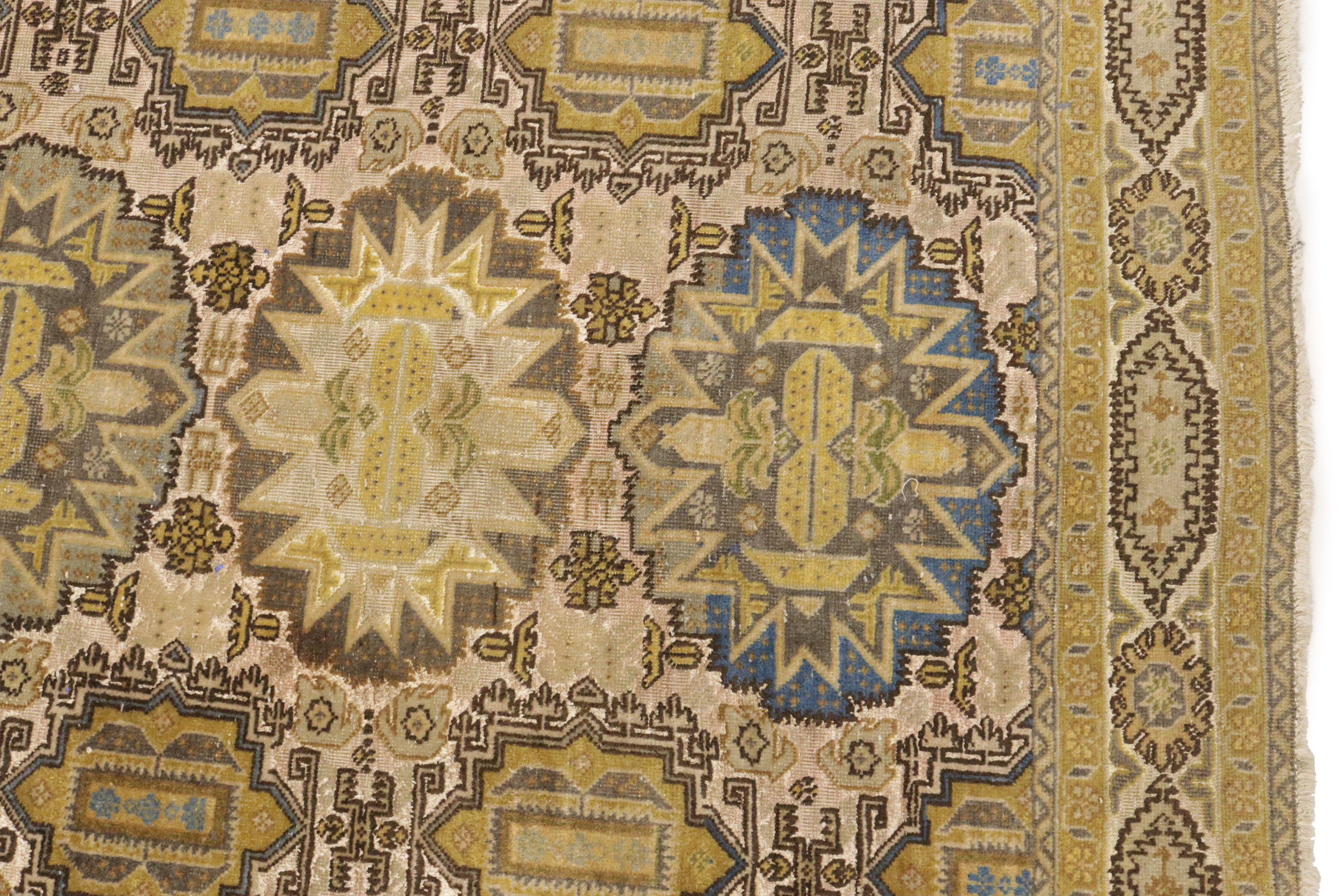 This original 4'0X6'5 cream vintage Persian rug was well-constructed by the hands of master weavers motivated by a variety of stunning artistic designs, to recreate the aged look of the exceptional piece with a richness of color and developed decorative background field. What set this tribal Oriental area rug from the others are the material and dye used (wool pile and cotton foundation), knot count, ancient designs, fantastic grades, and its regional historical connection: it has deep roots, from the story of the people who produced it to the meaning of the symbols and colors displayed across its canvas that have been praised for centuries. This home décor carpet will be completely cozy and inviting that never will go out of style!
