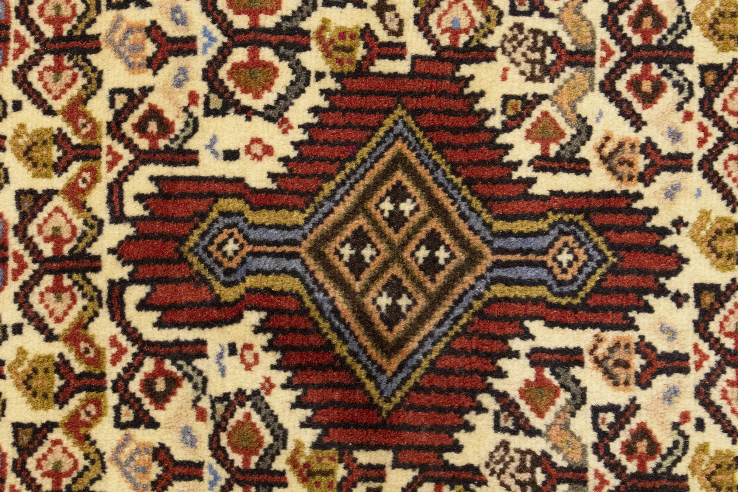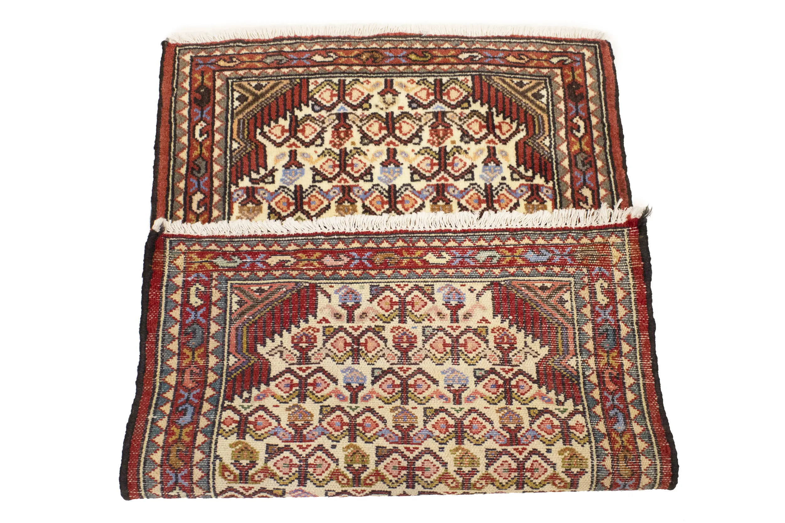 Hand Knotted vintage 2'2X3'5 Cream Persian Rug made with natural dyes (fine wool pile and cotton foundation), superior knot count, and alluring ancient designs. This Oriental runner never will go out of style and would be among your most valuable treasures.