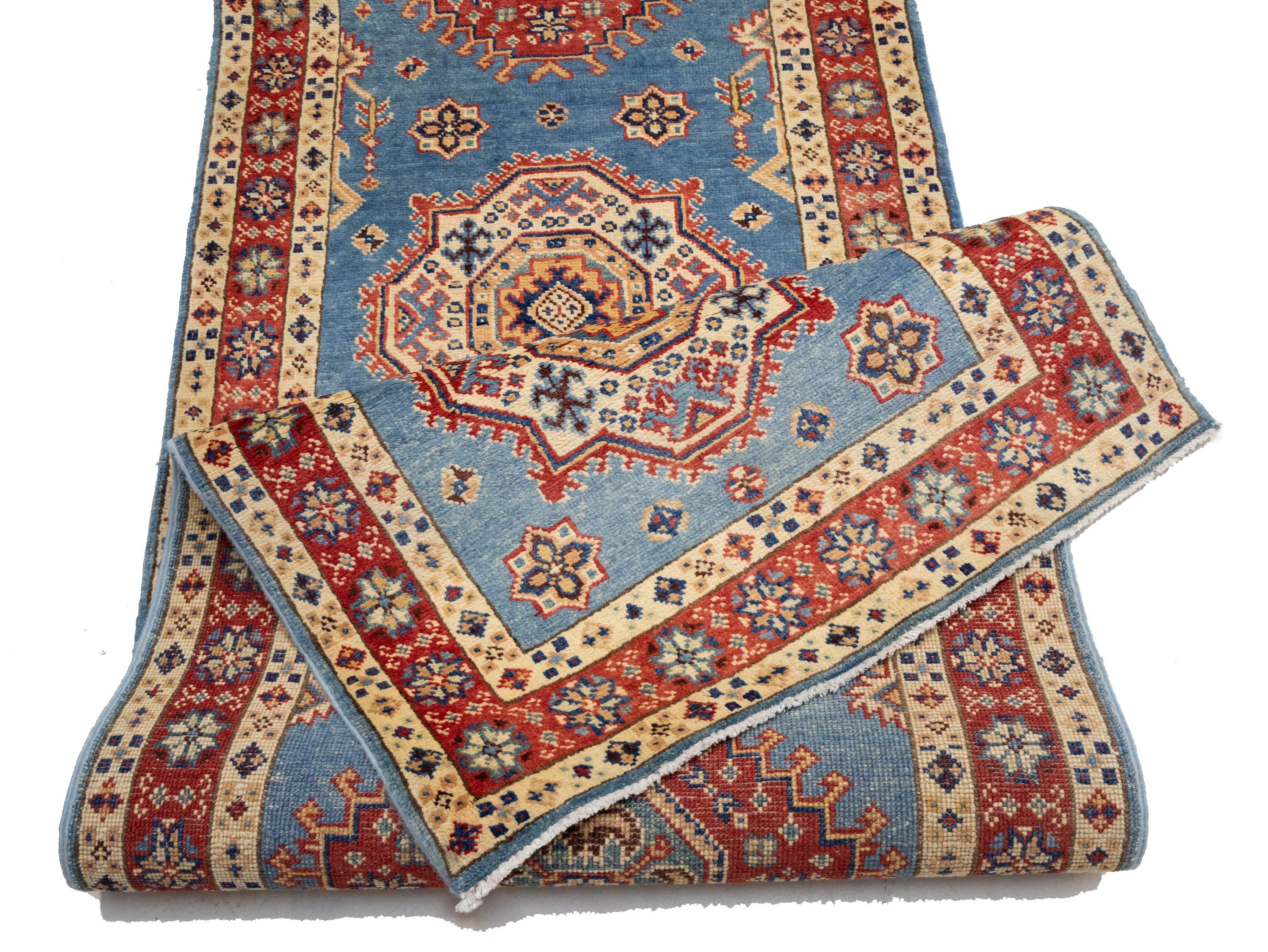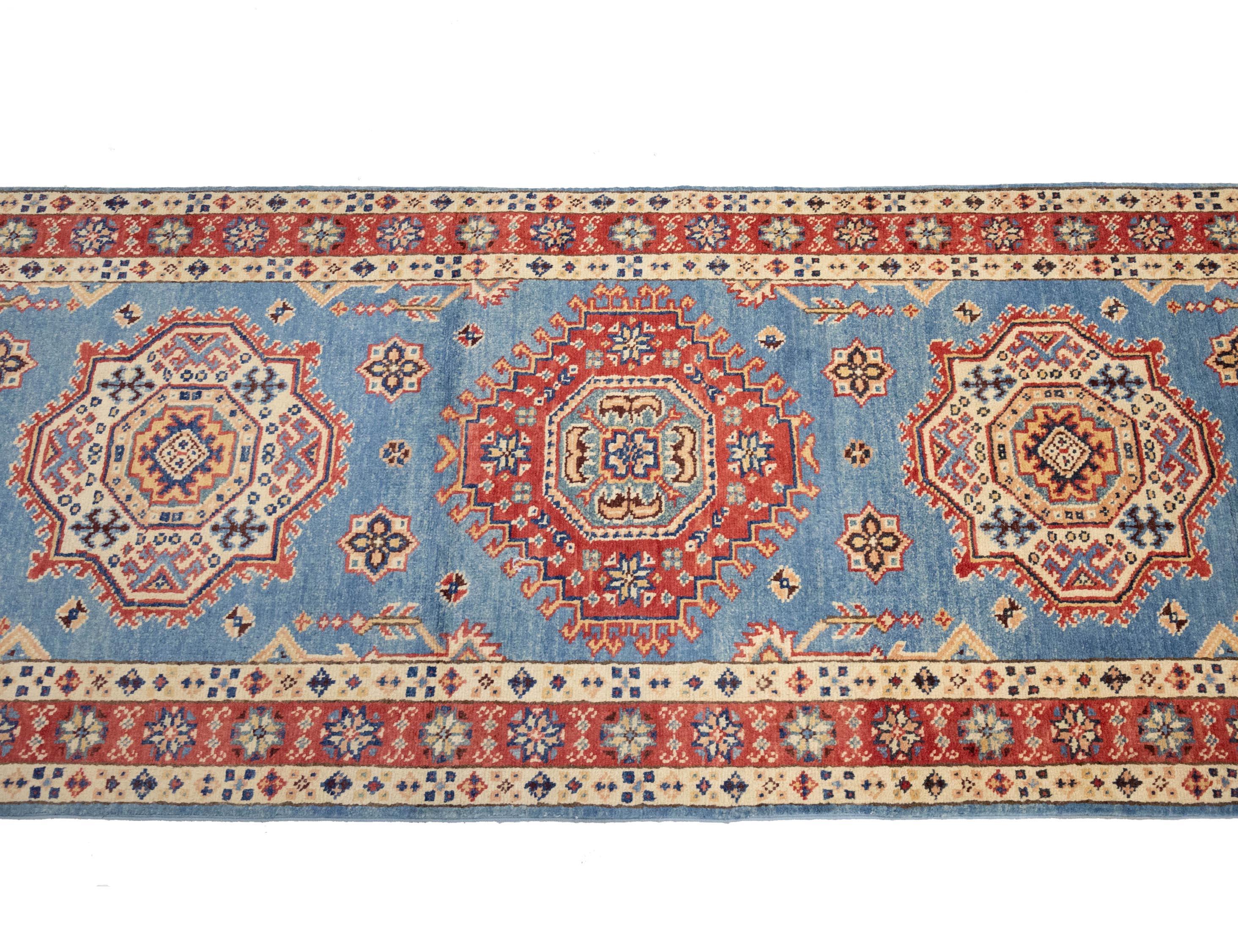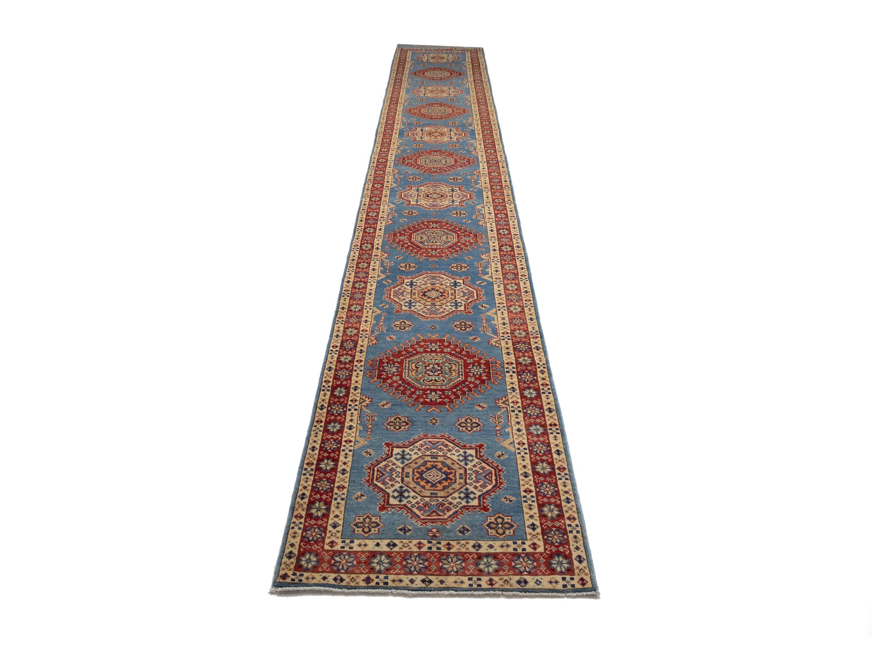 Blue Tribal Geometric 3X21 Kazak Oriental Runner Rug