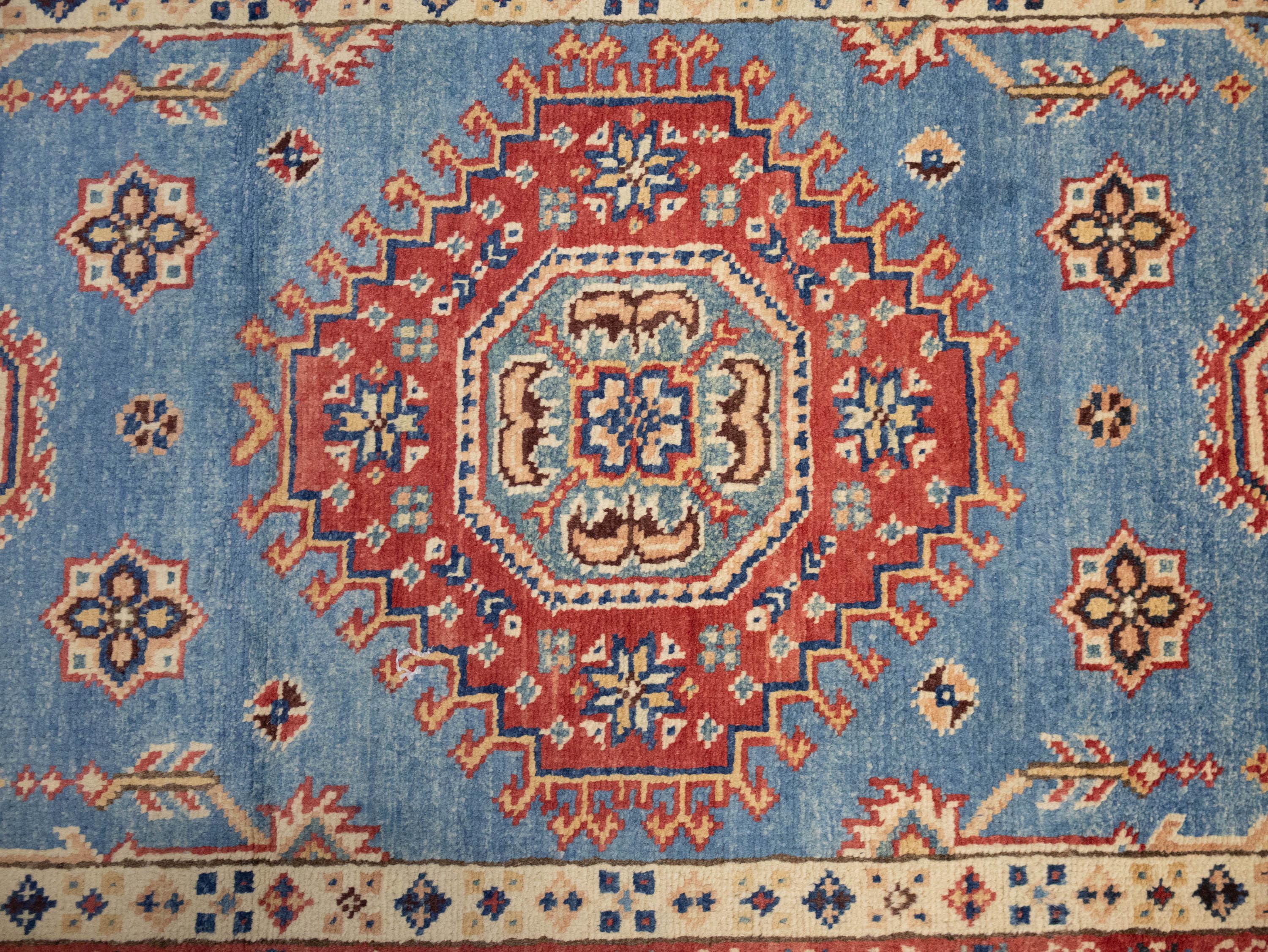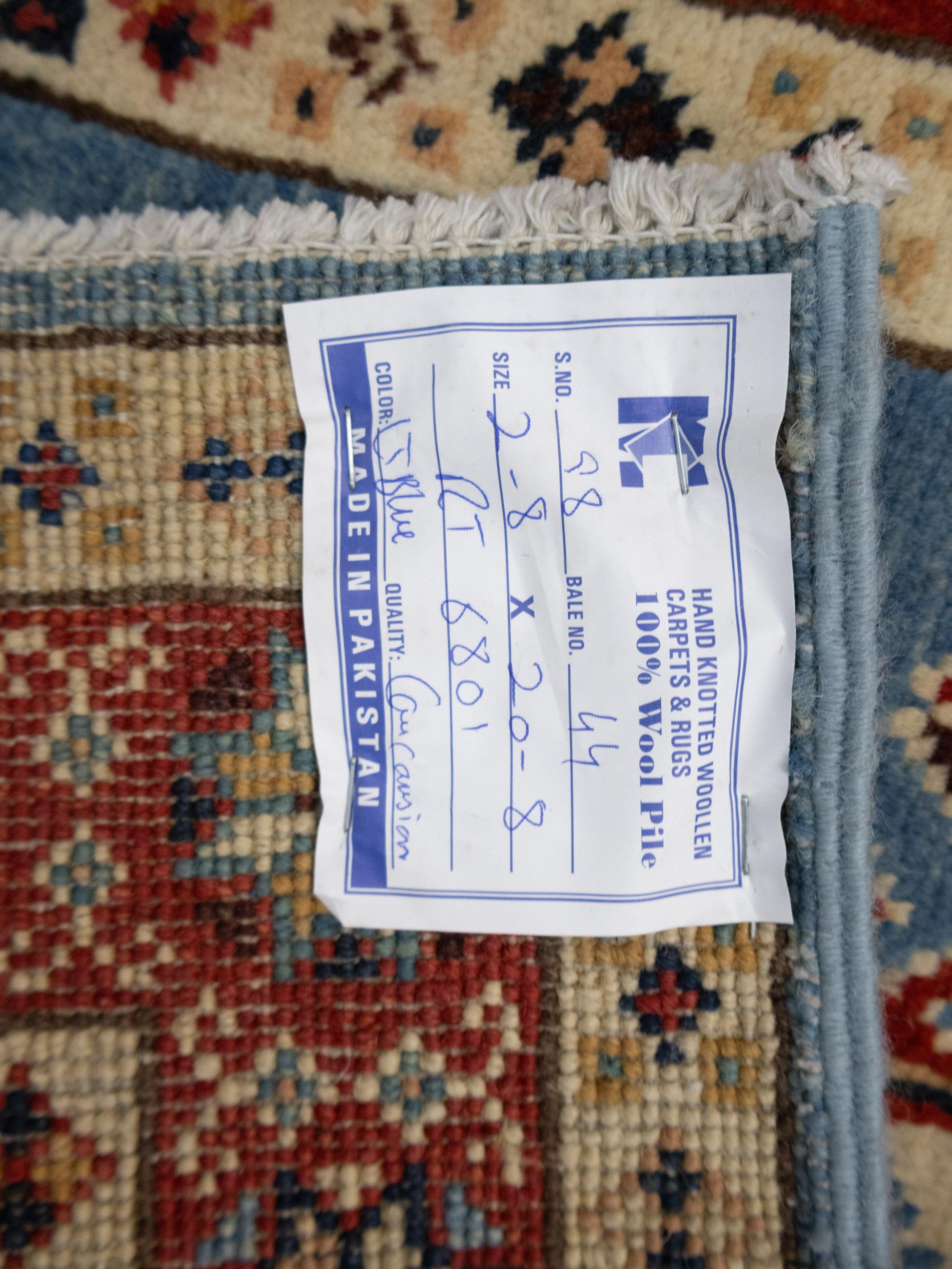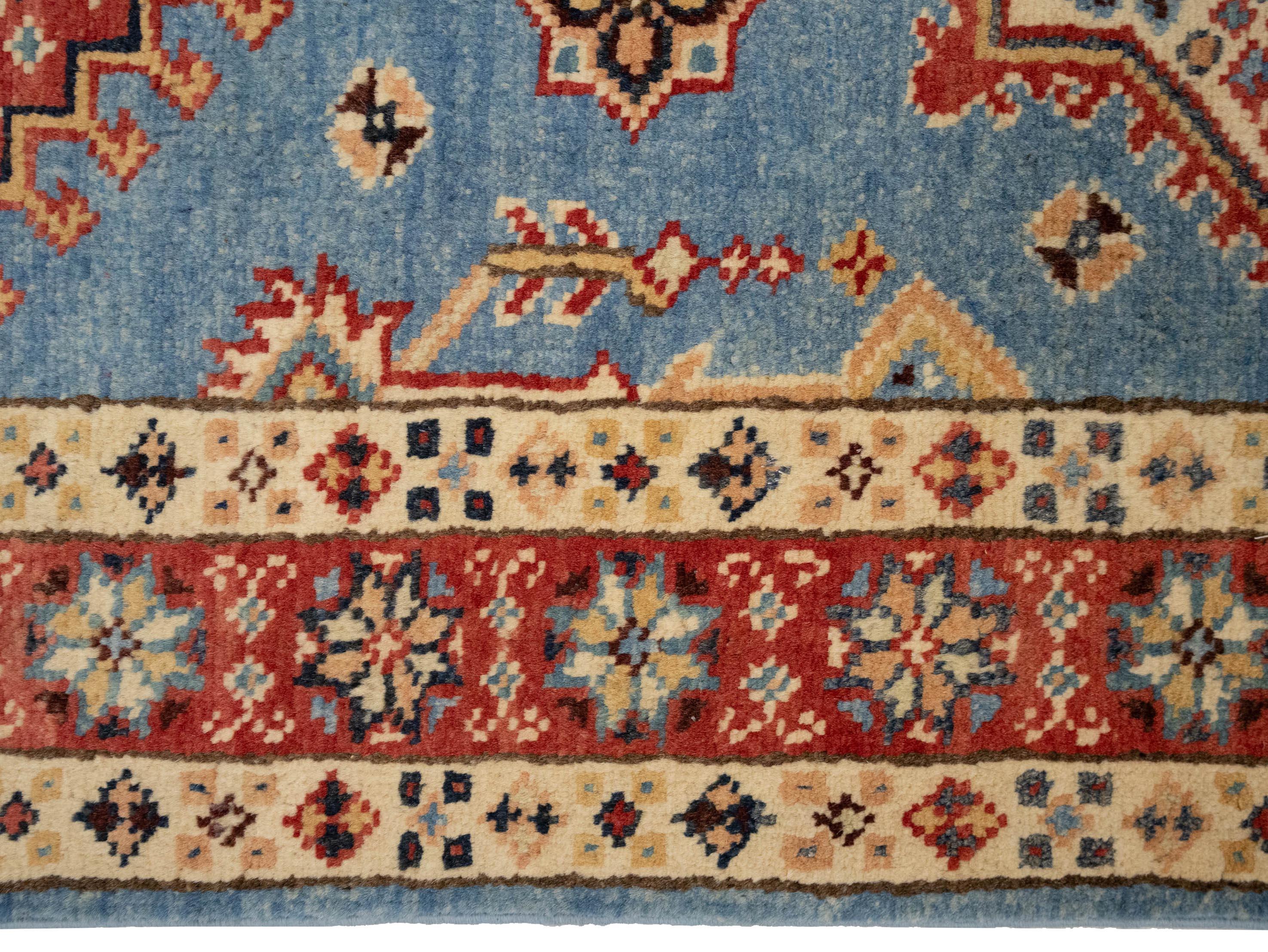 Blue Tribal Geometric 3X21 Kazak Oriental Runner Rug