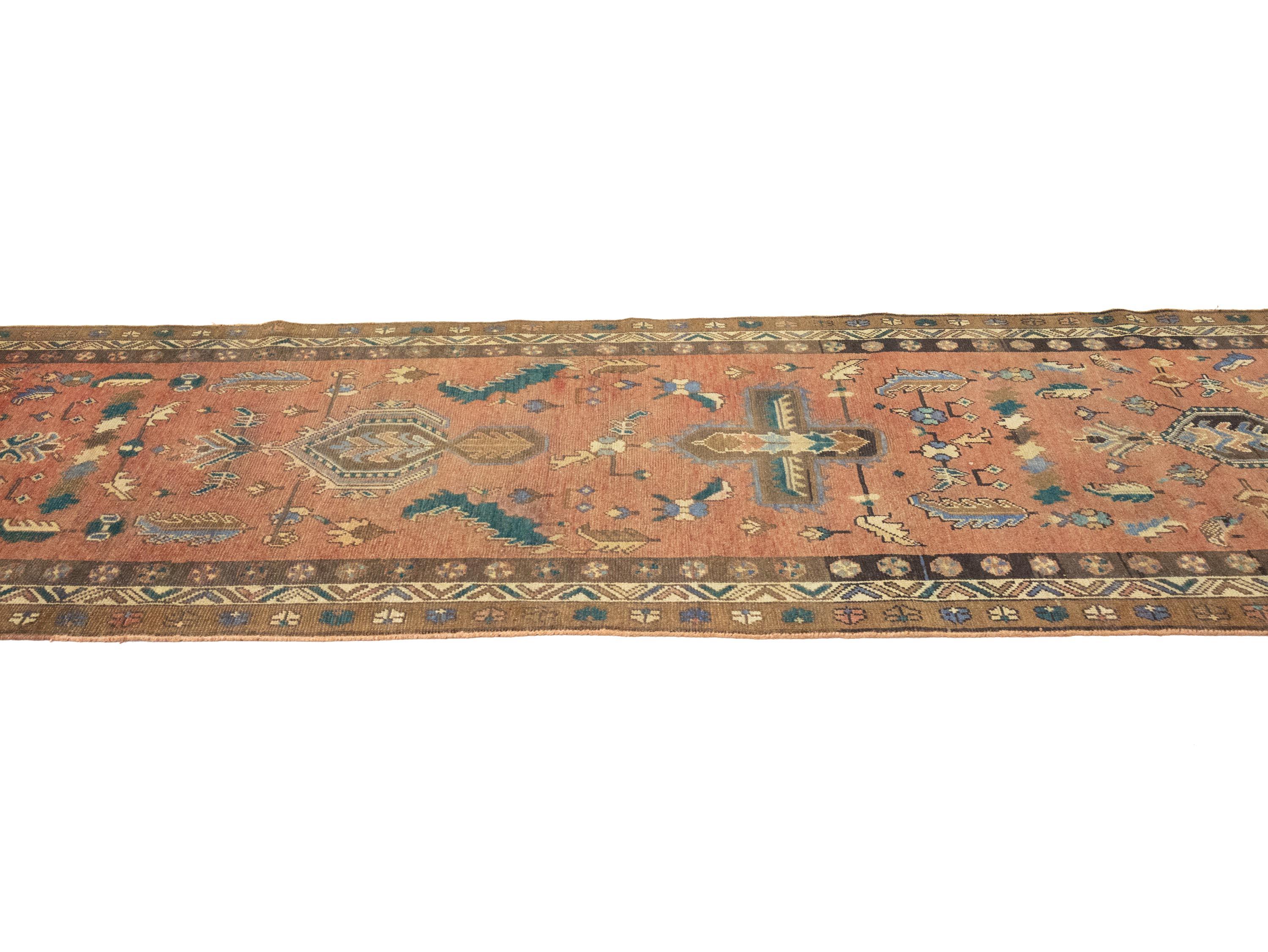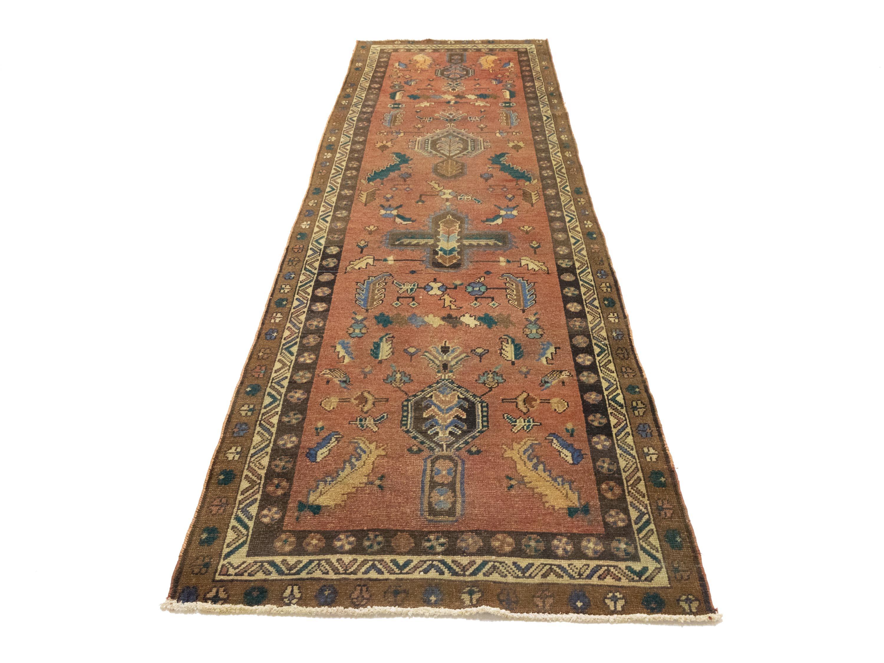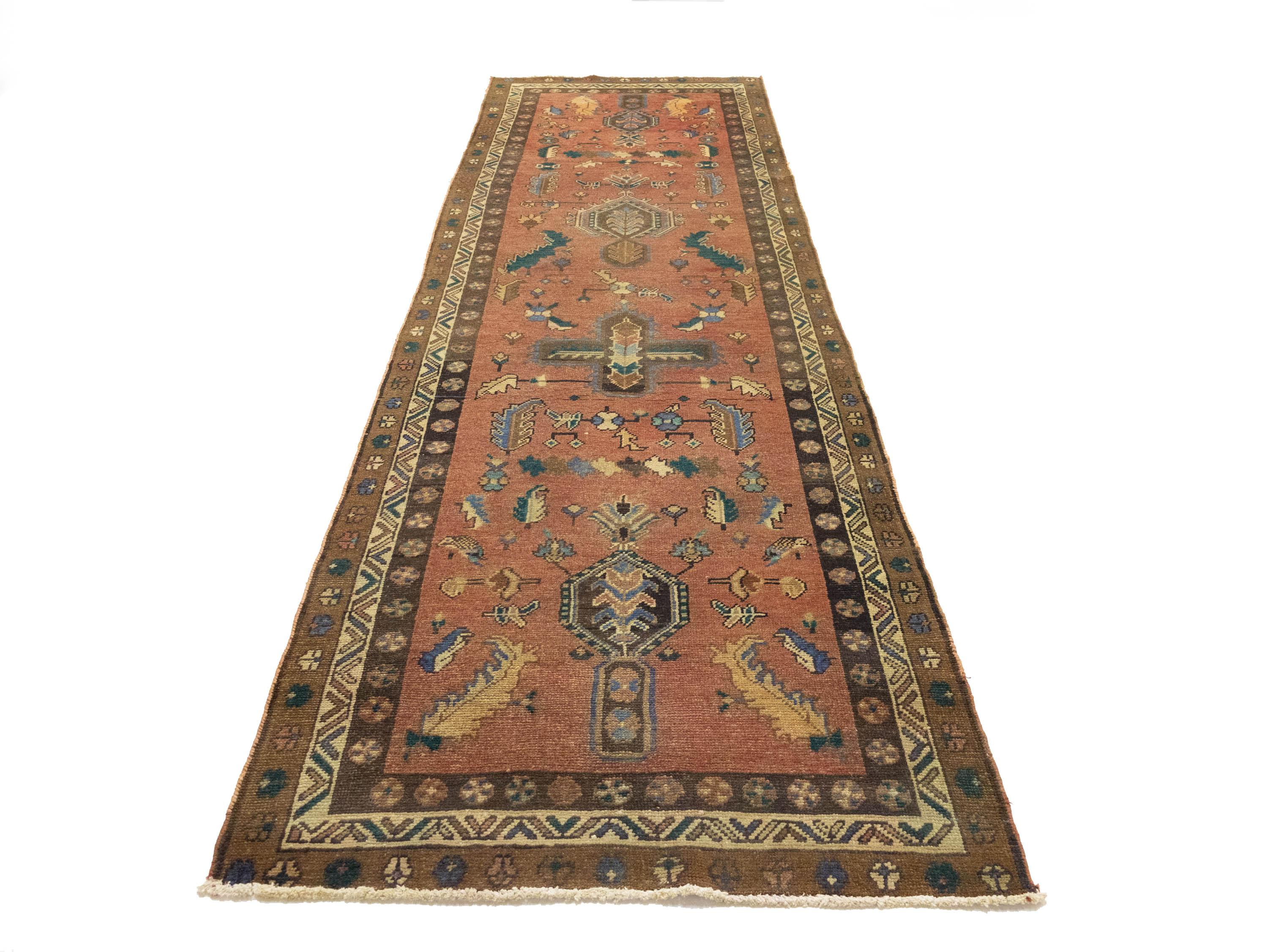 - Hand-knotted in +Persia with fine craftsmanship, semi-antique tribal hallway runner