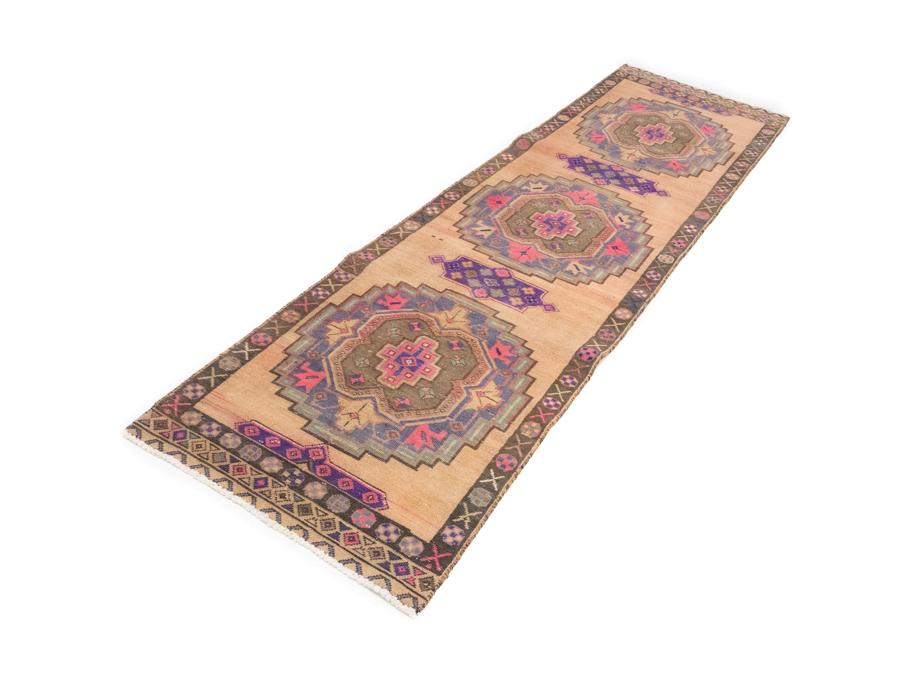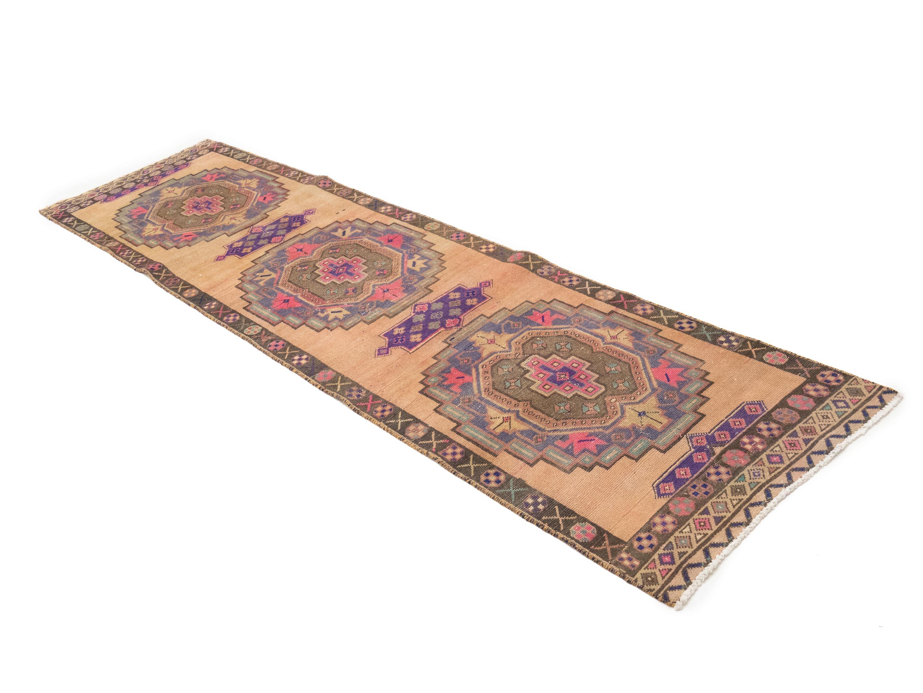 This original 3X10 muted colors vintage Persian runner was crafted by the hands of skilled weavers enthused by a variety of lovely artistic designs, to recreate the aged look of the unique piece with a richness of color and beautifully elaborated background field. What set this tribal Oriental area runner from the others are the material and dye used (wool pile and cotton foundation), knot count, ancient designs, fantastic grades, and its regional historical connection: it has deep roots, from the story of the people who produced it to the meaning of the symbols and colors displayed across its canvas that have been praised for centuries. This home décor carpet will be completely cozy and inviting that never will go out of style! Also, this Oriental runner would be among your most valuable treasures, it is a great investment that increase in value over time, and it will last for generations because was woven with high-quality, all-natural wool; it won’t rip, tear, or shed. Environmentally friendly, opulent yet affordable; this Persian rug will give you a thorough amount of character to help define your living space with sophistication and warmth that will capture the eyes and attention of your audience (homeowners, designers, decorators, family and friends). RT-6900