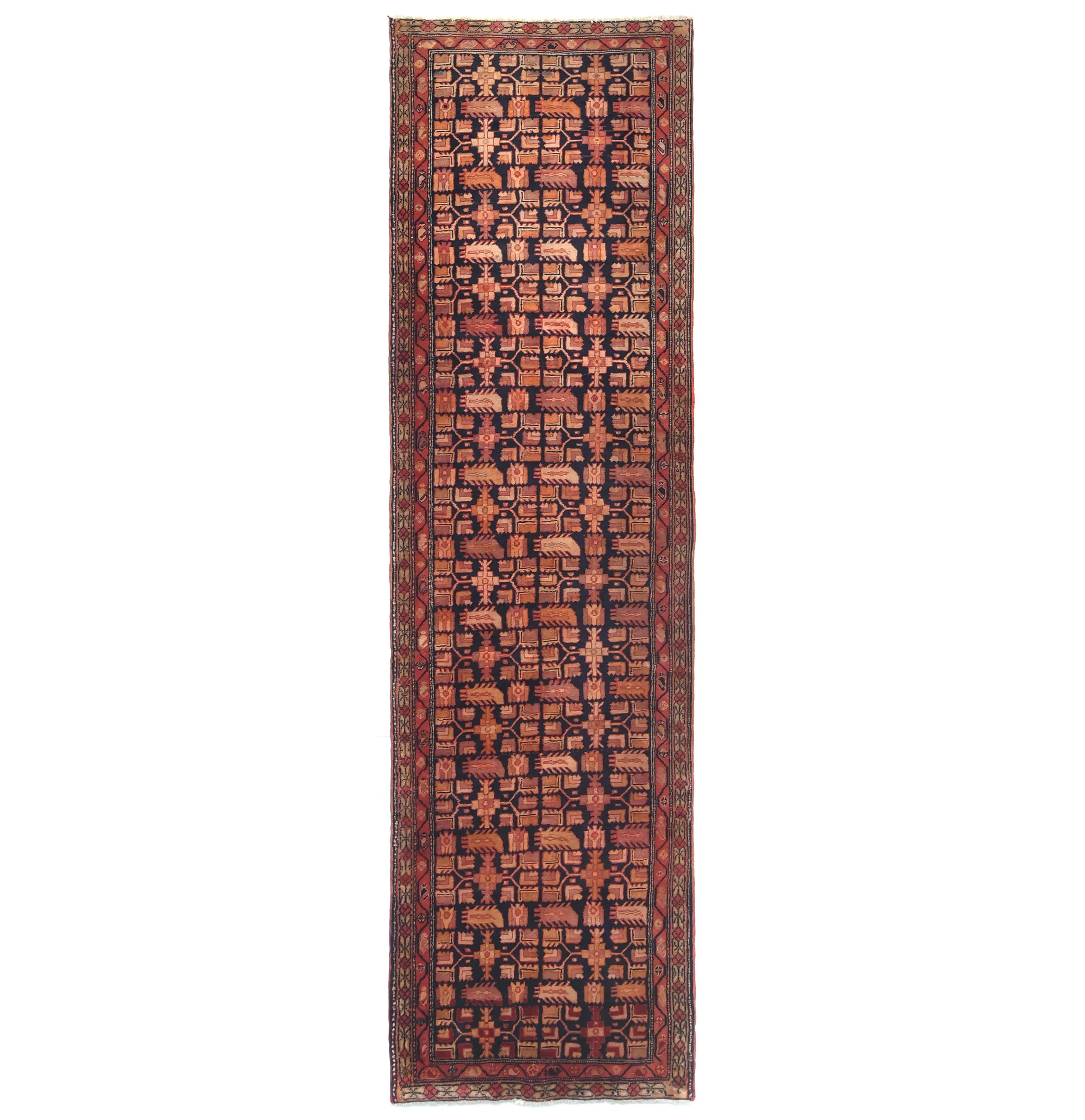Vintage Plum Allover Tribal 3x10 Hamedan Persian Rug