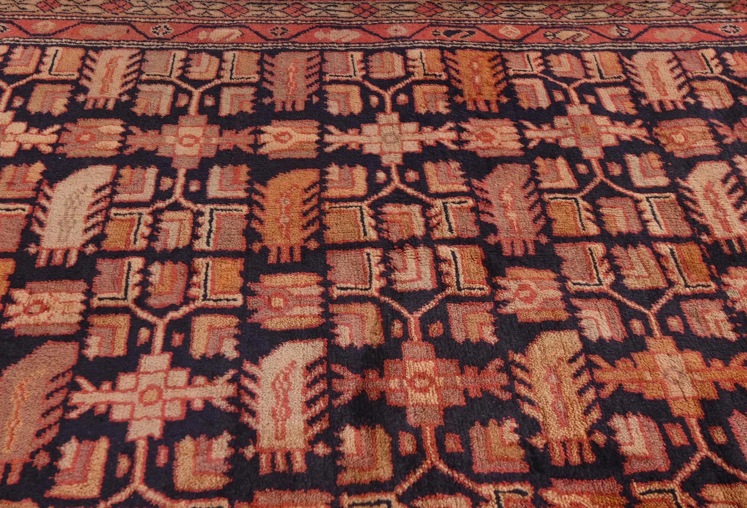 This original 3x10 Plum vintage Persian rug was crafted by the hands of skilled weavers enthused by a variety of lovely artistic designs, to recreate the aged look of the unique piece with a richness of color and beautifully elaborated background field. What set this tribal Oriental area rug from the others are the material and dye used (wool pile and cotton foundation), knot count, ancient designs, fantastic grades, and its regional historical connection: it has deep roots, from the story of the people who produced it to the meaning of the symbols and colors displayed across its canvas that have been praised for centuries. This home décor carpet will be completely cozy and inviting that never will go out of style! Also, this Oriental rug would be among your most valuable treasures, it is a great investment that increase in value over time, and it will last for generations because was woven with high-quality, all-natural wool; it won’t rip, tear, or shed. Environmentally friendly, opulent yet affordable; this Persian rug will give you a thorough amount of character to help define your living space with sophistication and warmth that will capture the eyes and attention of your audience (homeowners, designers, decorators, family and friends). RT-7048