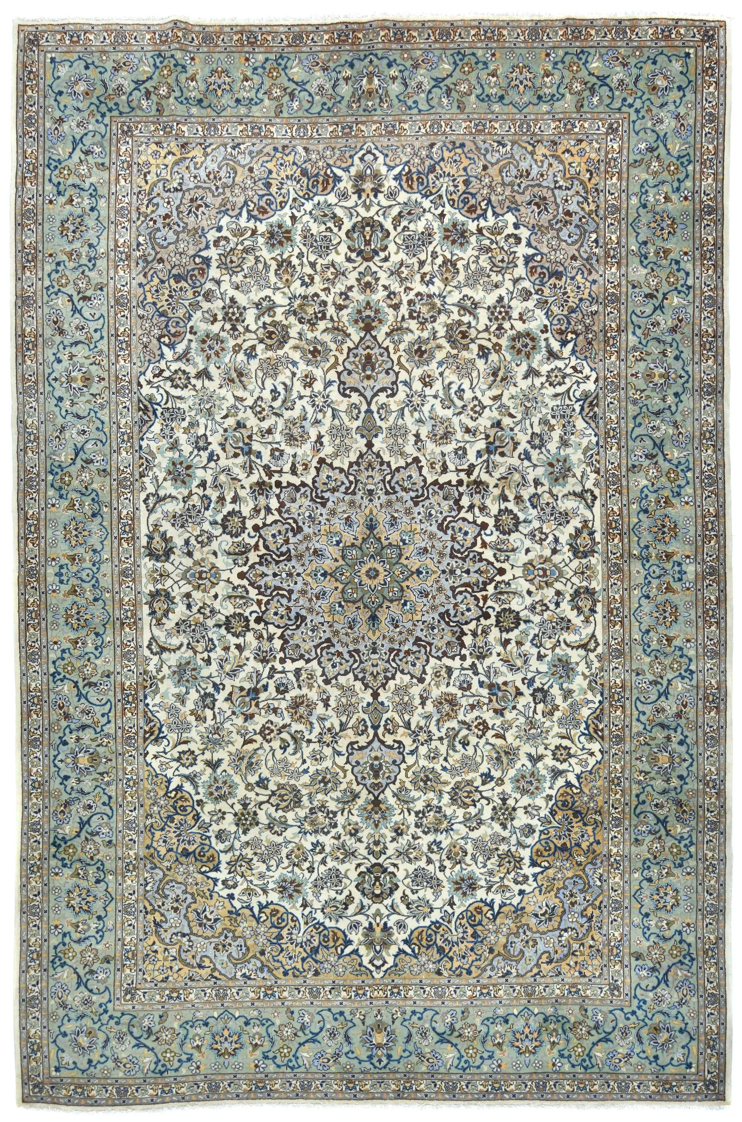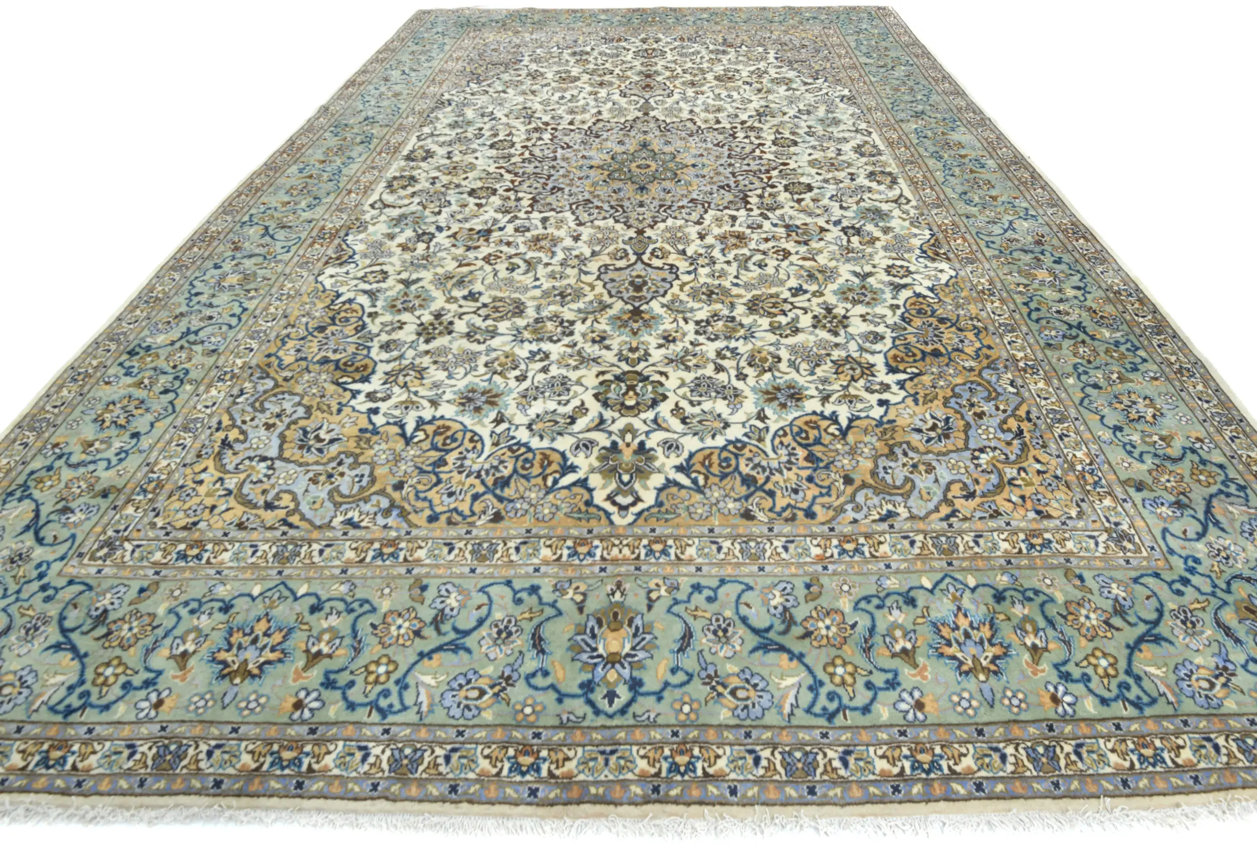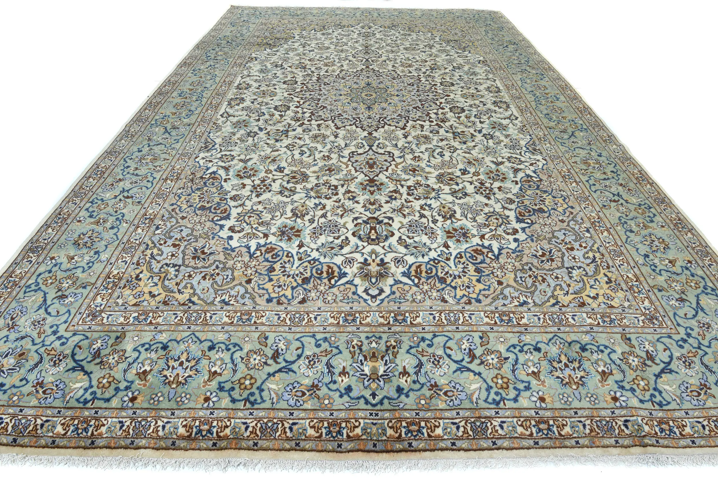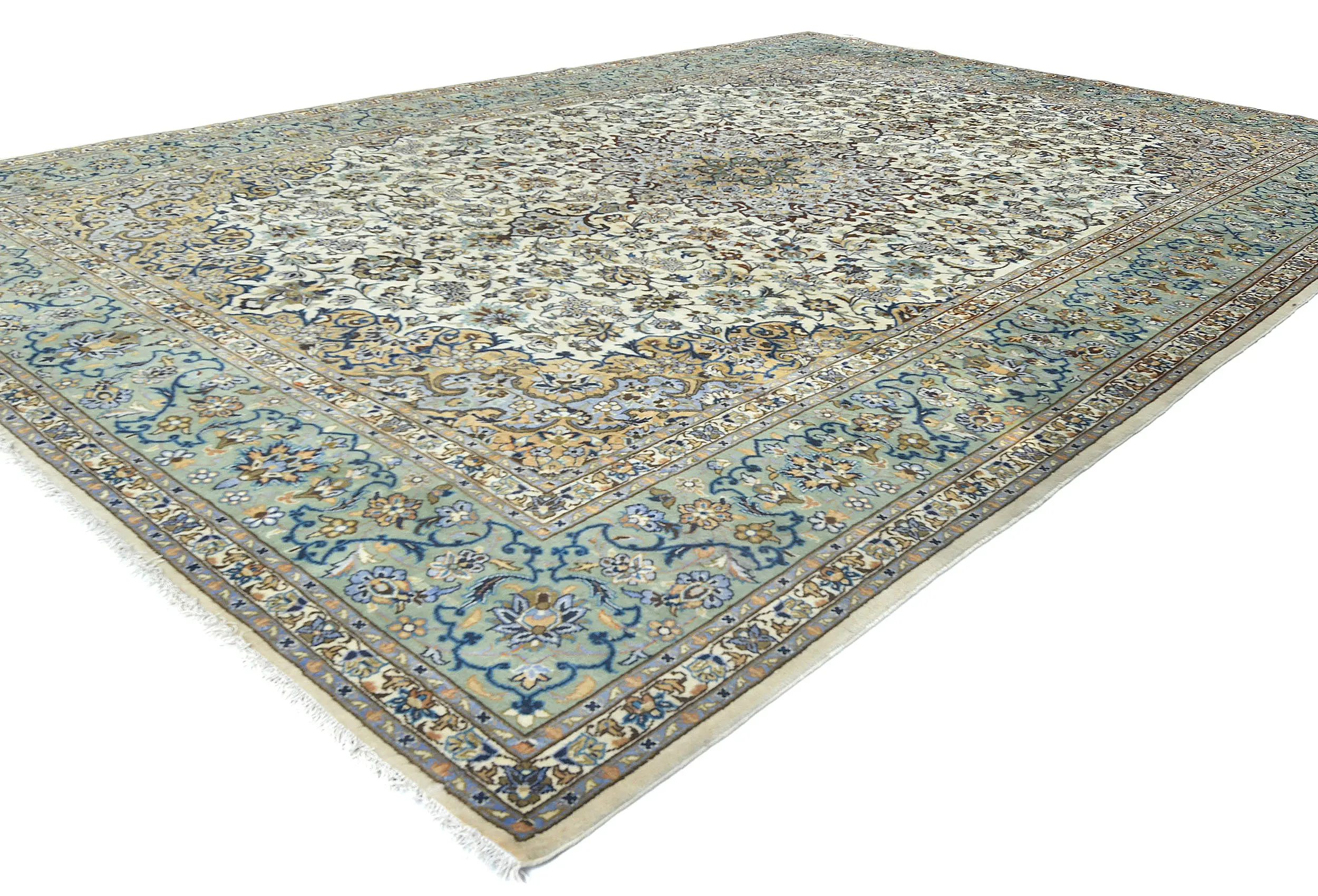 Semi Antique Cream Floral Traditional 12x16 Kashan Persian Oriental Rug