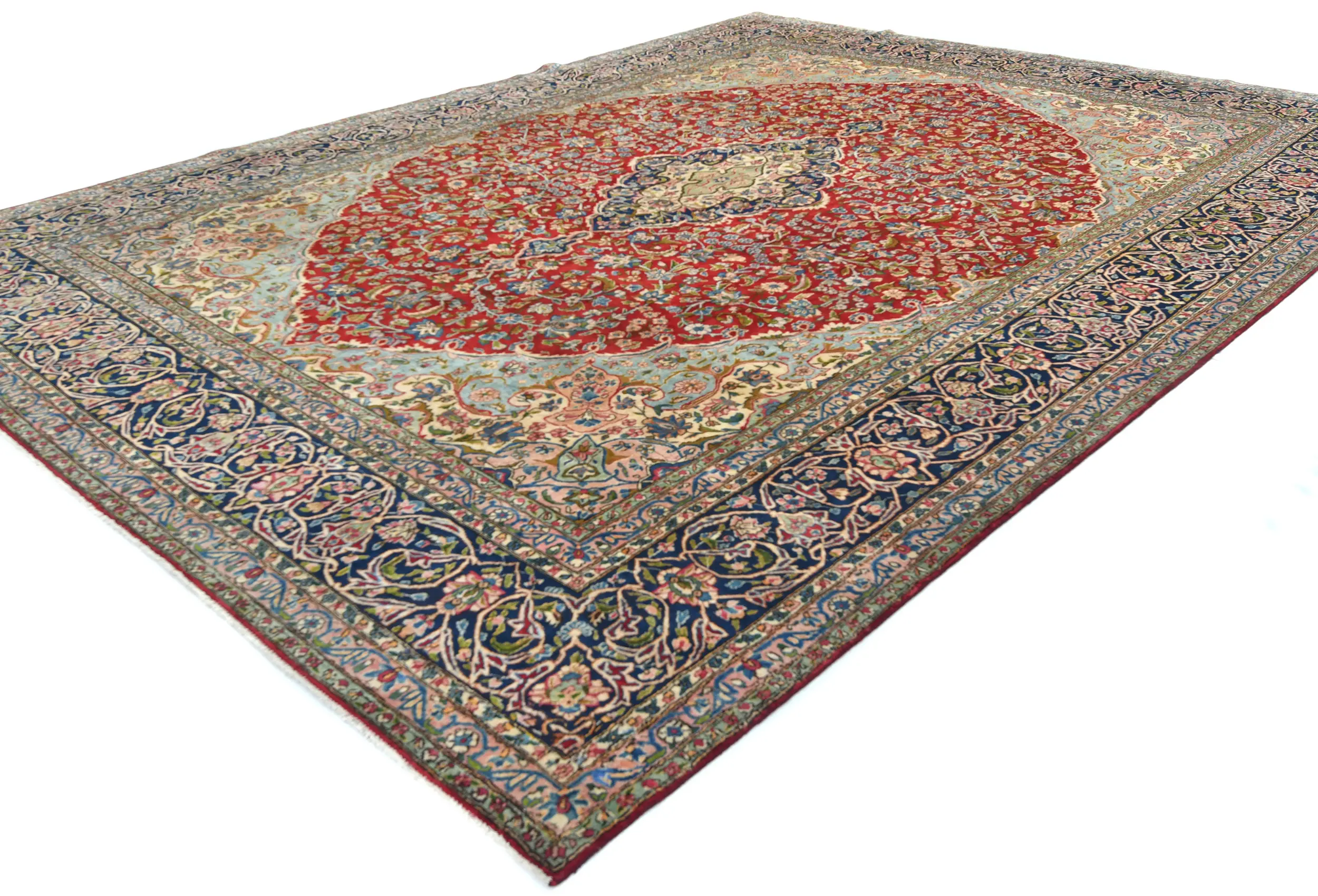 Vintage Red Traditional Floral 10x13 Kerman Persian Rug