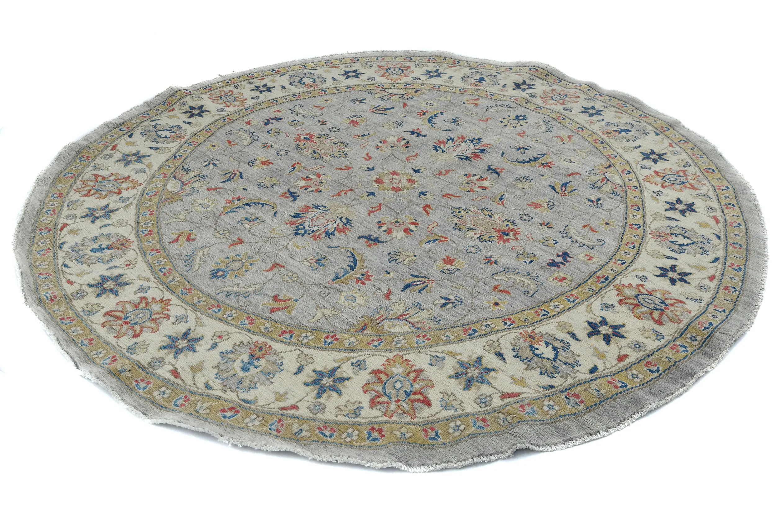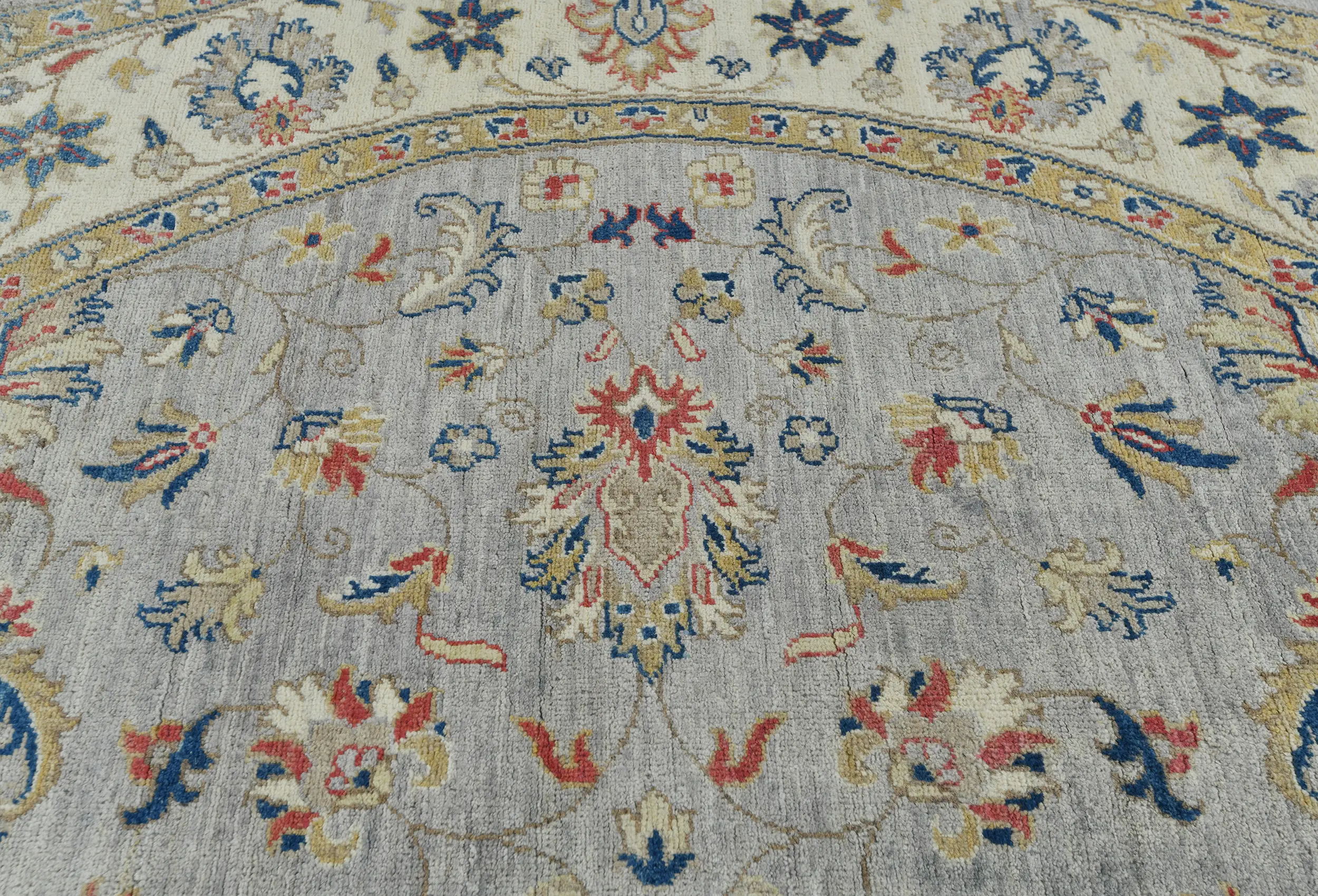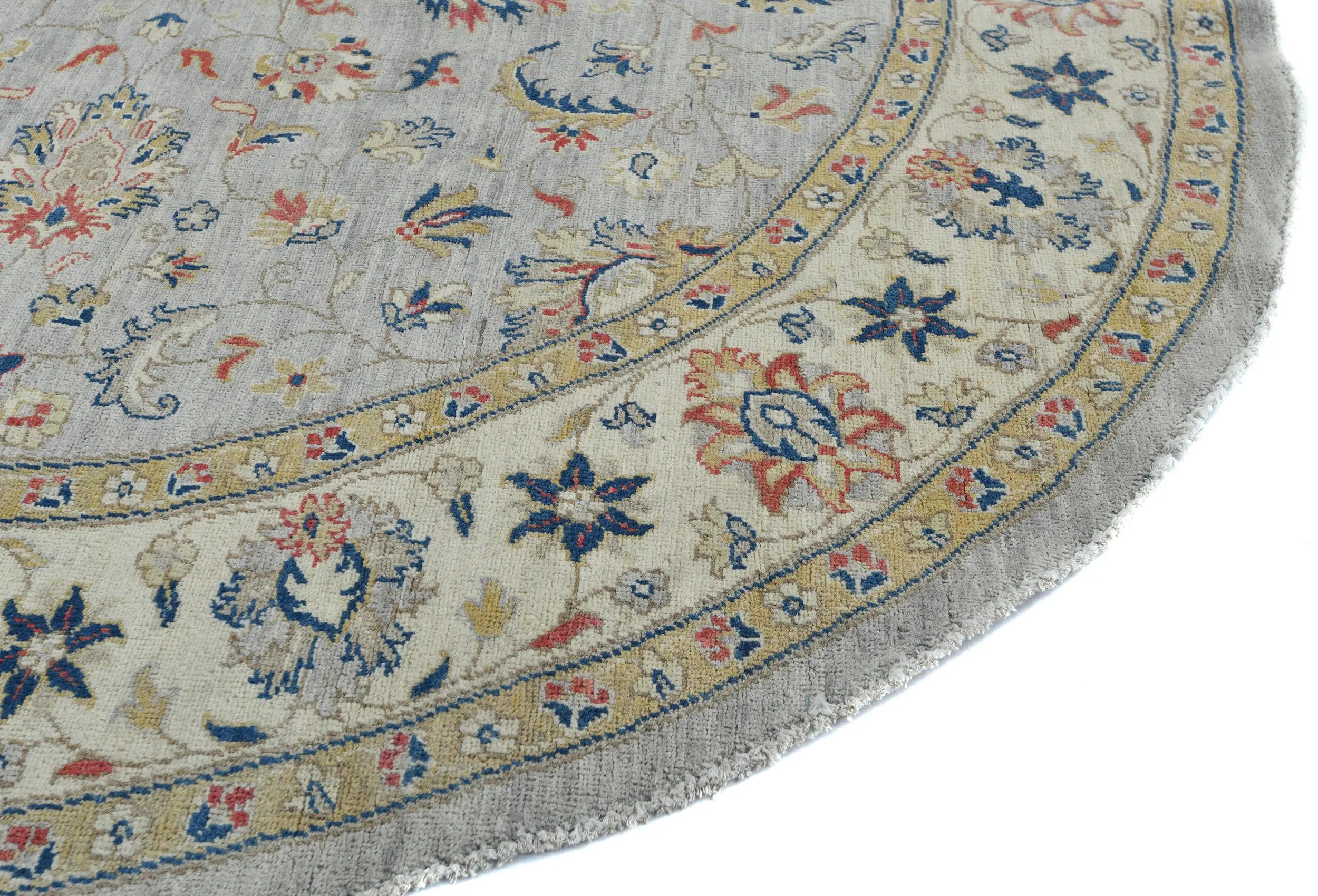 Gray Floral Transitional 6'4 X 6'6 Oushak Oriental Round Rug
