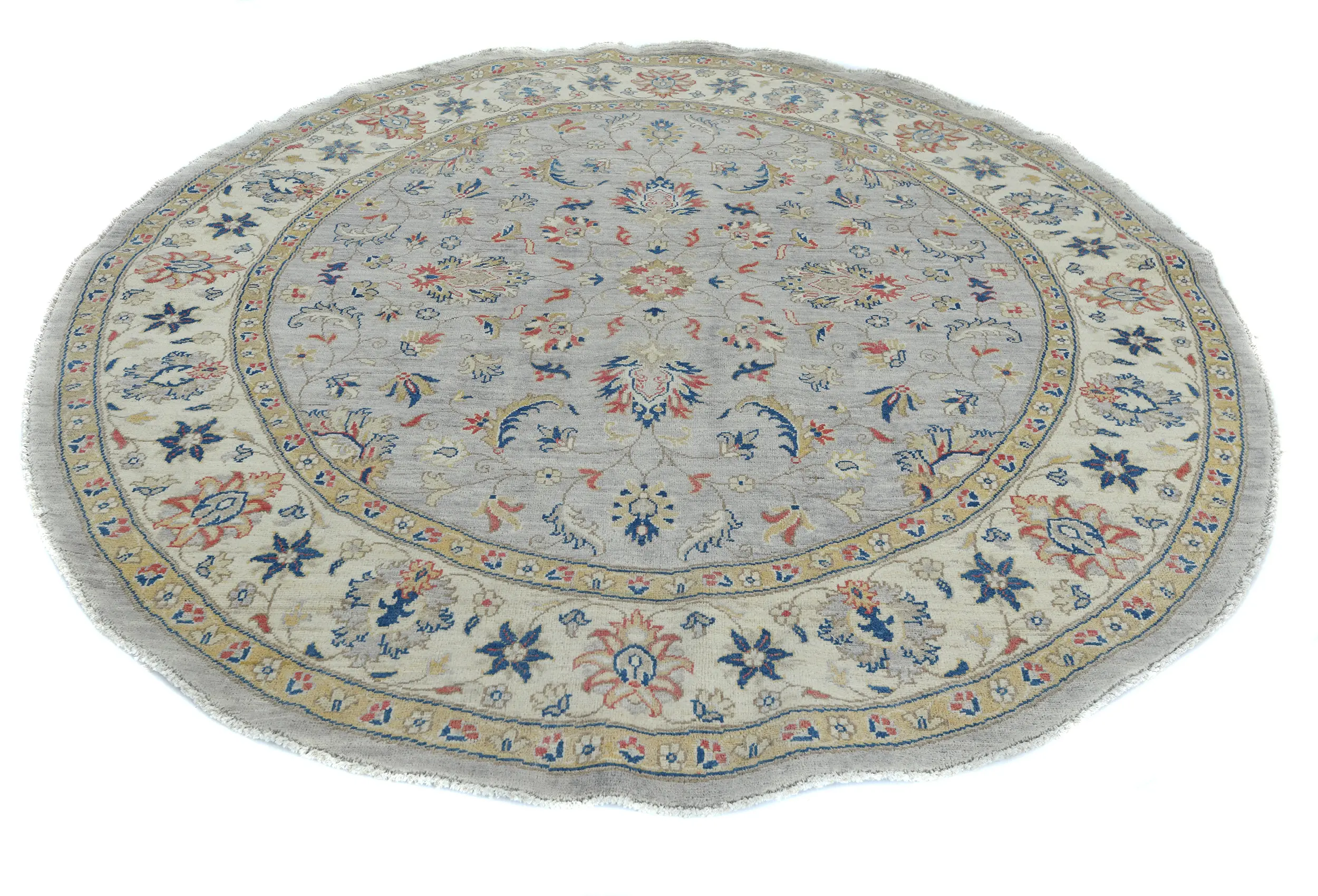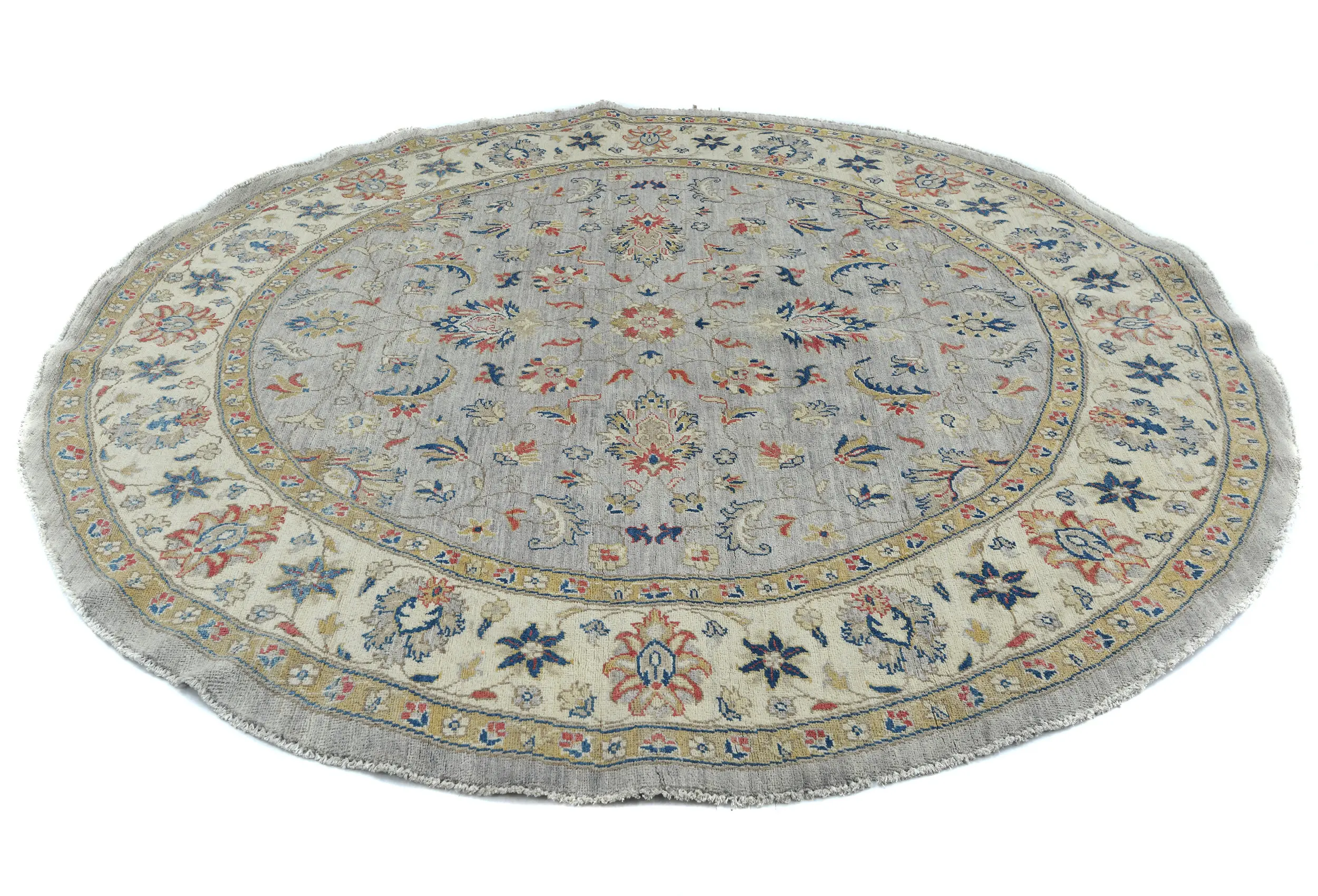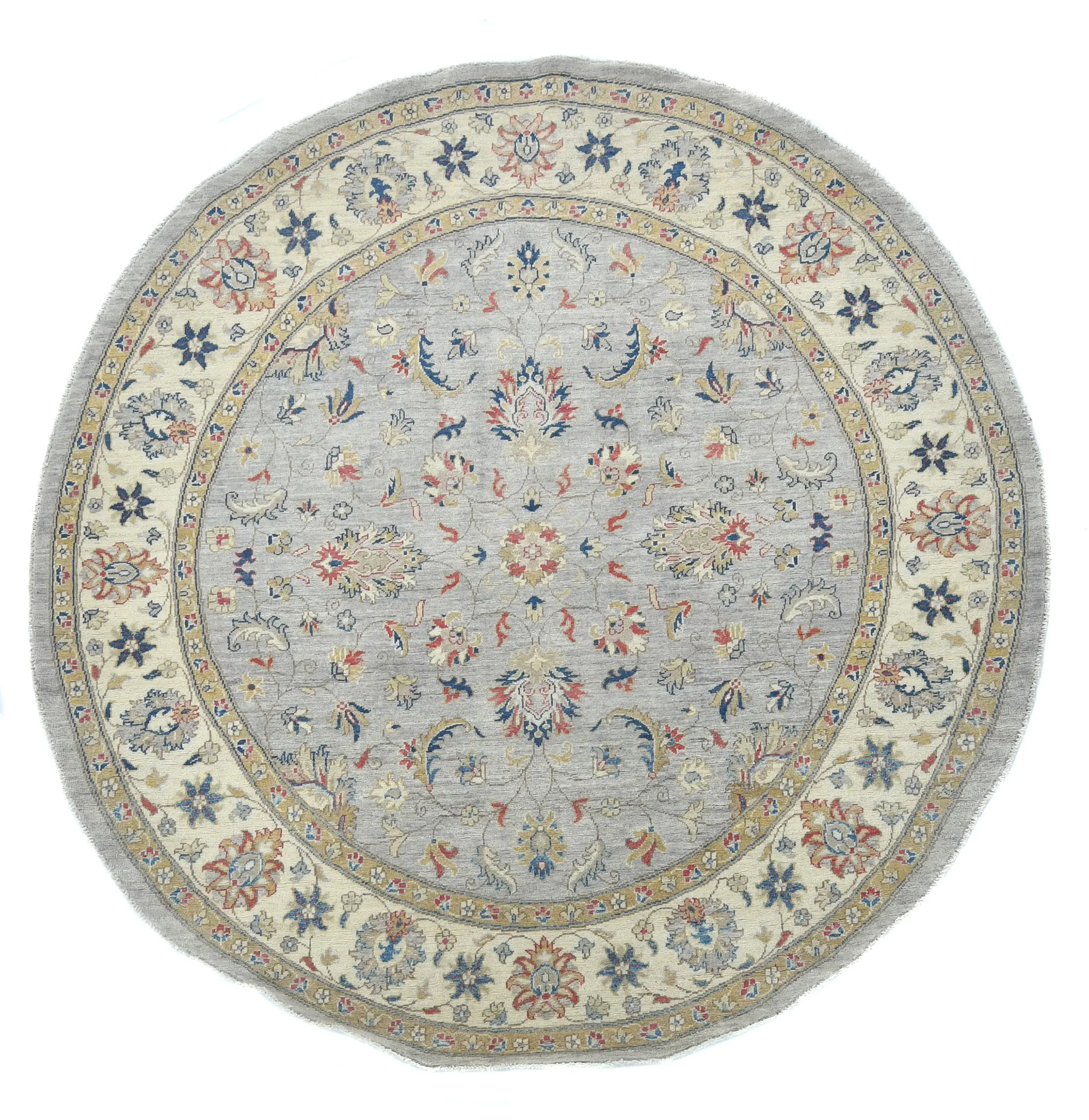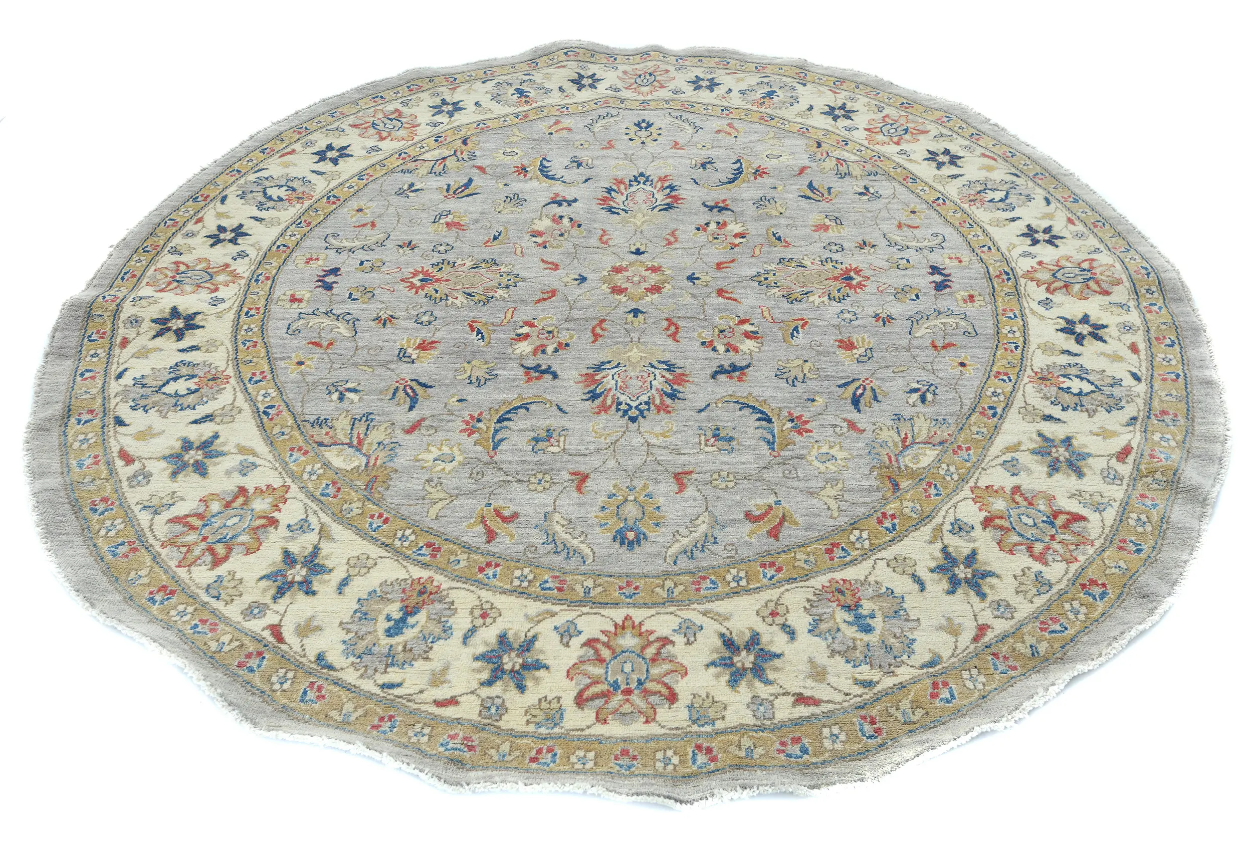 Gray Floral Transitional 6'4 X 6'6 Oushak Oriental Round Rug