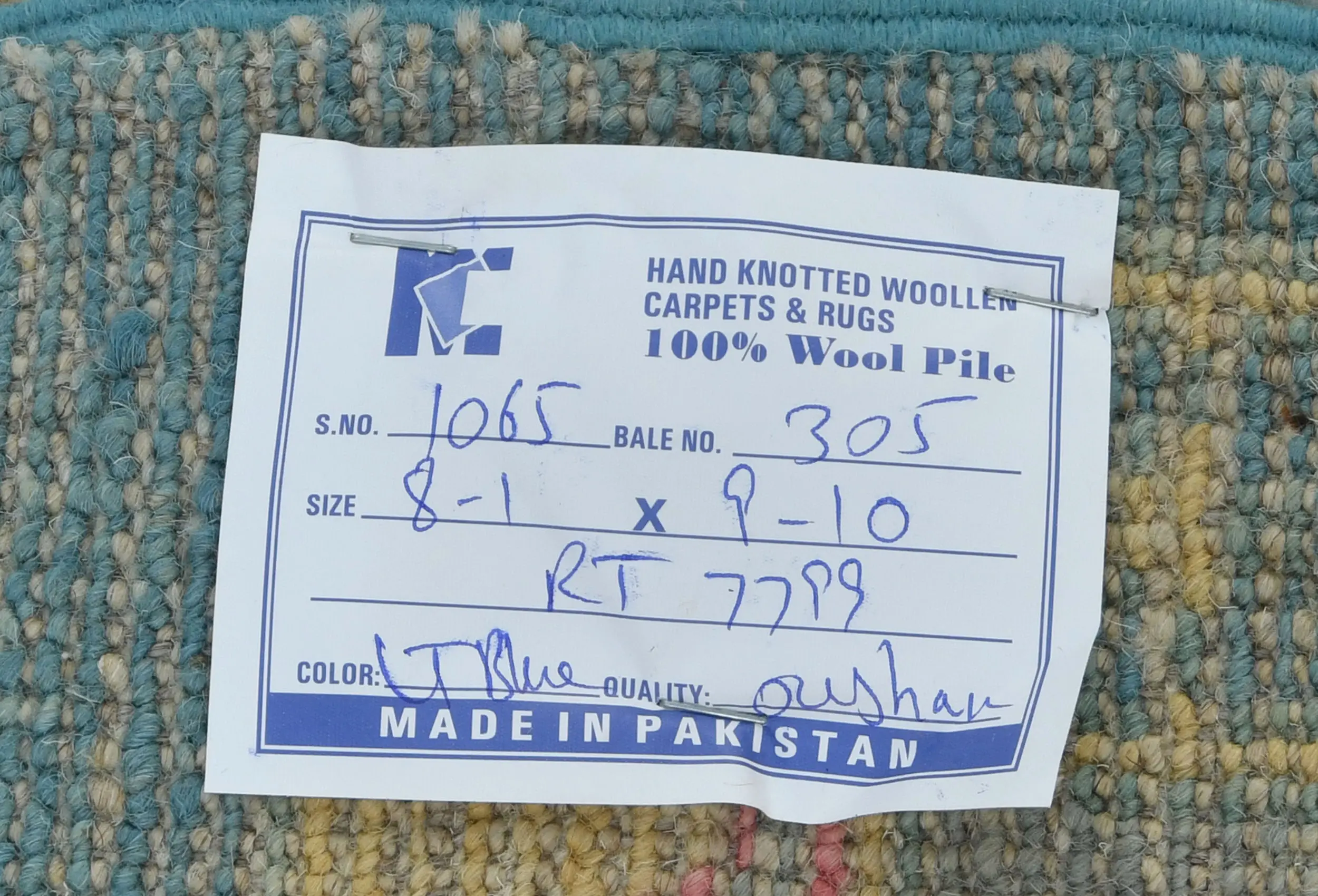 Hand Knotted 8X10 light blue oriental rug made with natural dyes (fine wool pile and cotton foundation), superior knot count, and alluring ancient designs. This Oriental rug never will go out of style and would be among your most valuable treasures.