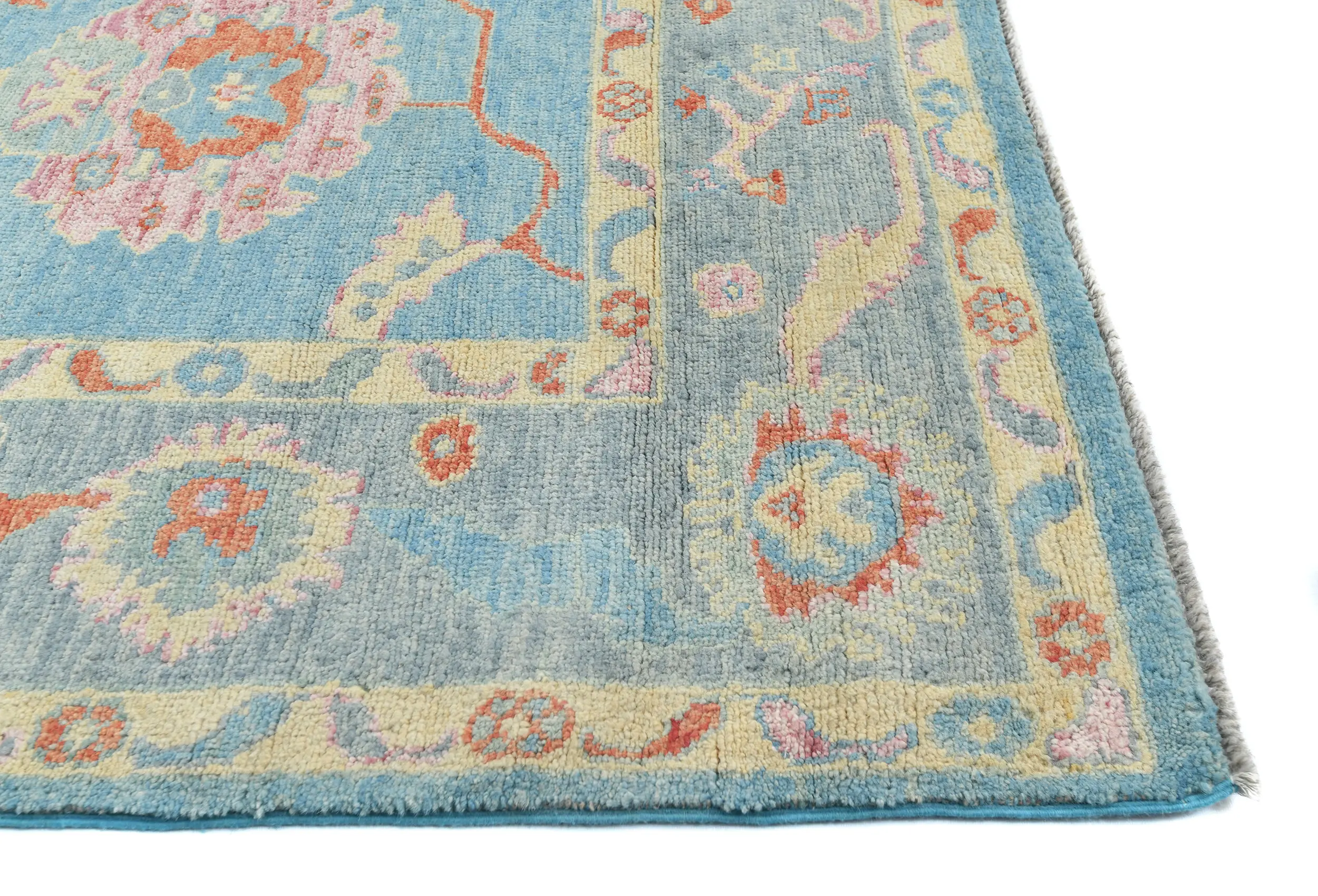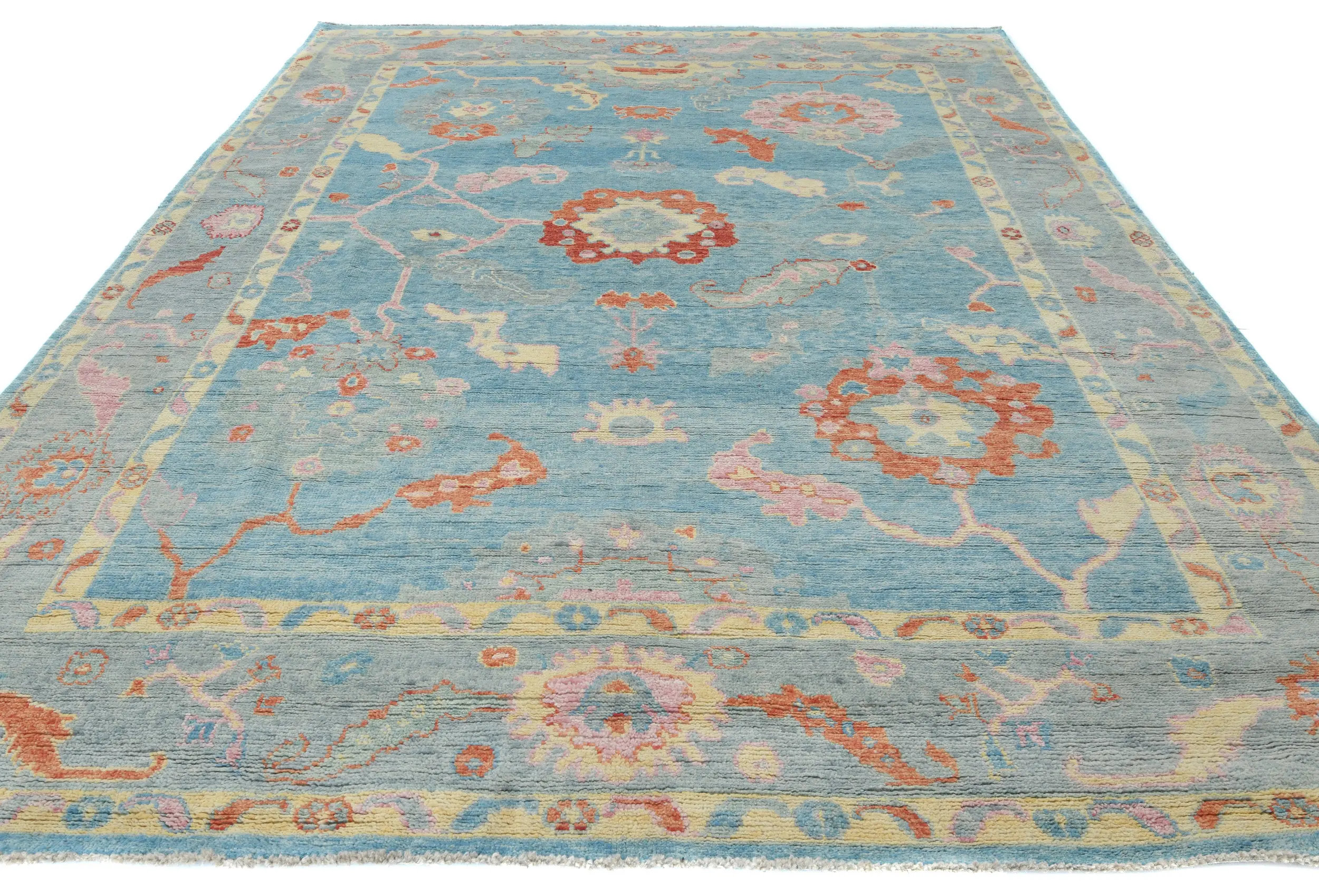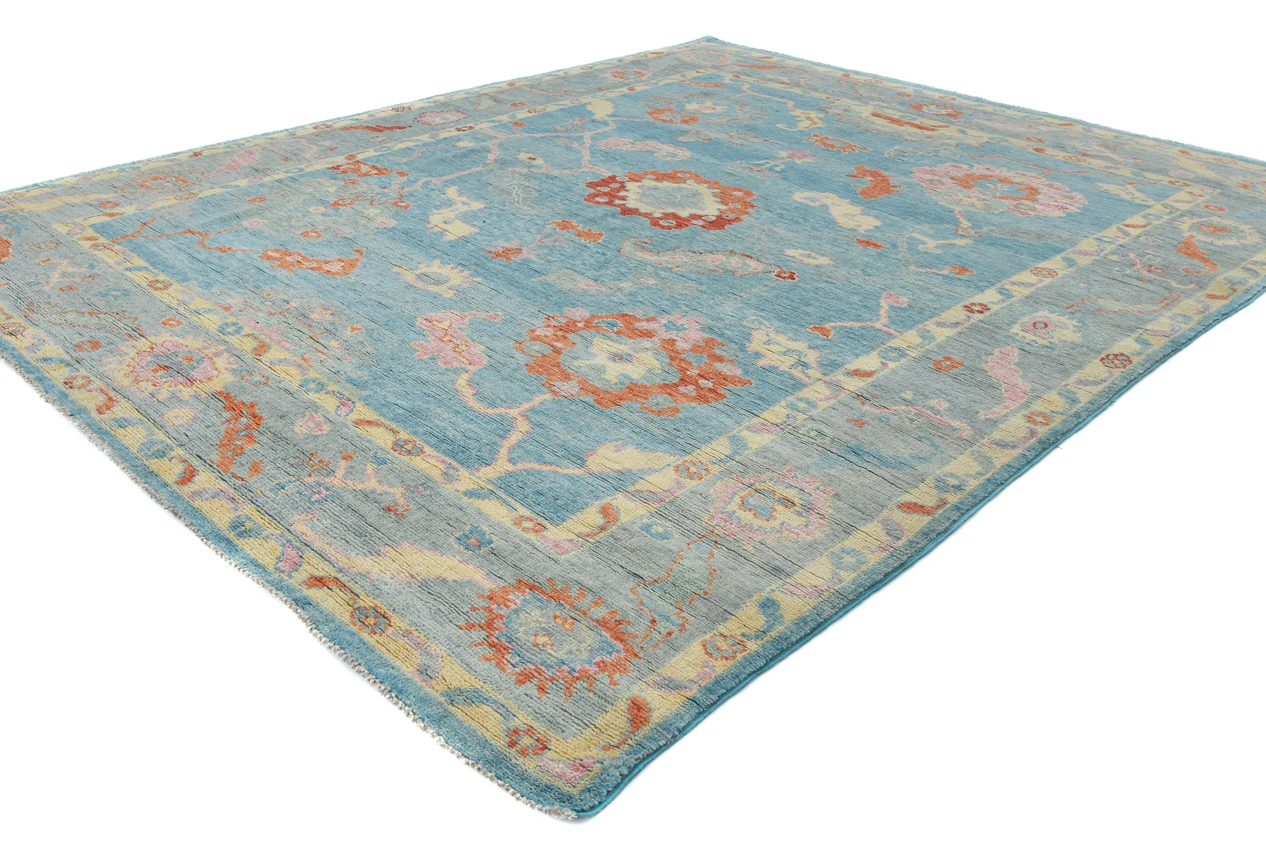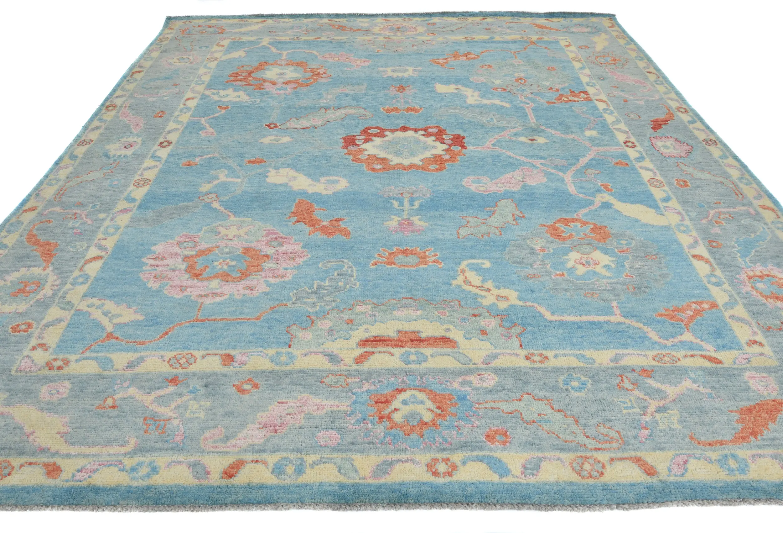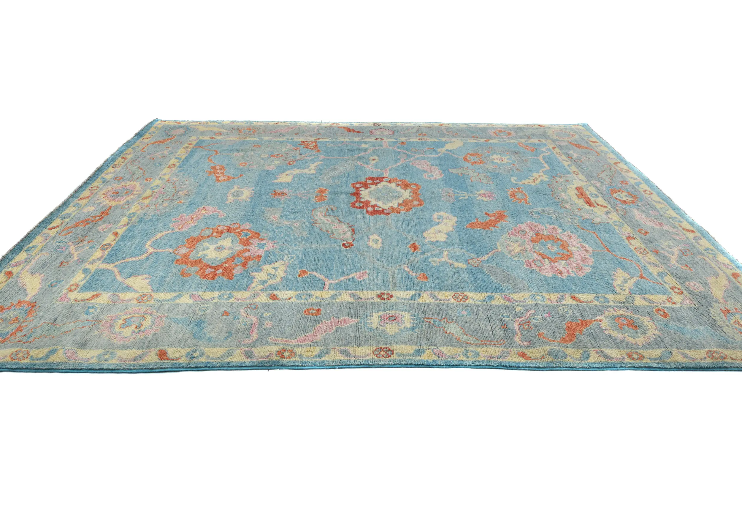 Muted light blue Floral Transitional 8X10 Oushak Oriental Rug