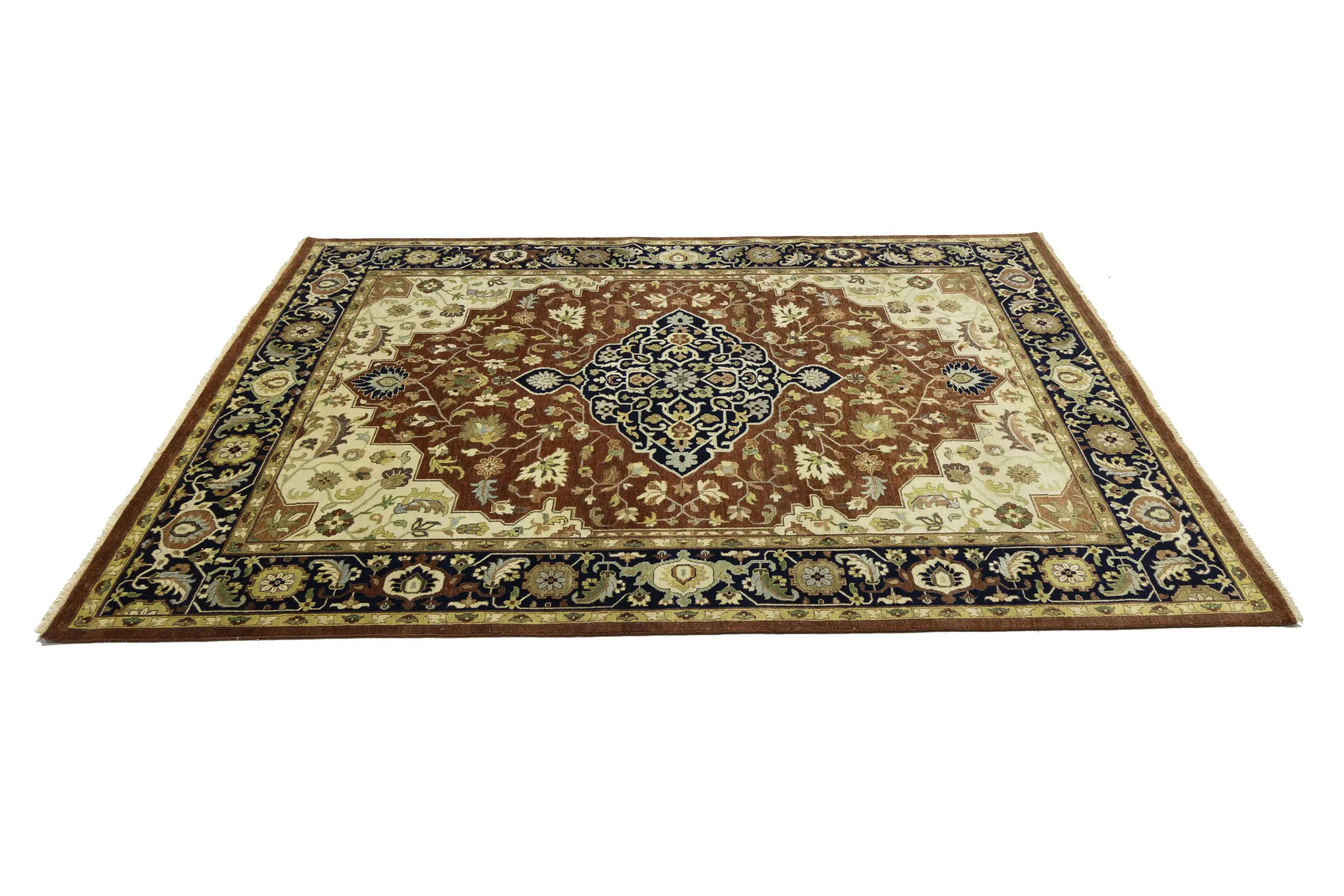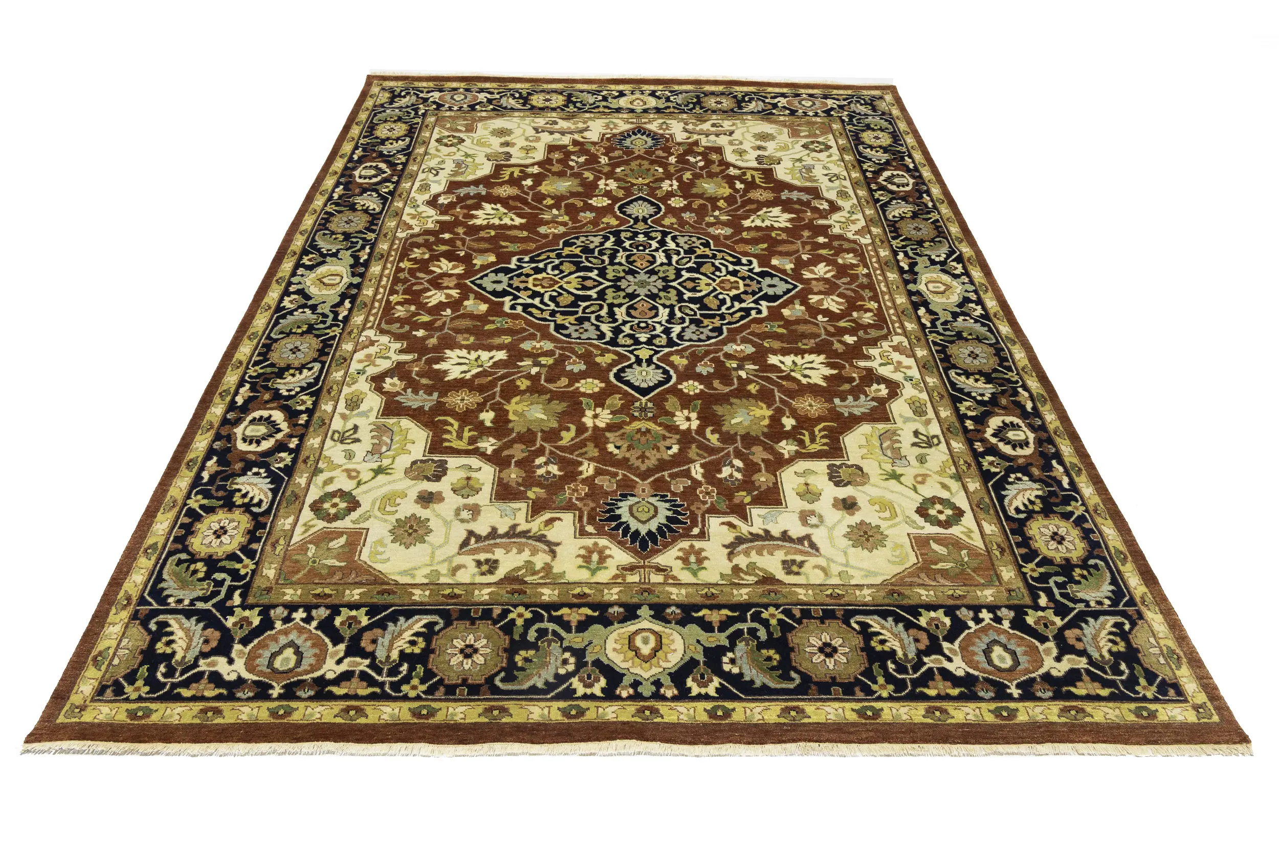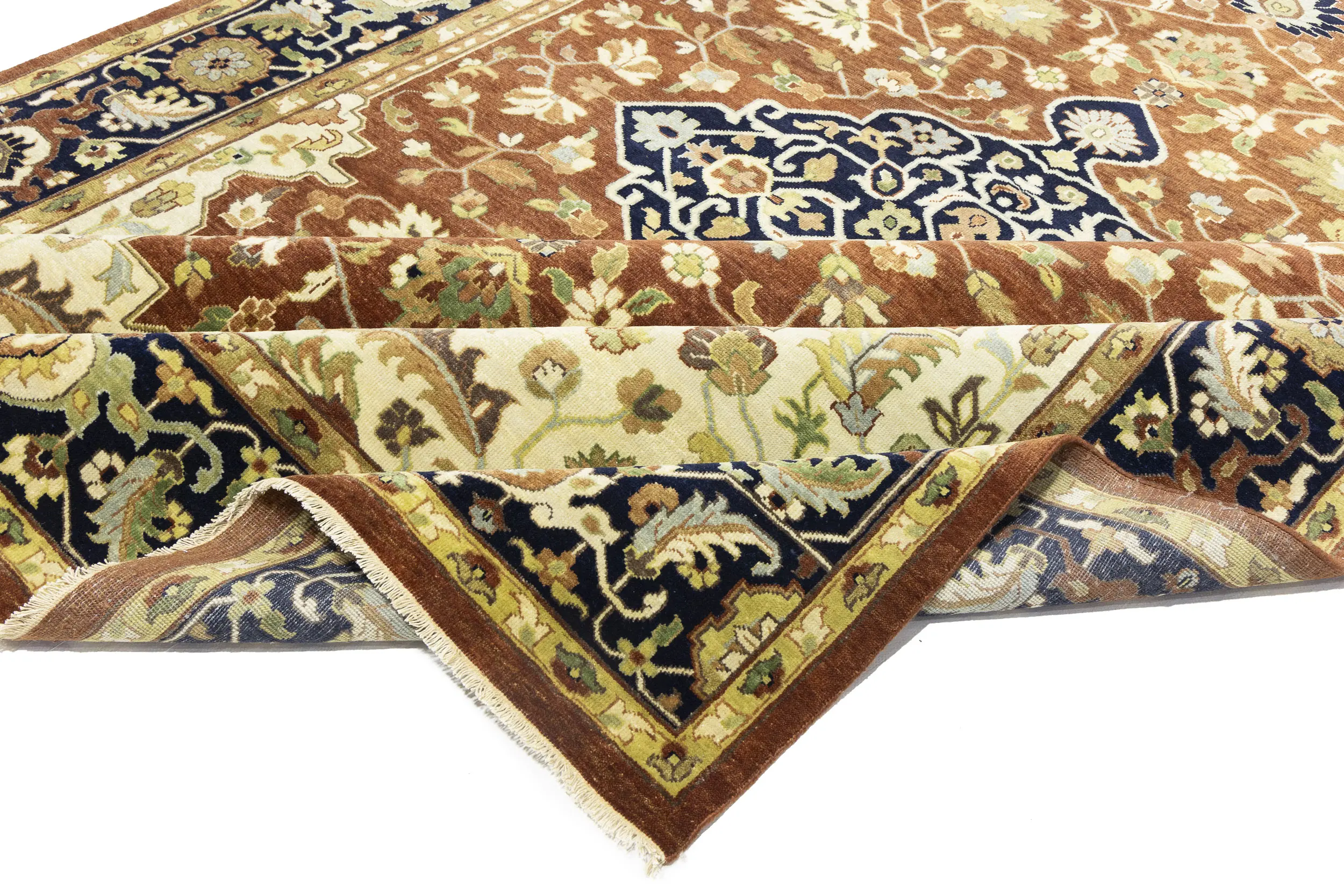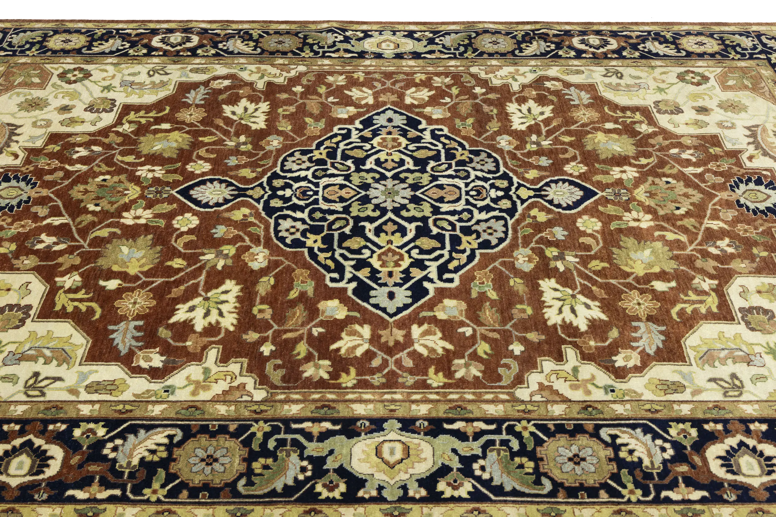 This original 9X12 Rust Brown new Oriental rug was finely knotted by the hands of weavers influenced by a variety of amazing artistic designs, to recreate the aged look of the exceptional piece with a richness of color and embellished background field. What set this vintage style Oriental area rug from the others are the material and dye used (wool pile and cotton foundation), knot count, antique designs, fantastic grades, and its regional historical connection: it has deep roots, from the story of the people who produced it to the meaning of the symbols and colors displayed across its canvas that have been praised for centuries. This Indian home décor carpet will be completely cozy and inviting that never will go out of style! Also, this Oriental rug would be among your most valuable treasures, it is a great investment that increase in value over time, and it will last a lifetime because was woven with high-quality, all-natural wool. Eco-friendly, opulent yet affordable; this rug will give you an extra pop of character to help define your home environment with luxury and warmth that will capture the eyes and attention of your audience (homeowners, designers, decorators, family and friends). OT-11546