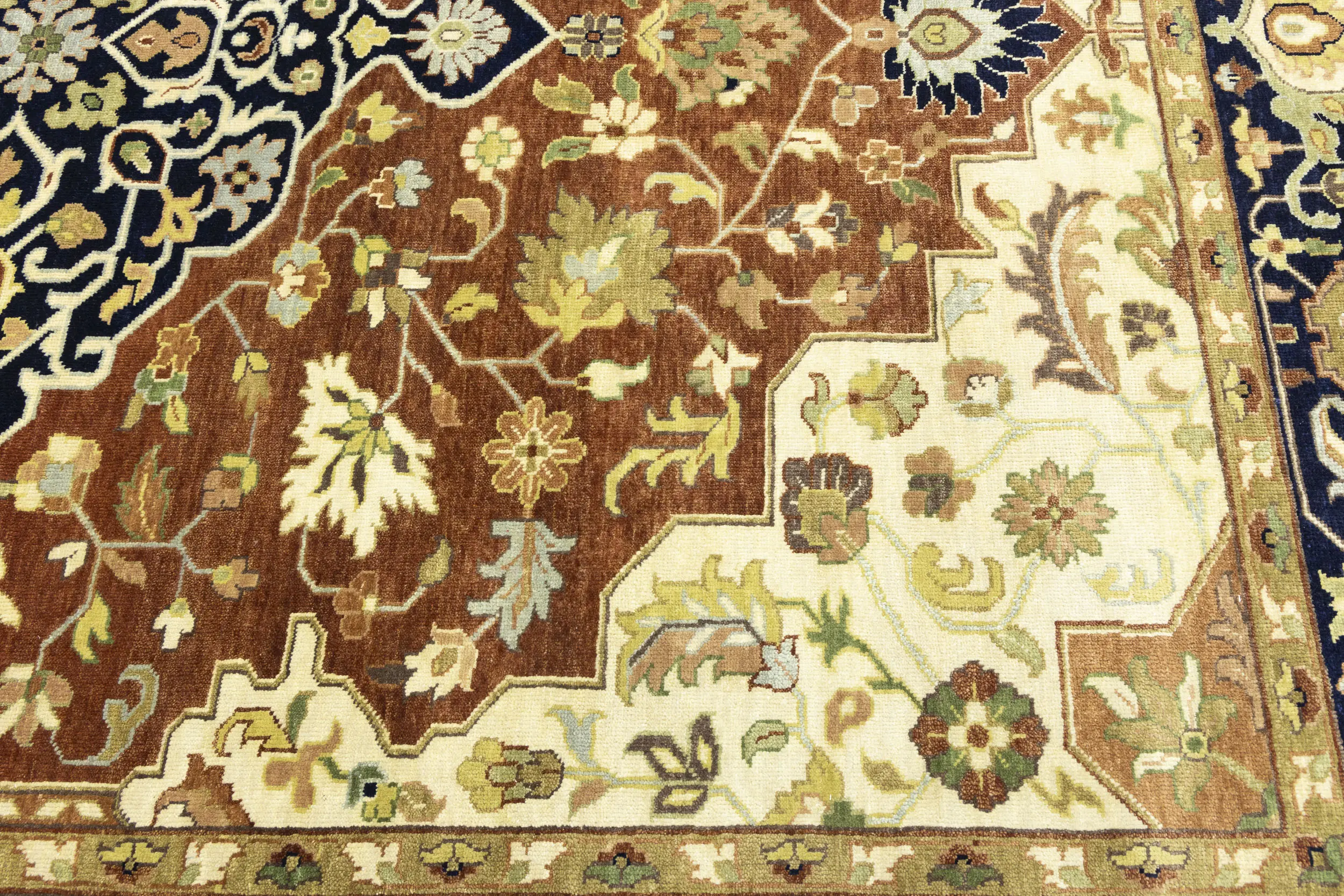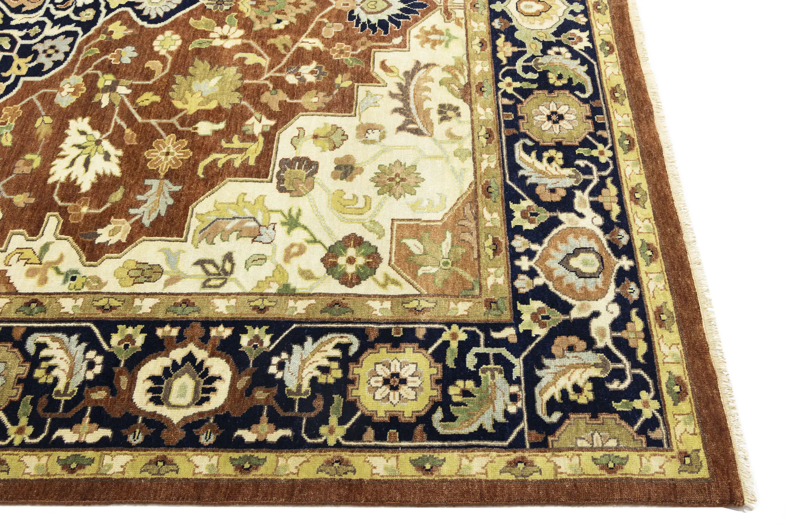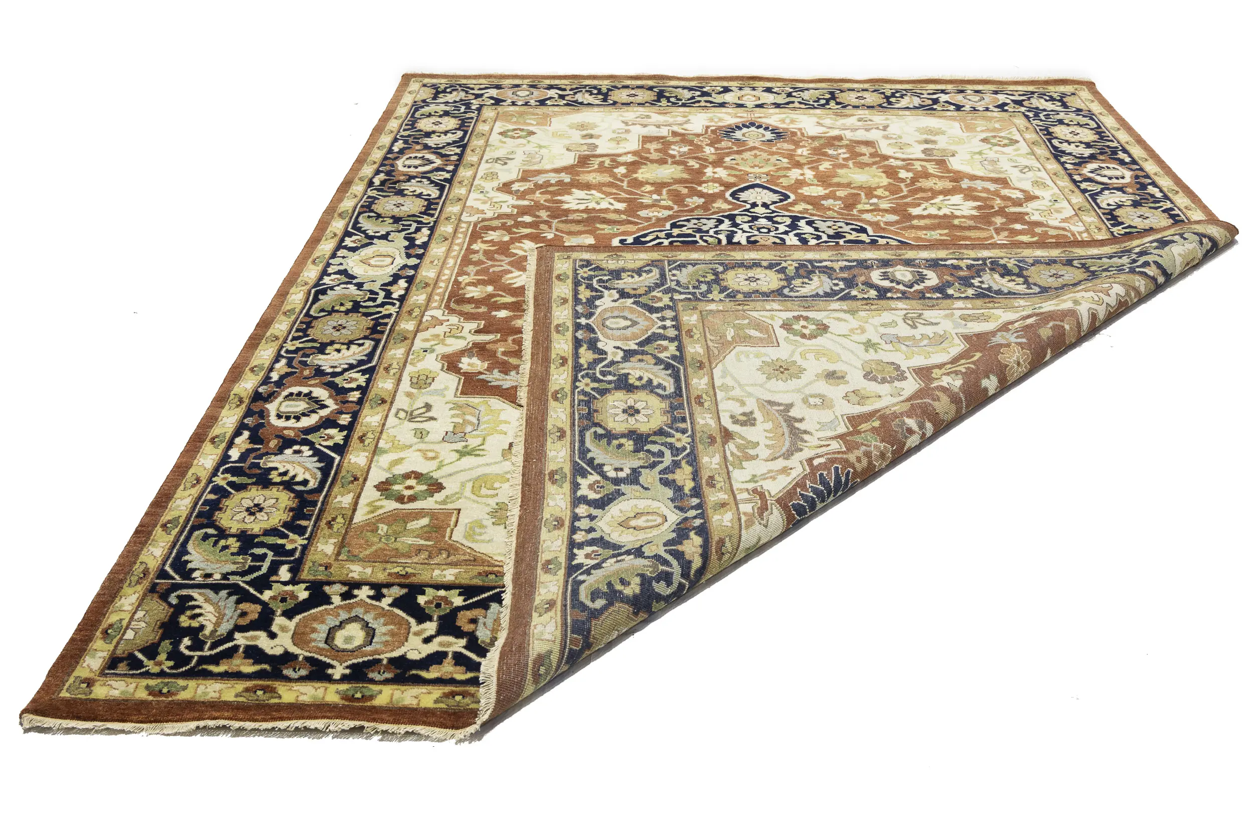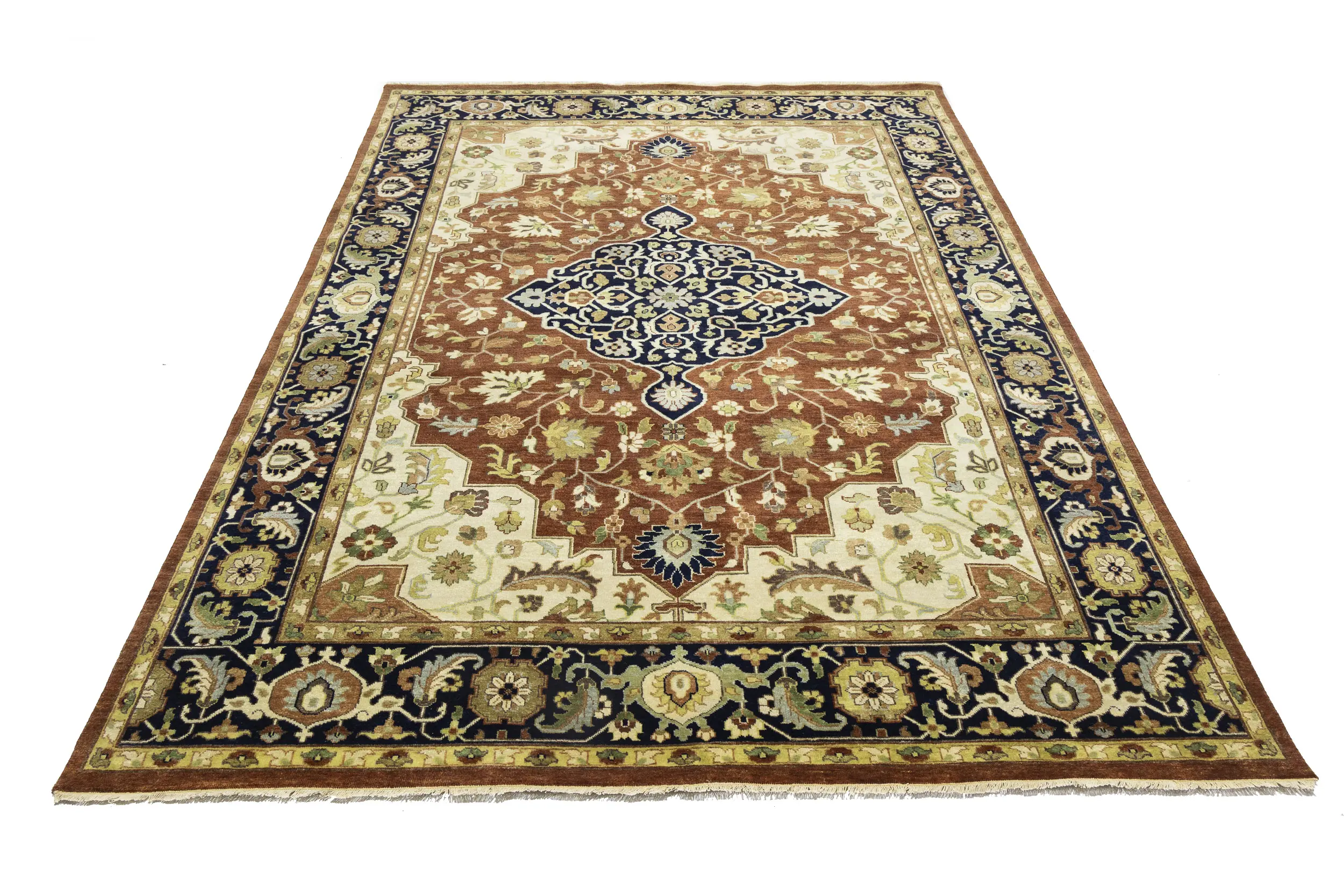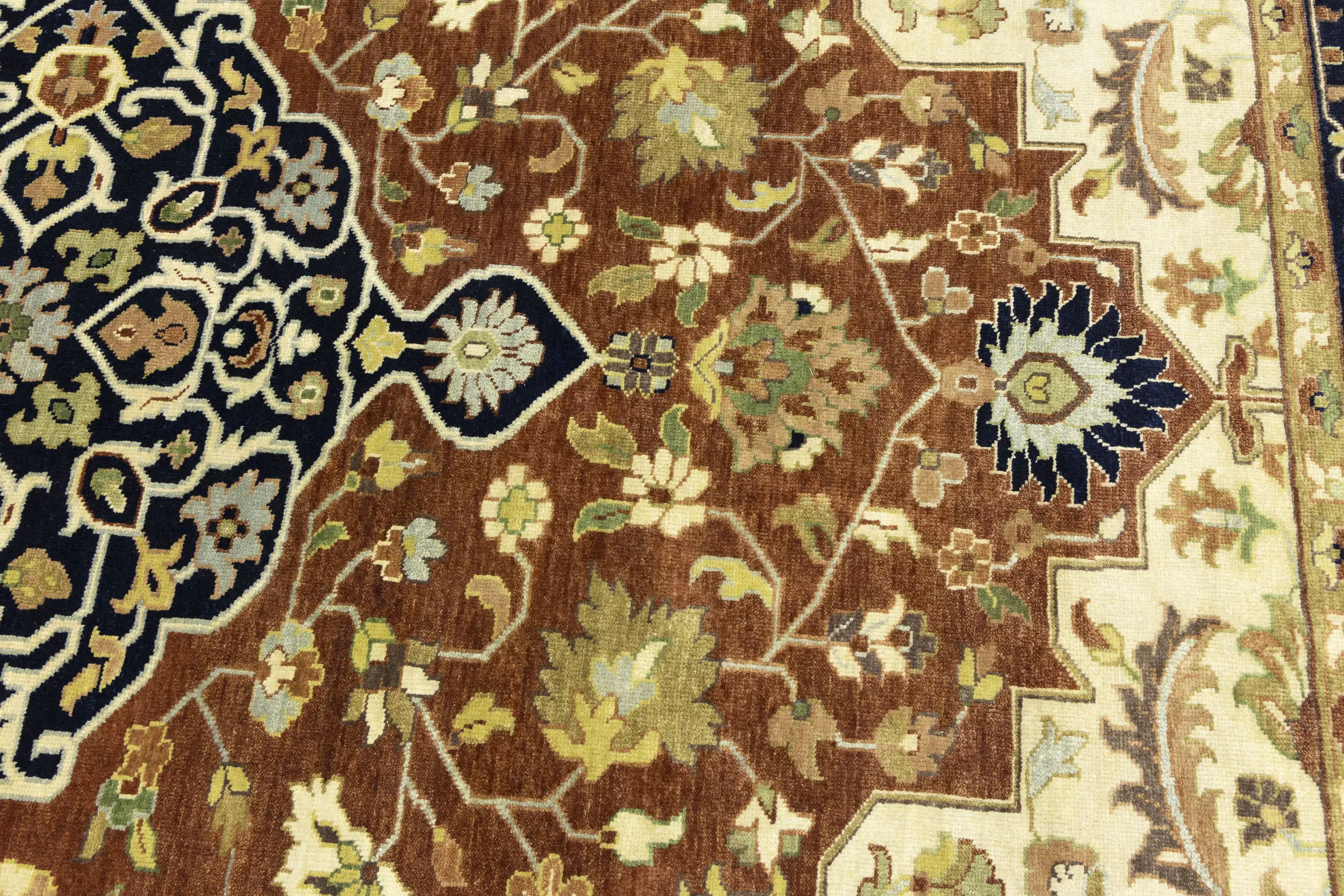 This original 9X12 Rust Brown new Oriental rug was finely knotted by the hands of weavers influenced by a variety of amazing artistic designs, to recreate the aged look of the exceptional piece with a richness of color and embellished background field. What set this vintage style Oriental area rug from the others are the material and dye used (wool pile and cotton foundation), knot count, antique designs, fantastic grades, and its regional historical connection: it has deep roots, from the story of the people who produced it to the meaning of the symbols and colors displayed across its canvas that have been praised for centuries. This Indian home décor carpet will be completely cozy and inviting that never will go out of style! Also, this Oriental rug would be among your most valuable treasures, it is a great investment that increase in value over time, and it will last a lifetime because was woven with high-quality, all-natural wool. Eco-friendly, opulent yet affordable; this rug will give you an extra pop of character to help define your home environment with luxury and warmth that will capture the eyes and attention of your audience (homeowners, designers, decorators, family and friends). OT-11546